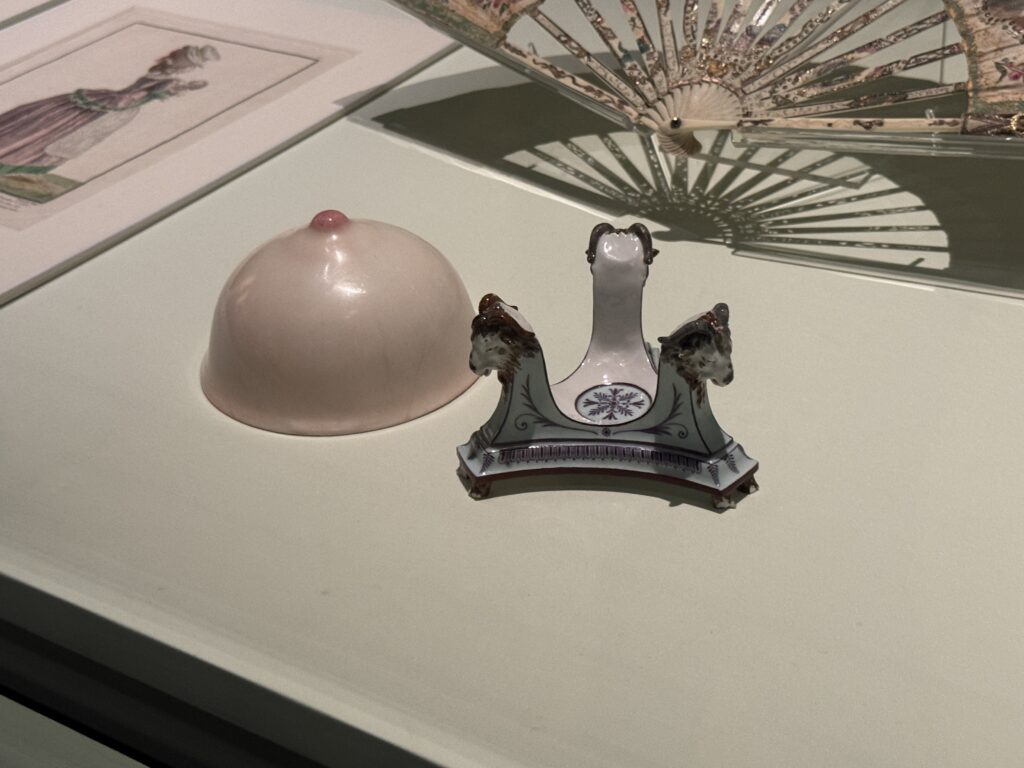 Эта чаша для груди (bol sein), также называемая jotre téton, является одной из четырех чаш фарфорового сервиза, заказанного королевой для молочной фермы в Рамбуйе. Дизайн был скопирован с древнегреческого образца, известного как fastos, но севрская интерпретация более реалистична. Что подпитывало устойчивый миф о том, что она была создана по образцу груди самой Марии-Антуанетты. Современные фабрики тоже делают такие, вдохновляясь экспонатом.