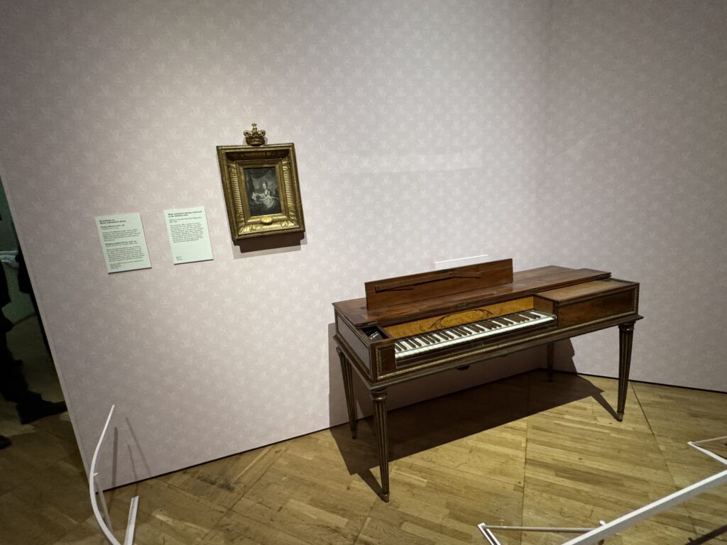 Около клавесина звучала музыка, чтобы люди могли послушать, как звучит этот инструмент.