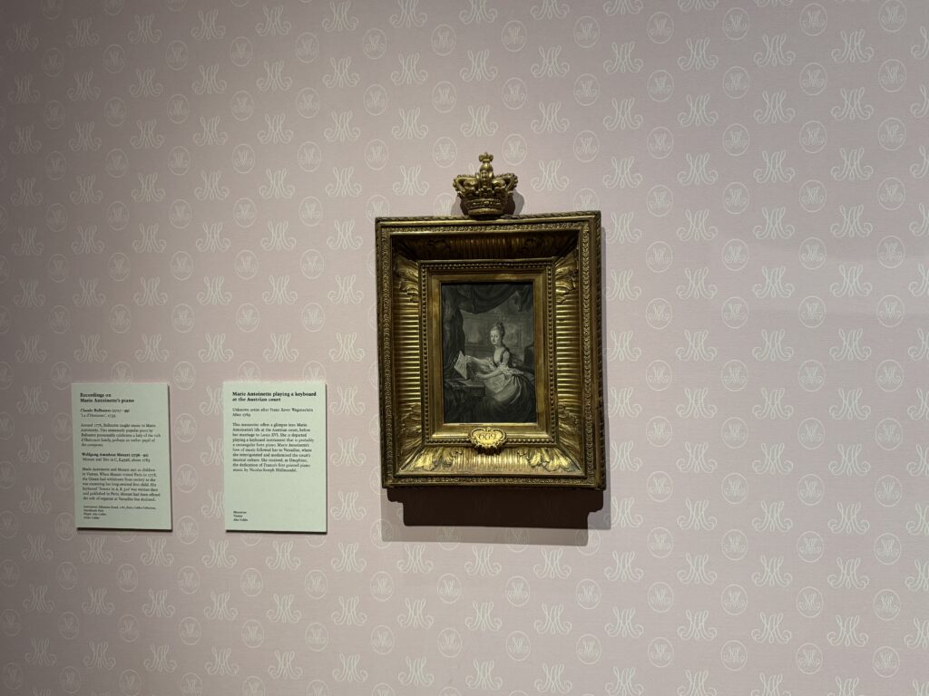 Мария-Антуанетта любила музыку и пользовалась всеобщим признанием за свой музыкальный талант и изящные танцы. Она играла на арфе и фортепиано (всего их было 17 в Версале) и была связана со всеми крупными композиторами того времени. Этот инструмент был изготовлен Себастьяном Эраром для королевы в 1787 году и выкуплен Эрарами в 1793 году на революционной распродаже содержимого Малого Трианона.