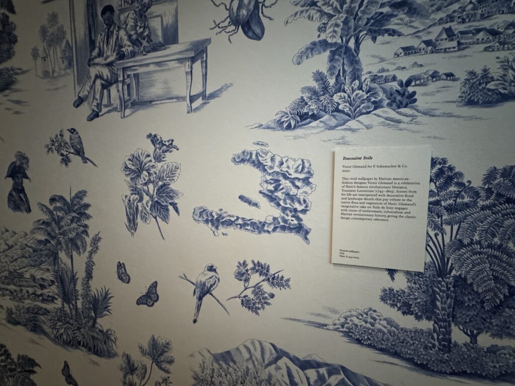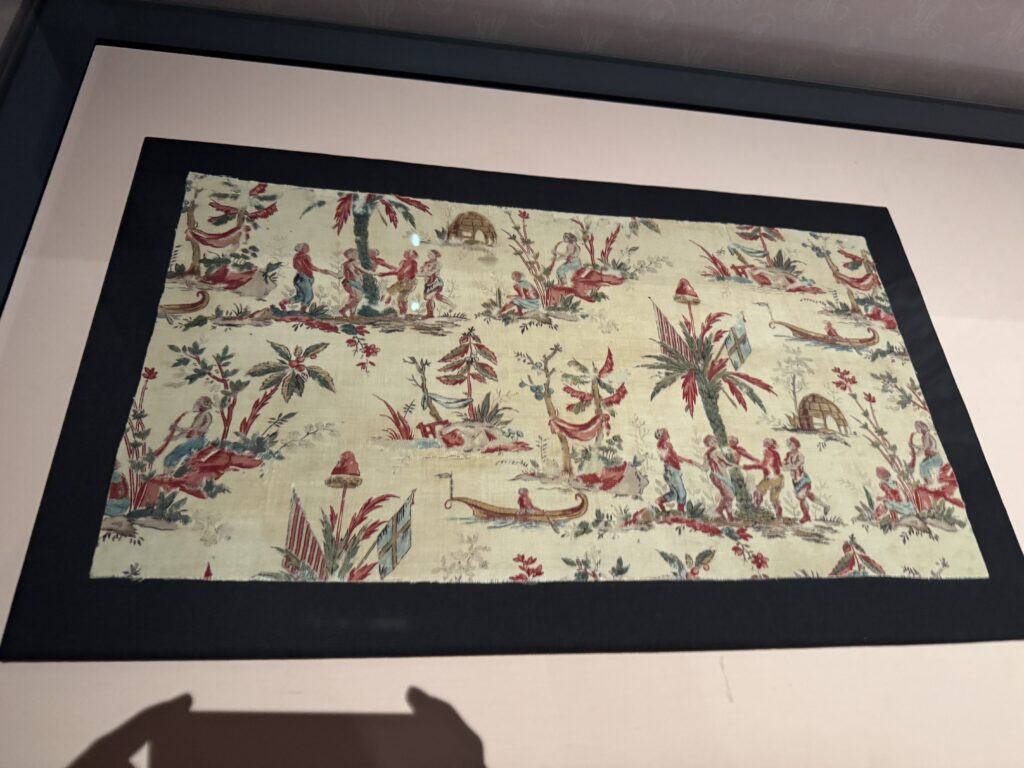 Глазурованный хлопок с блочным принтом, мануфактура Оберкампф, Франция, Музей Туаль де Жуи. Шелк и муслин с тамбурным узором, Франция Музей Виктории и Альберта.»