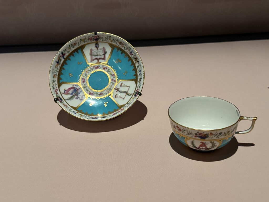 Тарелка от Мари. «Богатый» уровень обслуживания Антуанетты. Фарфоровая фабрика Севр, 1786. Франция На оборотной стороне — клеймо художника «М», обозначающее Пьера Масси. Музей Виктории и Альберта. Завещано мистером Джоном Джорджем Джойси.