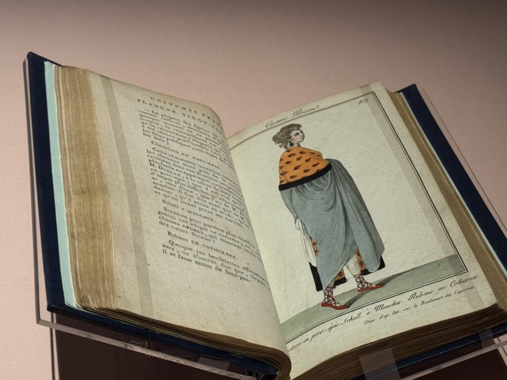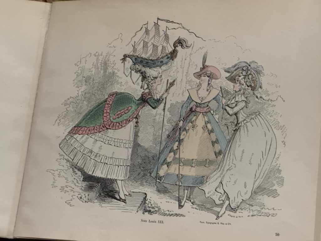 Раскрашенная вручную трафаретная печать. Из альбома Le Bonheur du Jour, ou Les Grâces à Mode (Счастье дня или Модные грации), Издательство Жюля Мейниаля, Париж. Британская библиотека.»