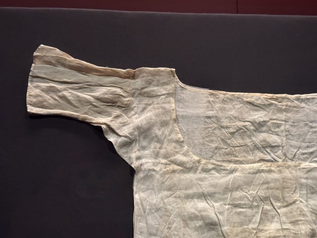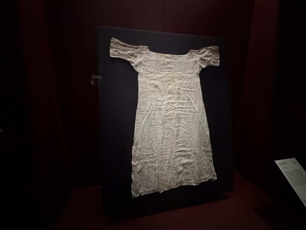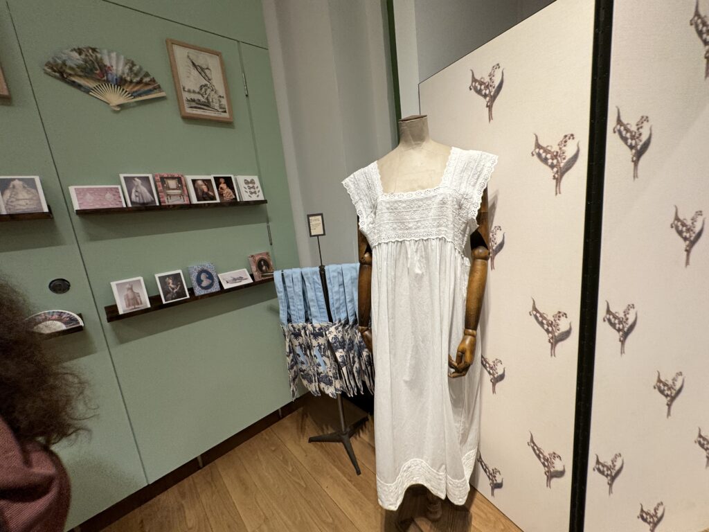 Это одно из двух сохранившихся платьев-рубашек из муслина времён Марии-Антуанетты, стиль, популяризации которого королева способствовала. В своих мемуарах мадам Кампан описывала королеву и её подруг летом 1778 года, одетых в «муслиновые платья с большими соломенными шляпами и муслиновыми вуалями — костюм, повсеместно принятый женщинами в то время». Королева также носила муслиновое платье, подаренное ей Типу Султаном в 1788 году.