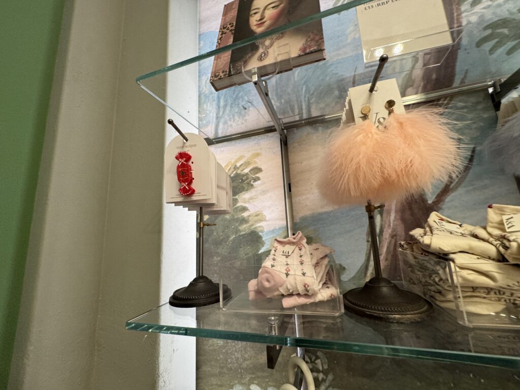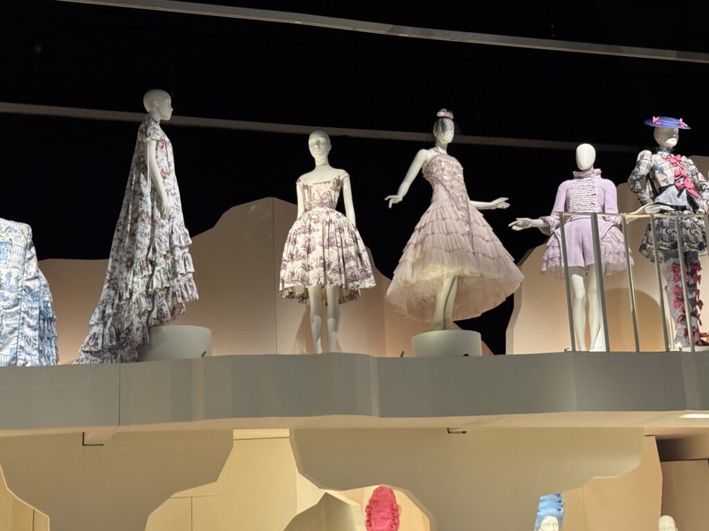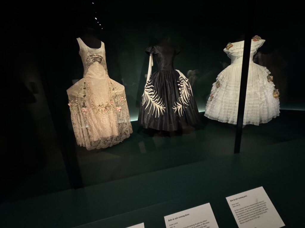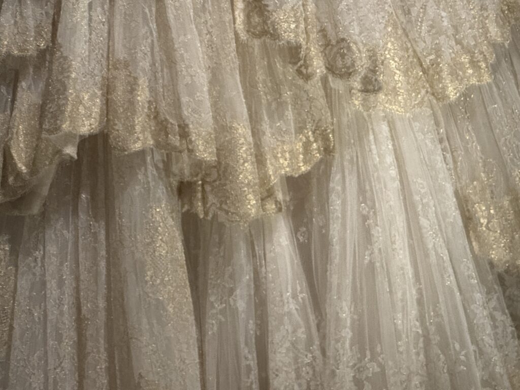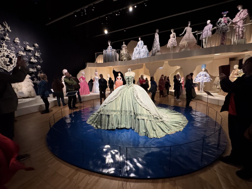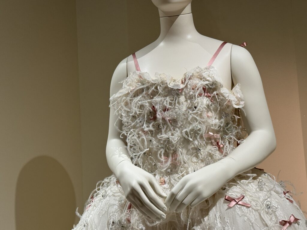 Для актрисы Эмилии Шюле, исполняющей роль Марии Антуанетты в сериале Banijay «Мария-Антуанетта» (2023-2025), кутюрное бюро Christian Dior создало два платья. Швеи и мастера Dior используют традиционные техники ручного шитья, которые были бы вполне уместны в мире королевы XVIII века. Это платье с изящными ярусами шелка, отделанными кружевом, можно увидеть в сцене, где Мария-Антуанетта посещает вечеринку.