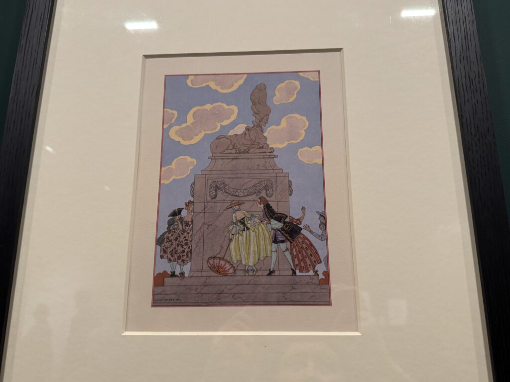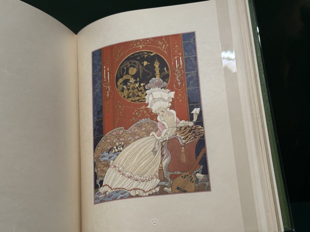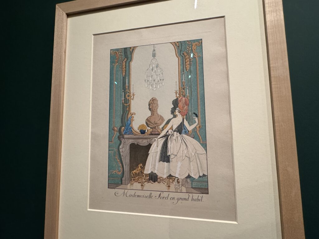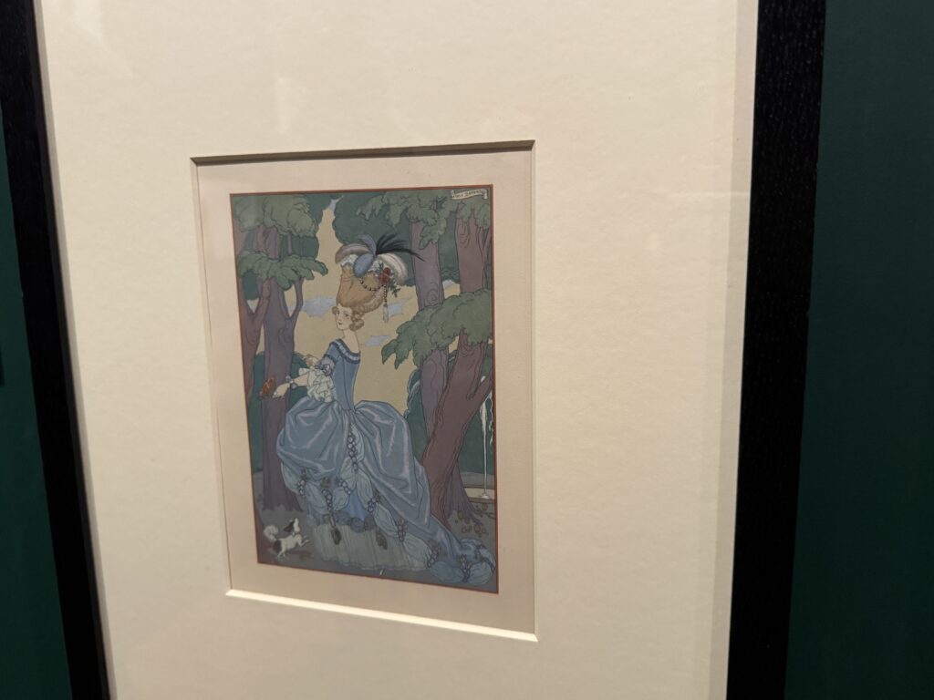 Жорж Барбье, один из ключевых иллюстраторов эпохи ар-деко, запечатлел подлинные детали одежды и интерьеров XVIII века через призму утонченной космополитичной 1920-х годов. В своих иллюстрациях он включал прямые отсылки к Марии-Антуанетте и ее владениям в Версале.