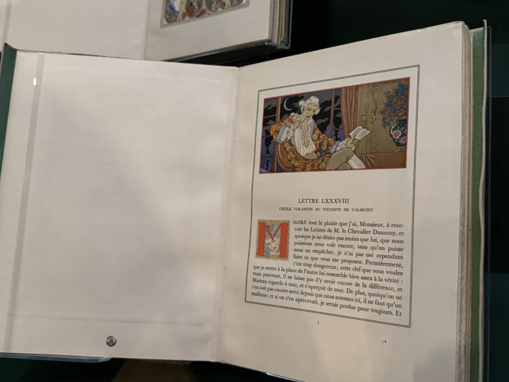 Роман «Опасные связи», впервые опубликованный в 1782 году, стал одним из самых успешных произведений XVIII века. У Марии-Антуанетты был экземпляр в её библиотеке в Версале. В нём рассказывается о падении двух коварных аристократов, которые используют своё обаяние для достижения социального господства. В этом издании в стиле ар-деко иллюстрации Барбье сочетают в себе декадентство и гламур обречённого старого режима с утончённой изысканностью его времени.