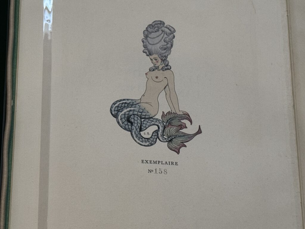 «Инициал «М» из главы LXXXXVIII и виньетка с русалкой из «Les Liaisons Dangereuses» («Опасные связи»). Автор: Шодерло де Лакло, иллюстрации: Джордж Барбье, 1934 год.