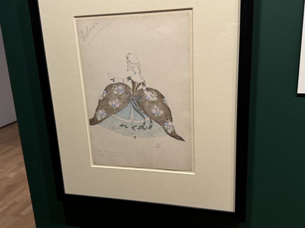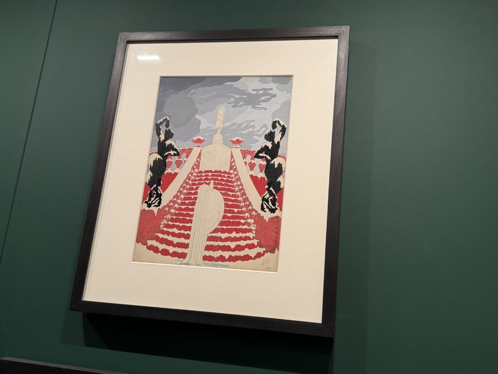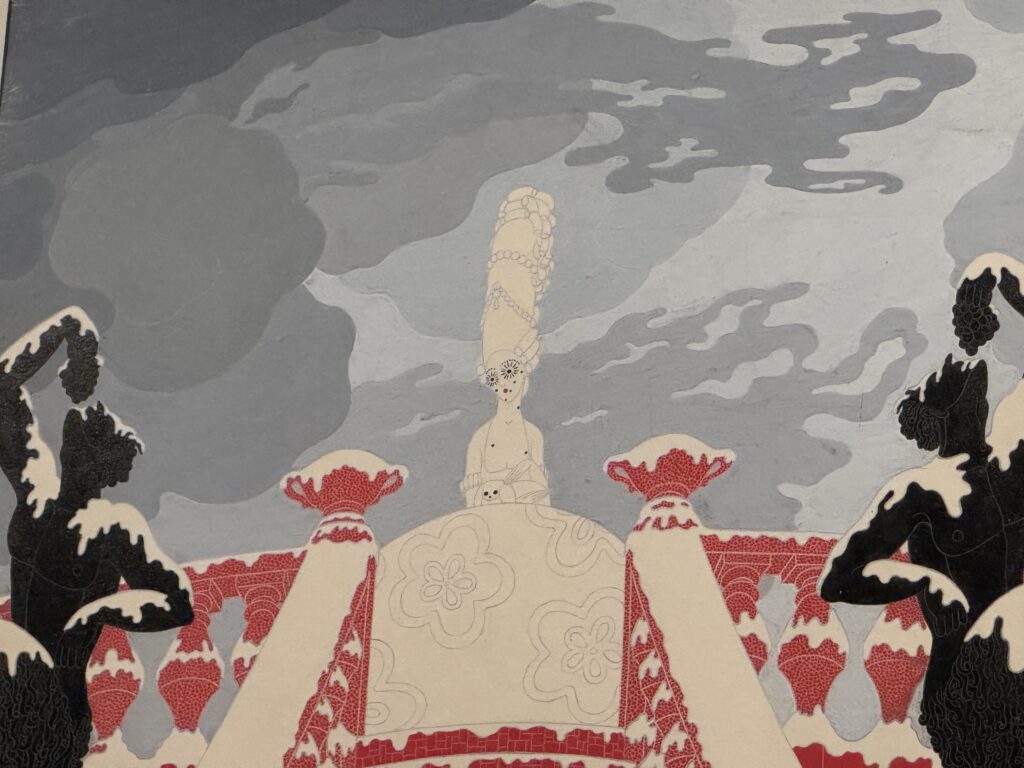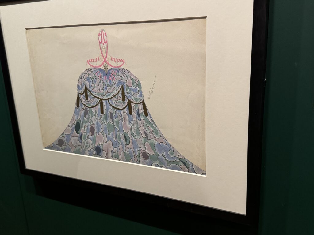 Эскиз костюма к ревю Au Réveil du Passé («Пробуждение прошлого») в театре Алькасар в Марселе, Эрте (Ромен де Тиртофф), 1923 год. Гуашь и золотые чернила на бумаге. Франция. Частная коллекция Дэвида Пирса.