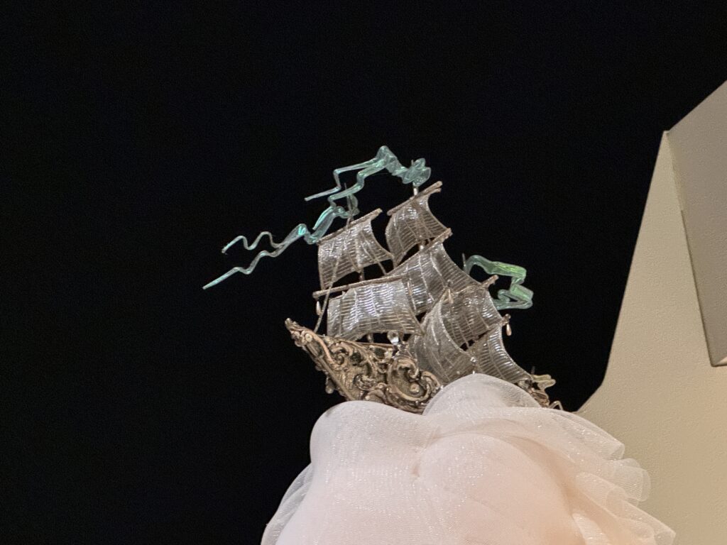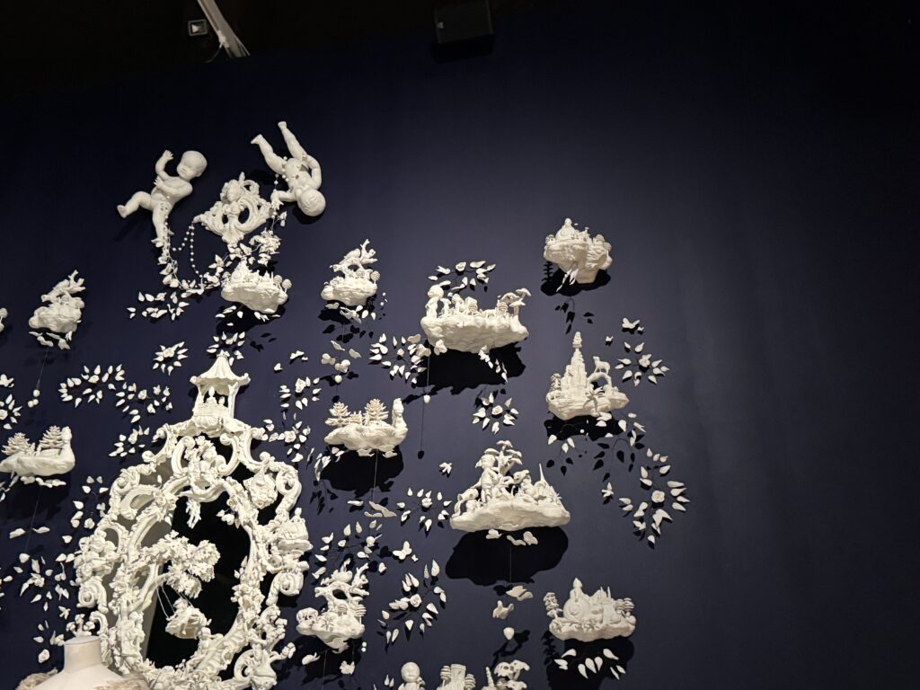 Фарфор, зеркало, проволока. Нью-Йорк, штат Нью-Йорк. Предоставлено художником. Шелк, корсет, кружево Dior»