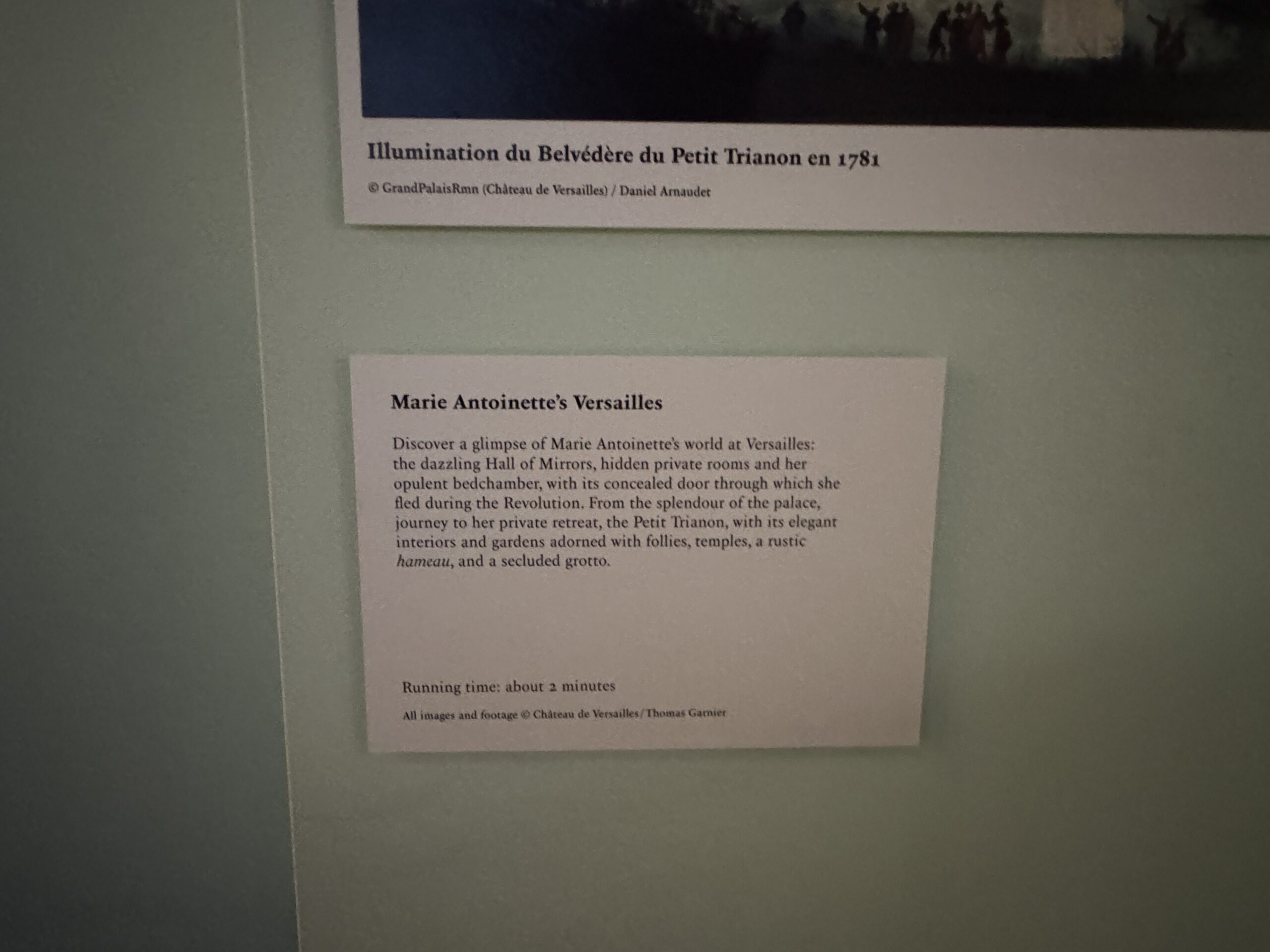 Описание фильма, который демонстрировался на стене музея: Версаль Марии-Антуанетты