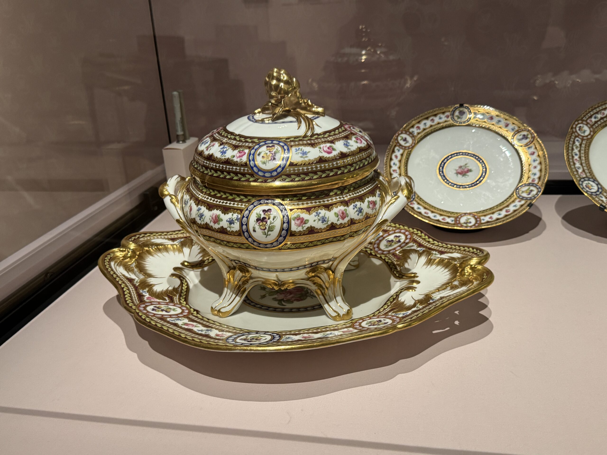 Кулер, супница и подставка для супницы из сервиза «богатый» Марии-Антуанетты. Фарфоровая фабрика Севр, 1784. Фарфор, Франция. Музей Эшмола, Оксфордский университет. Приобретено в память о сэре Брюсе и леди Ричмонд в 1974 году.