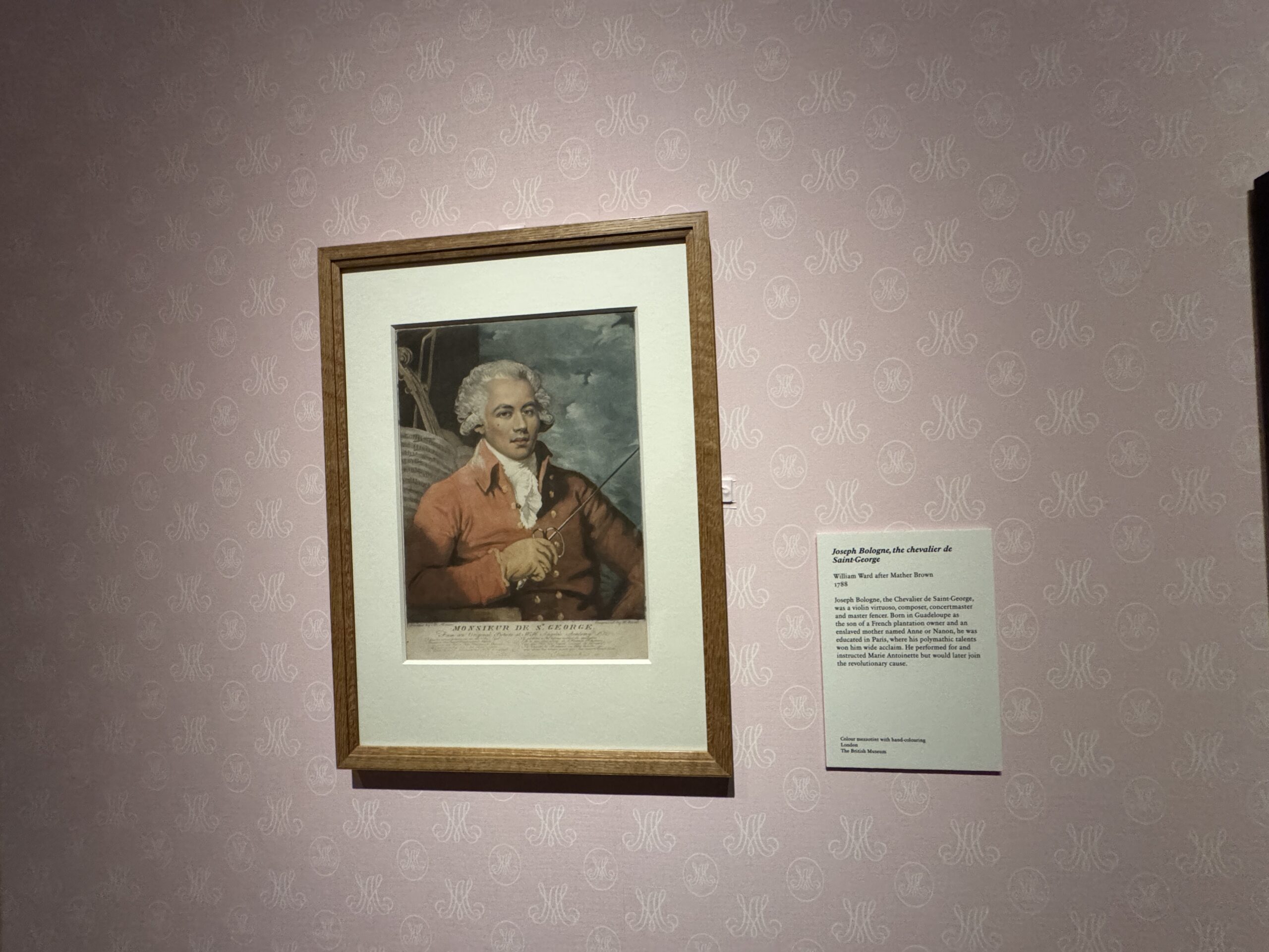 Жозеф Болонь, шевалье де Сен-Жорж (1745–1799), известный французский композитор, скрипач-виртуоз и фехтовальщик. Работа выполнена Уильямом Уордом по оригиналу Мэзера Брауна в 1788 году. Картина является частью коллекции Национальной портретной галереи в Лондоне.