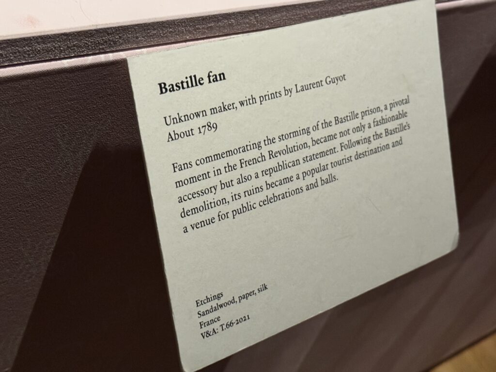 Веера, посвященные штурму Бастилии, ключевому моменту Французской революции, стали не только модным аксессуаром, но и символом республиканской идеологии. После разрушения Бастилии ее руины превратились в популярное туристическое место и место проведения публичных торжеств и балов.