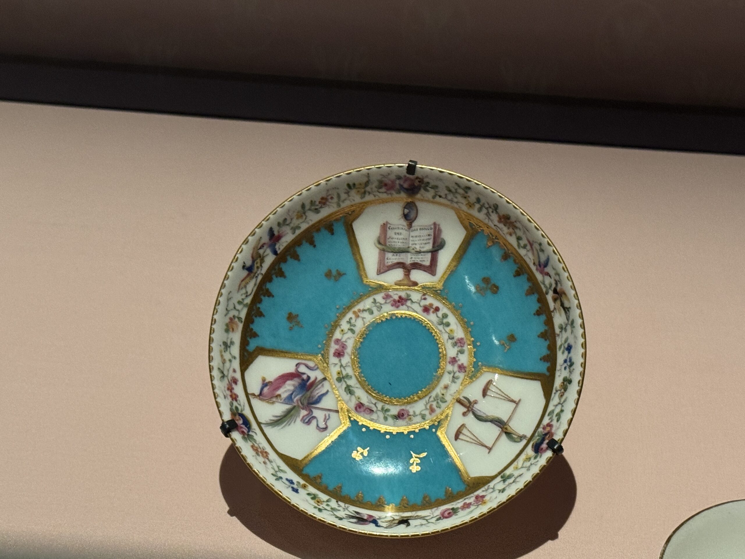 Тарелка из сервиза графини д’Артуа. Фарфоровая фабрика Севр, 1786. Фарфор, расписанный эмалью и позолоченный, Франция. Клеймо художника «MM» на обороте. Музей Виктории и Альберта».