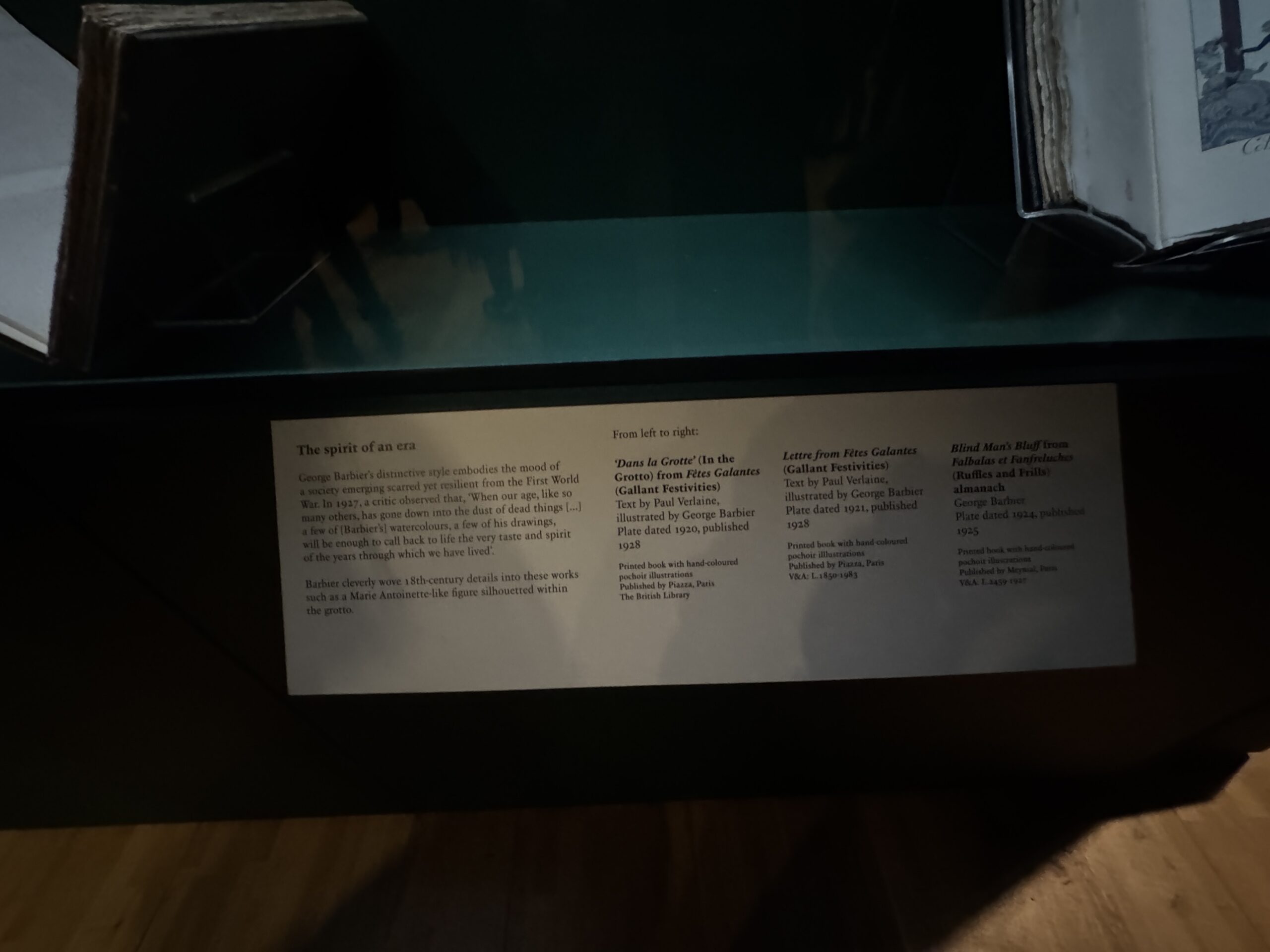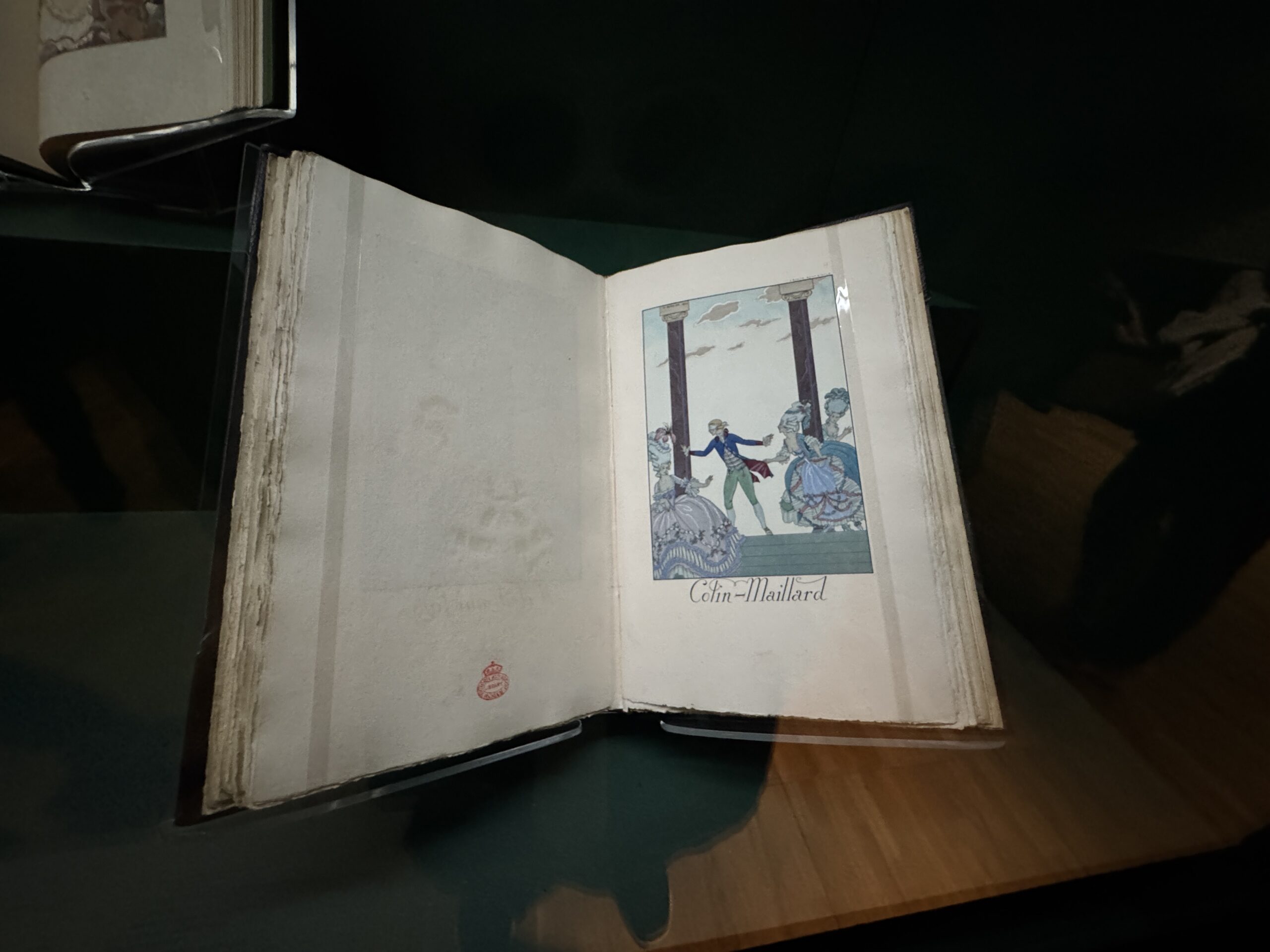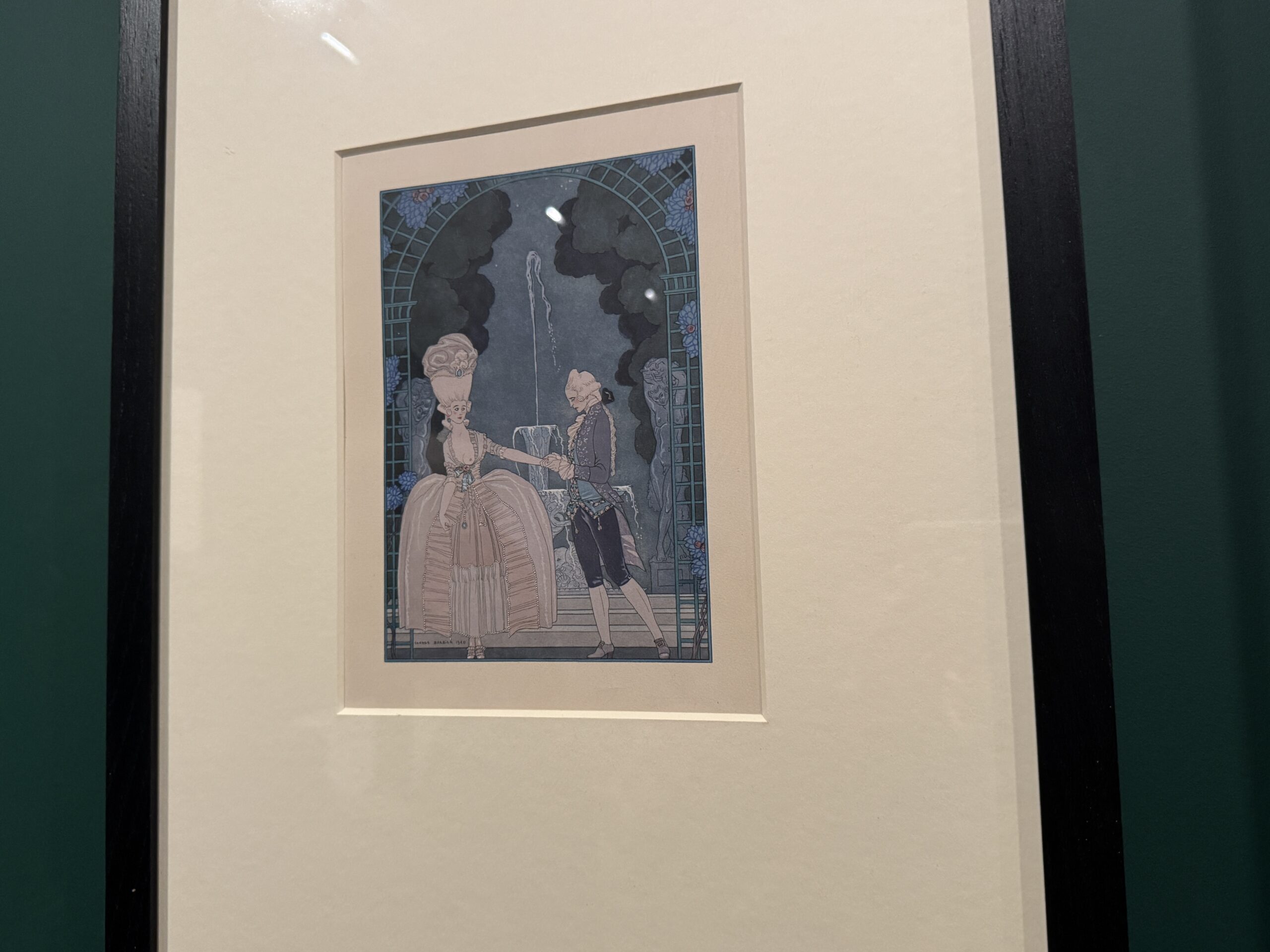 Письмо от Fêtes Galantes (Галантные праздники) Текст Поля Верлена, иллюстрации Жоржа Барбье. Пластина датирована 1921 годом, опубликована в 1928 году. Печатная книга с раскрашенными вручную трафаретными иллюстрациями. Издательство Piazza, Париж. Музей Виктории и Альберта: L1850-1983.
