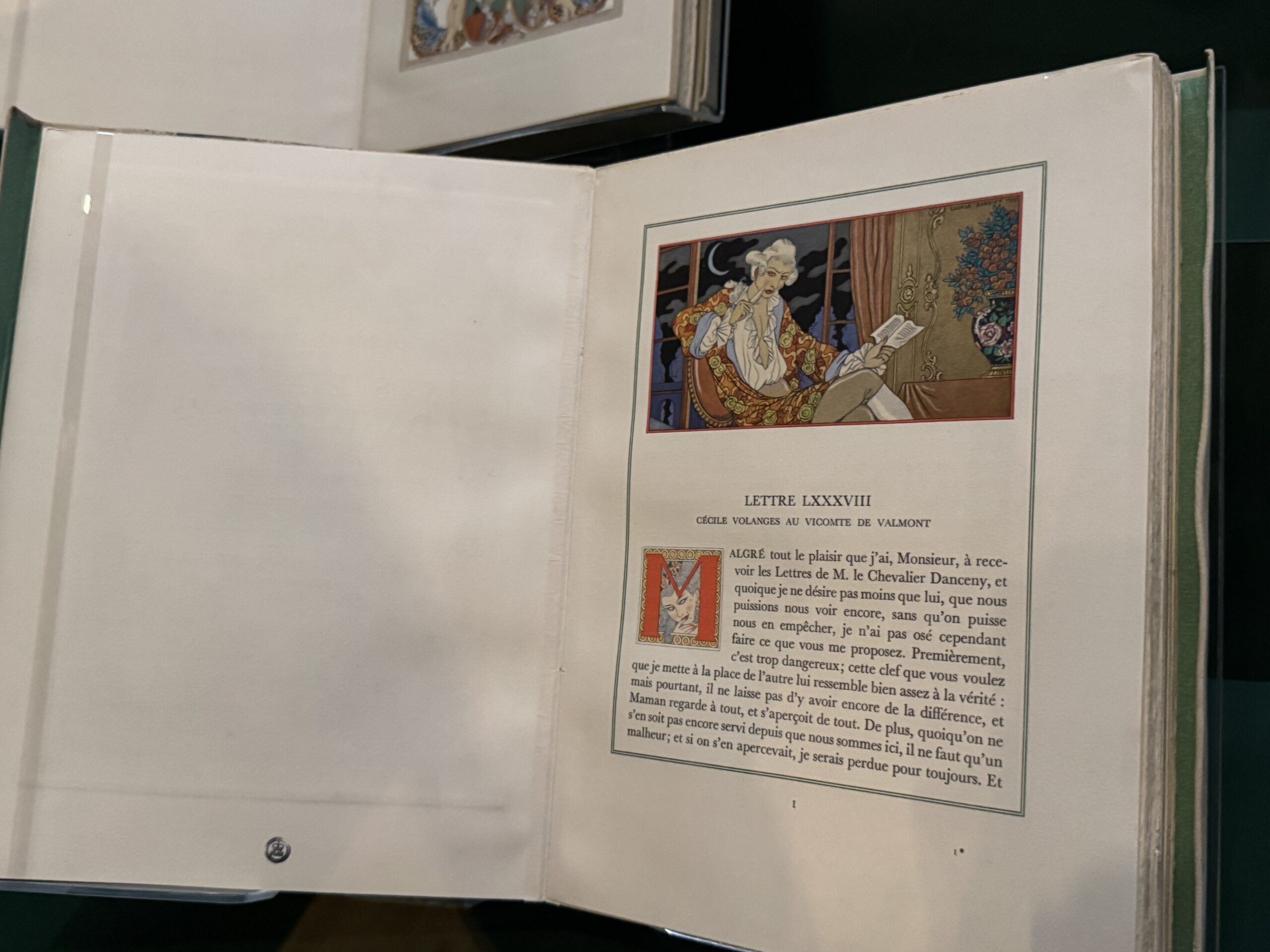 «Инициал «М» из главы LXXXXVIII и виньетка с русалкой из «Les Liaisons Dangereuses» («Опасные связи»). Автор: Шодерло де Лакло, иллюстрации: Джордж Барбье, 1934 год.