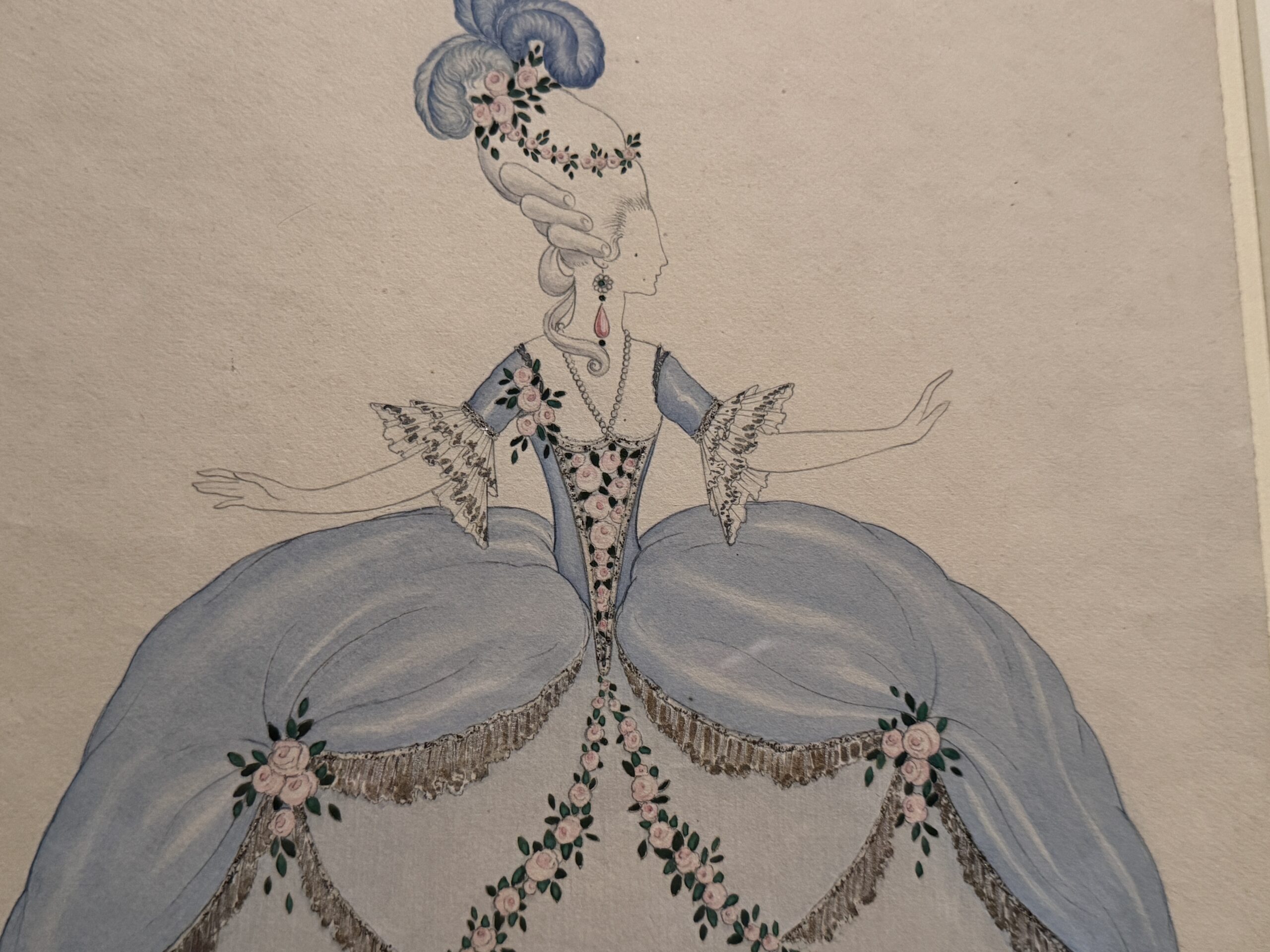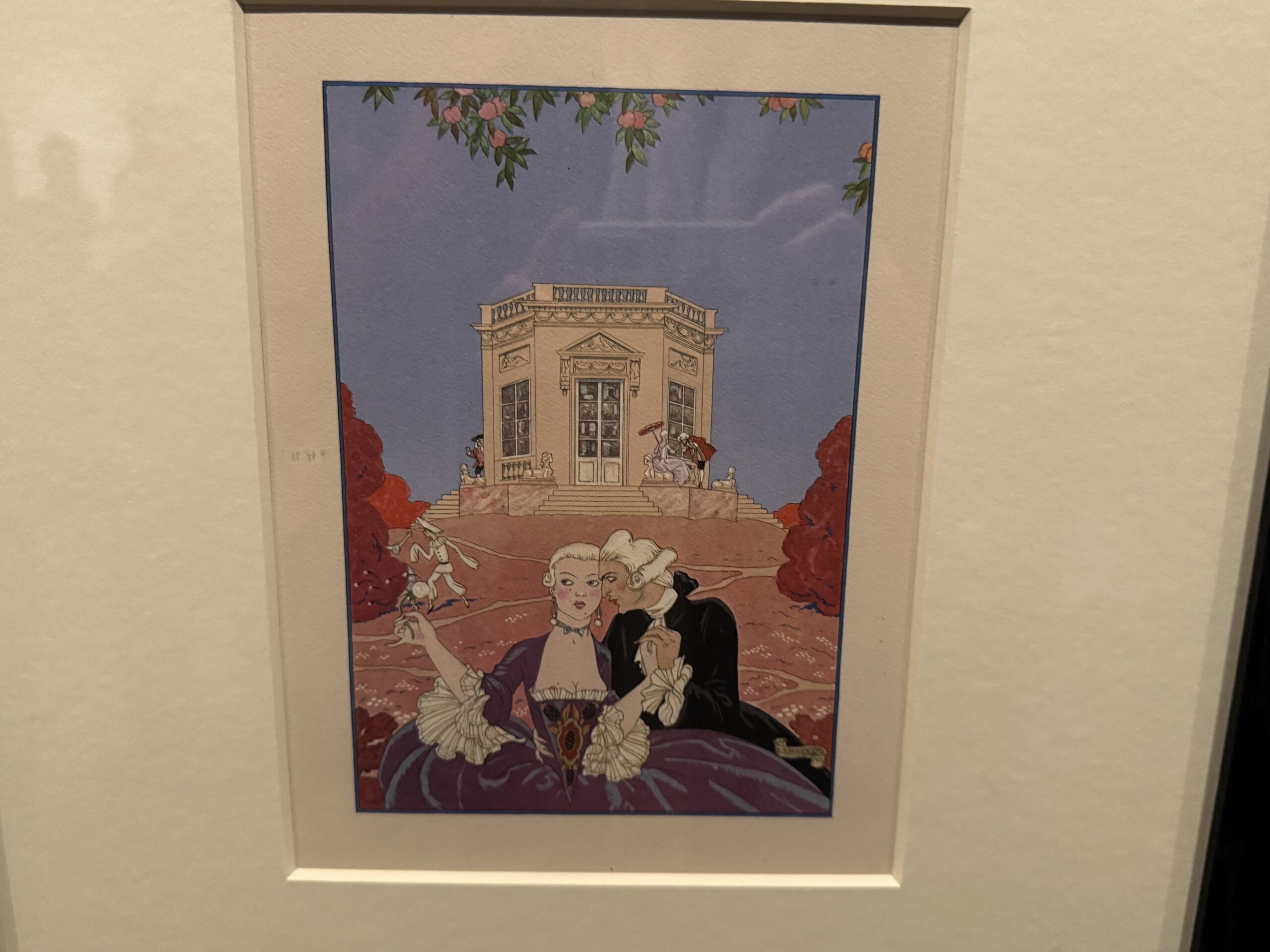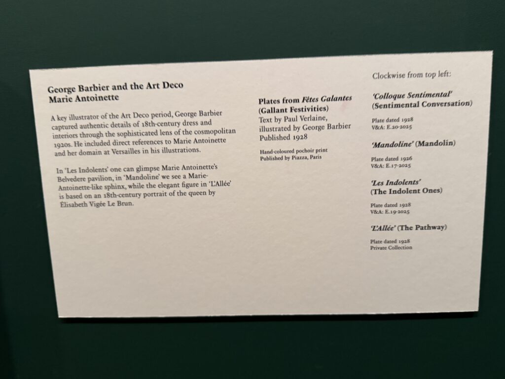 Жорж Барбье, один из ключевых иллюстраторов эпохи ар-деко, запечатлел подлинные детали одежды и интерьеров XVIII века через призму утонченной космополитичной 1920-х годов. В своих иллюстрациях он включал прямые отсылки к Марии-Антуанетте и ее владениям в Версале.