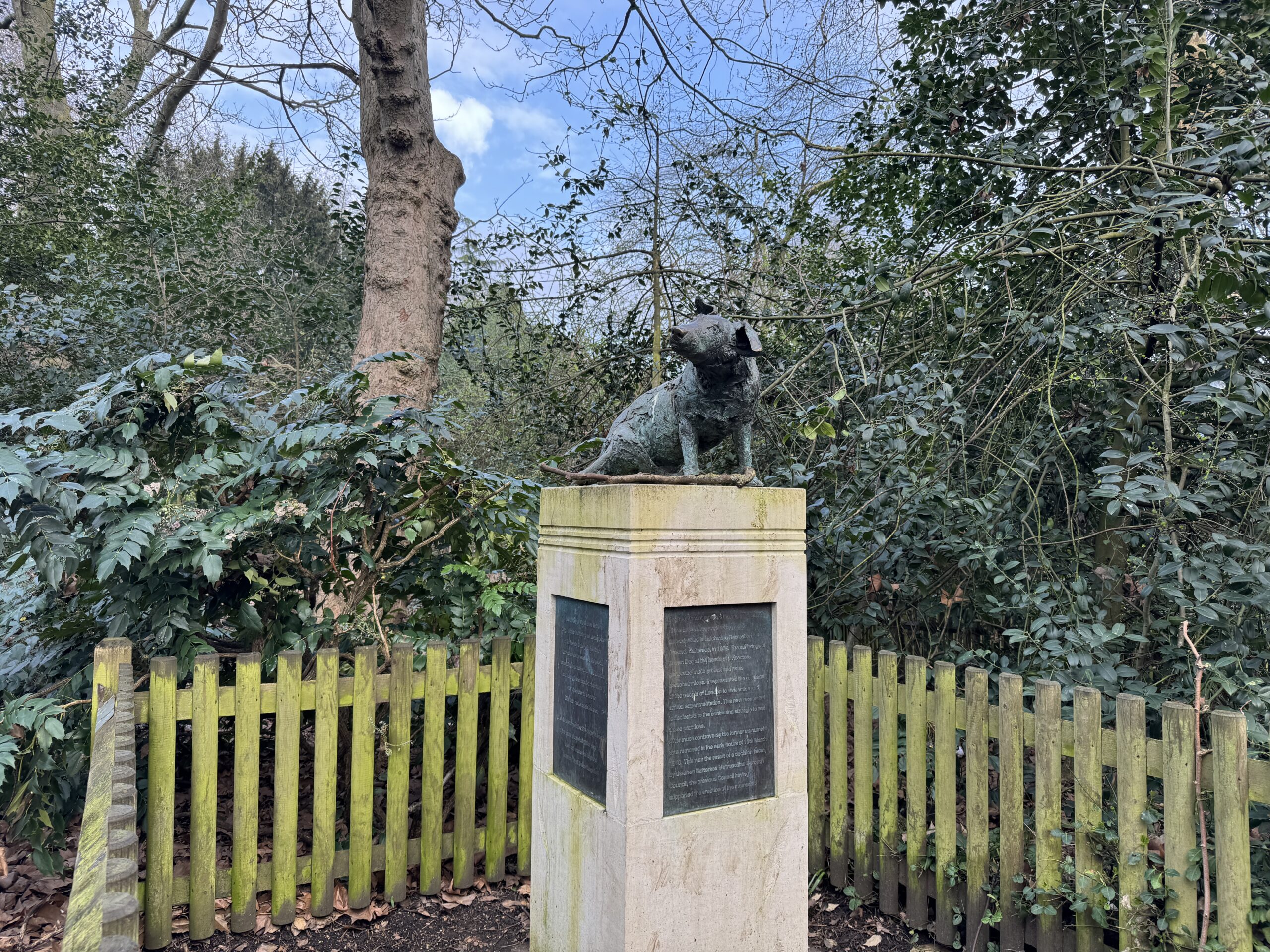 9.3.2026 Первую неделю в Лондоне мы жили в Пимлико, откуда пешком можно было дойти до парка, в котором установлен Памятник коричневой собаке. Там еще можно было встретить нарциссы и подснежники.