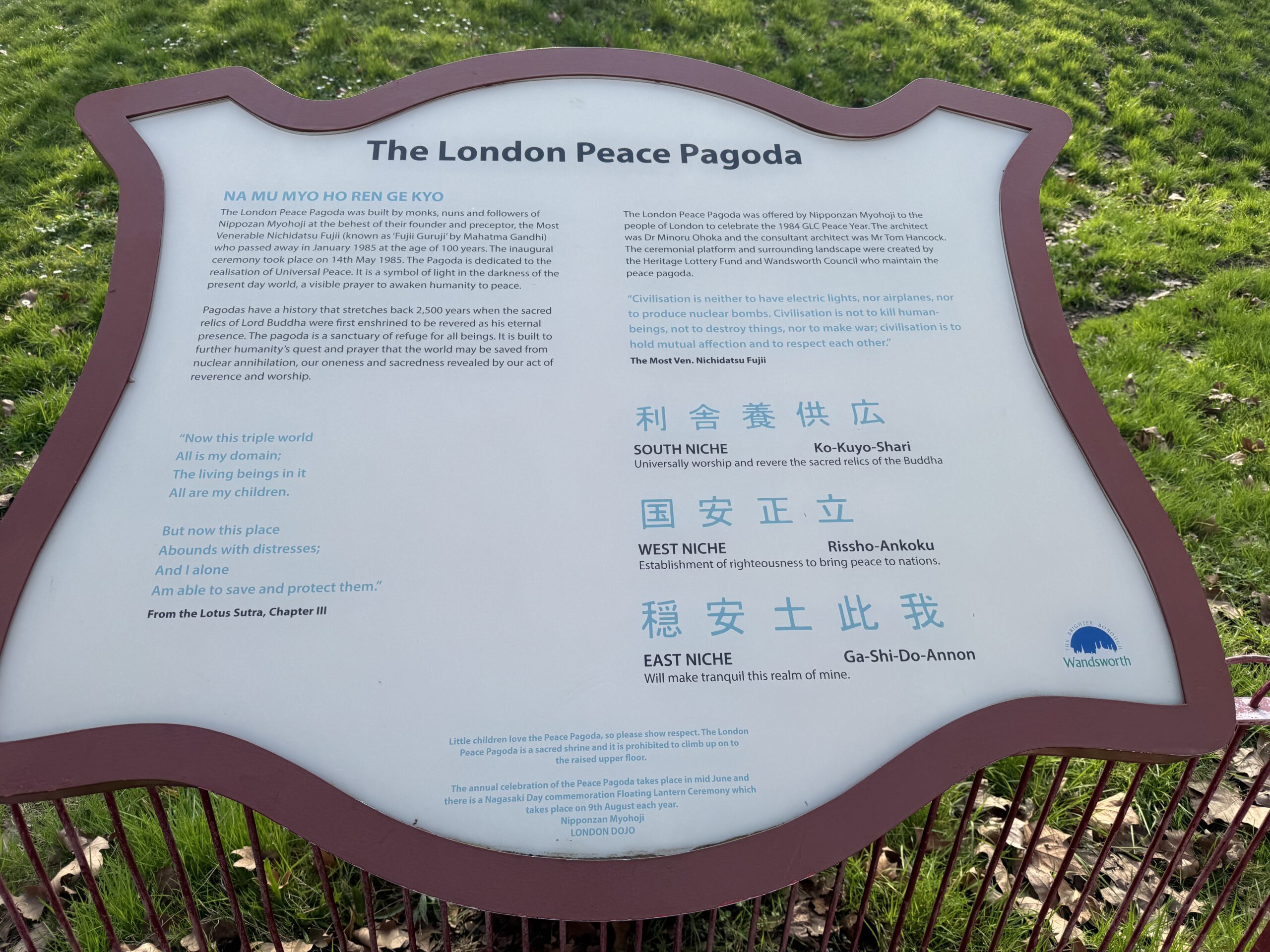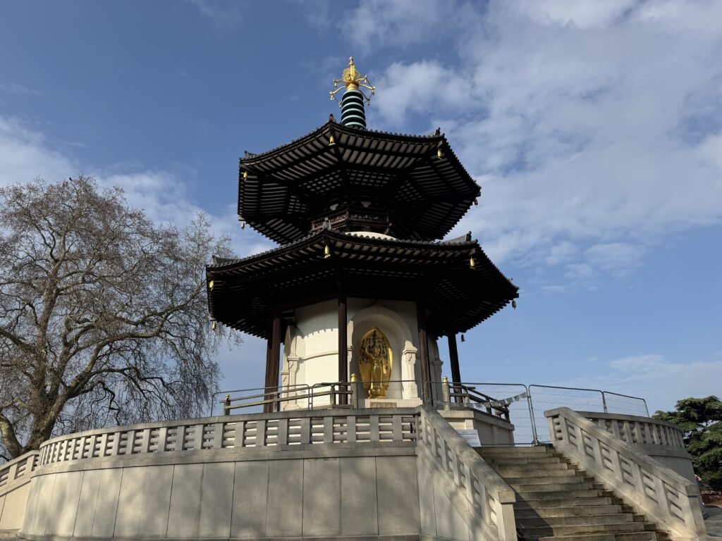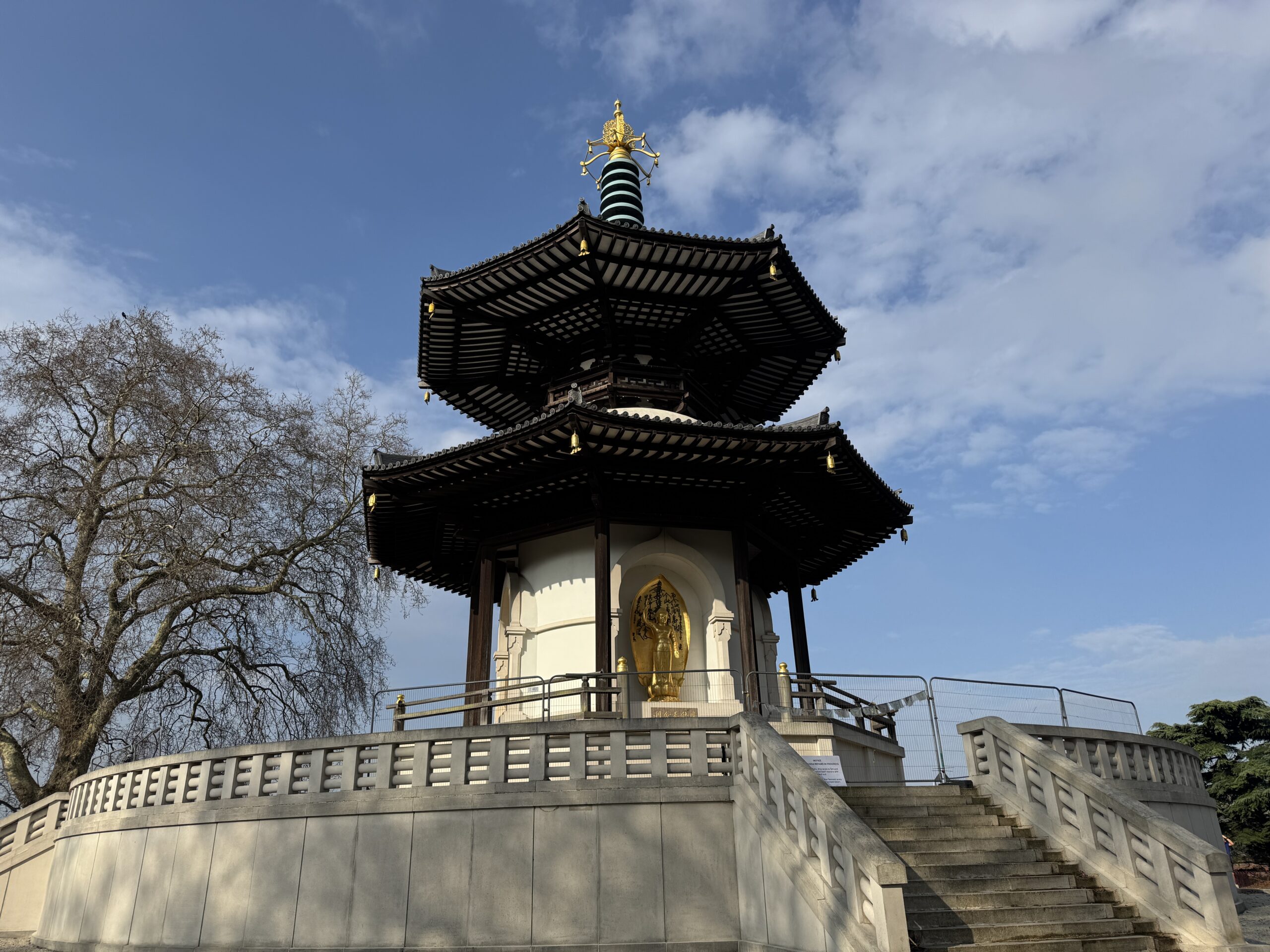 Около реки располагается пагода мира. Она на ремонте, о чем можно было догадаться по новостям.