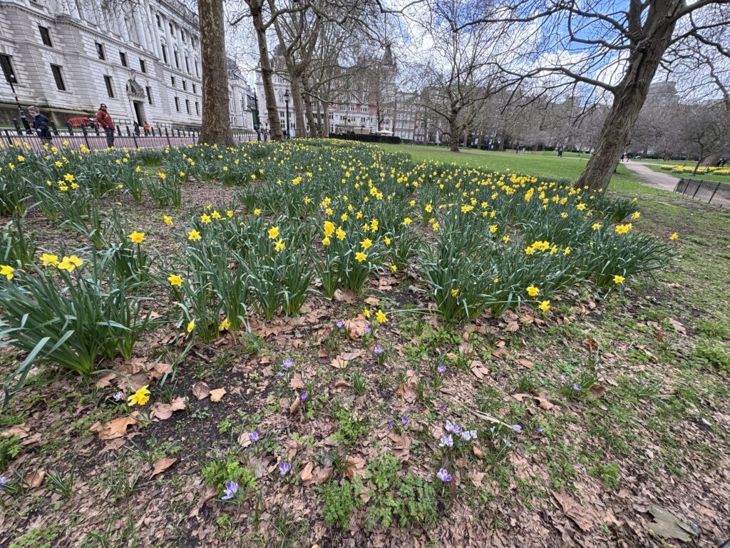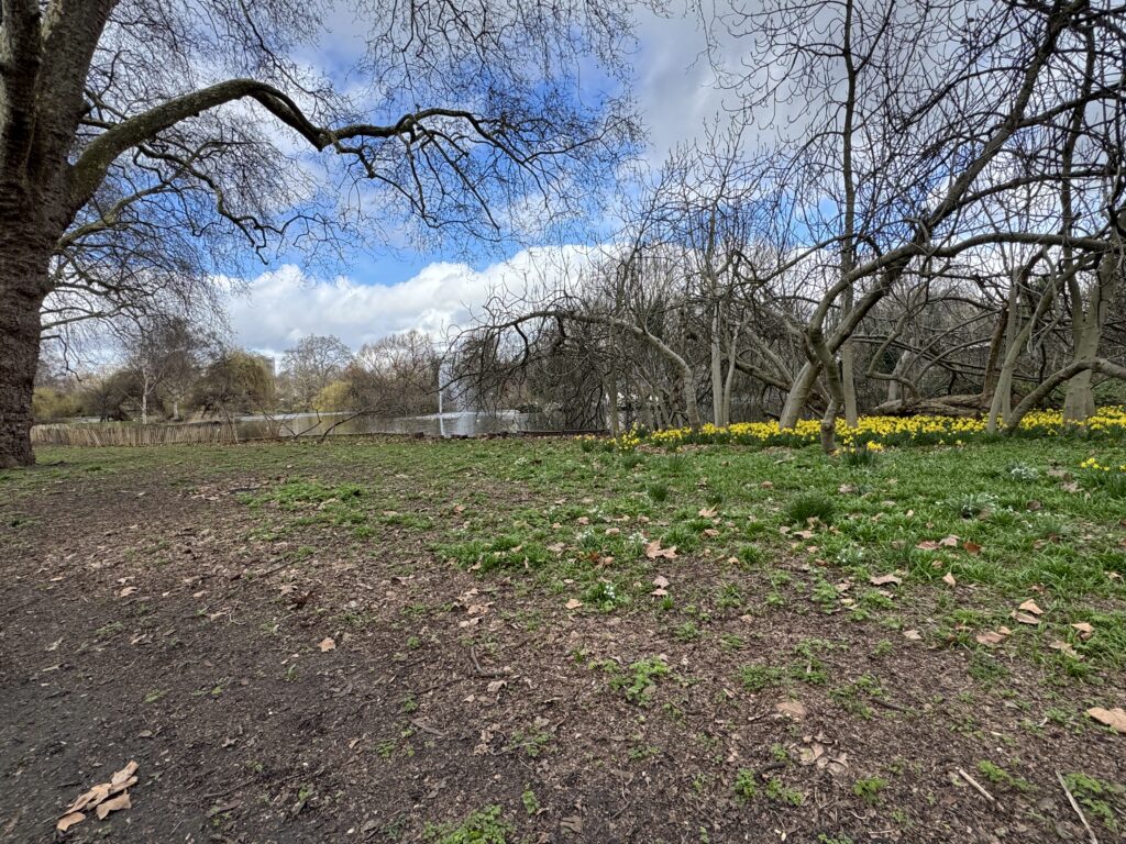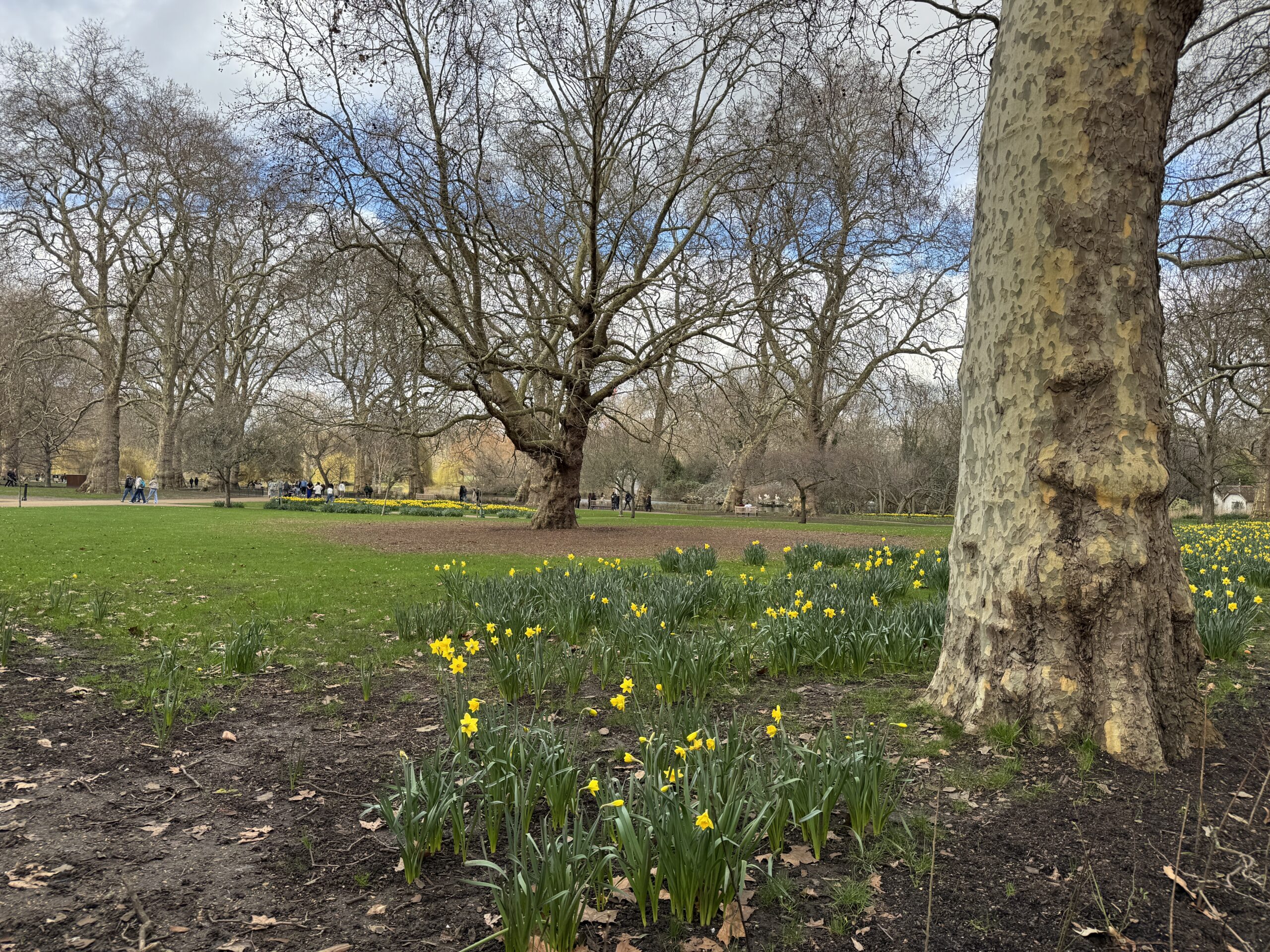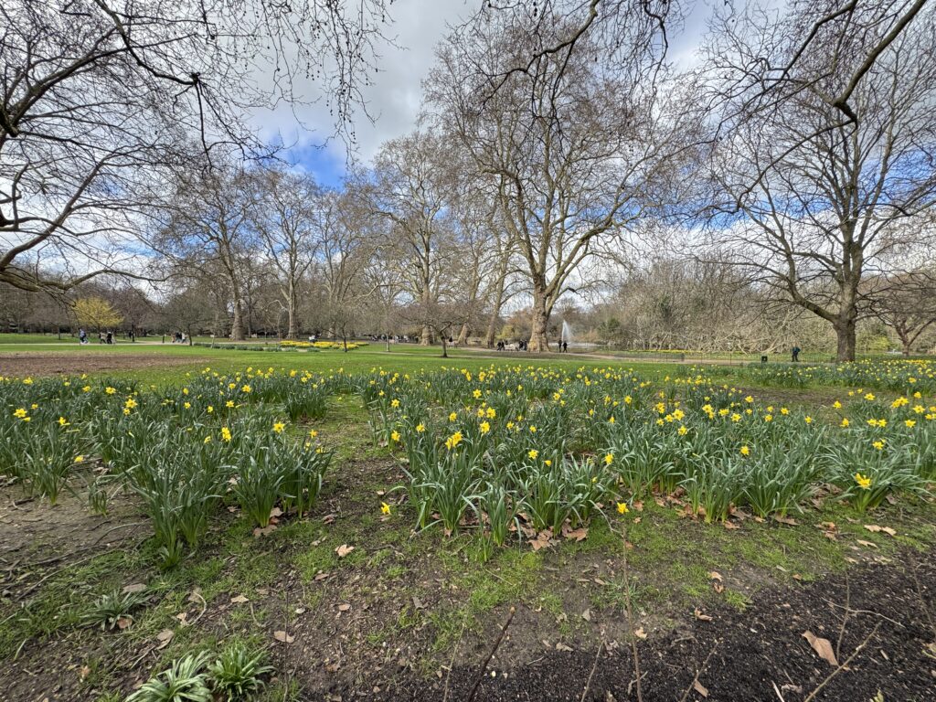 Еще пара шагов и мы рядом с нарциссами и платанами в Сент-Джеймсском парке, старейшем лондонском парке, названном в честь приюта св.Якова.