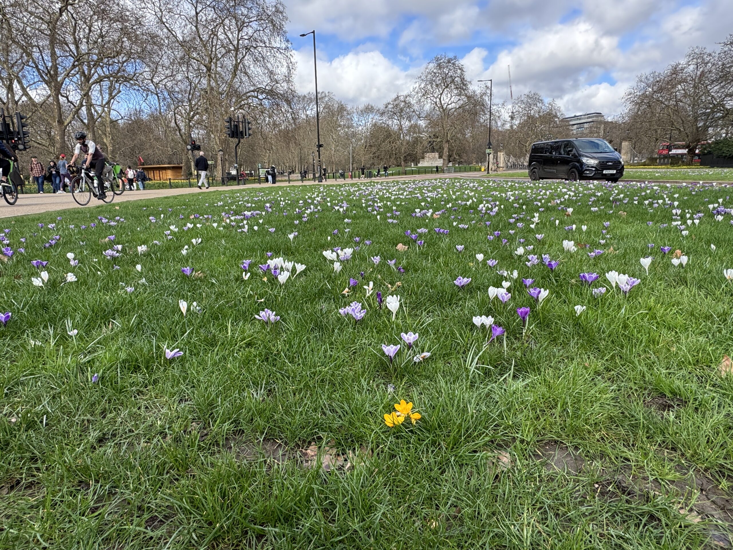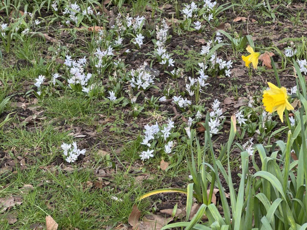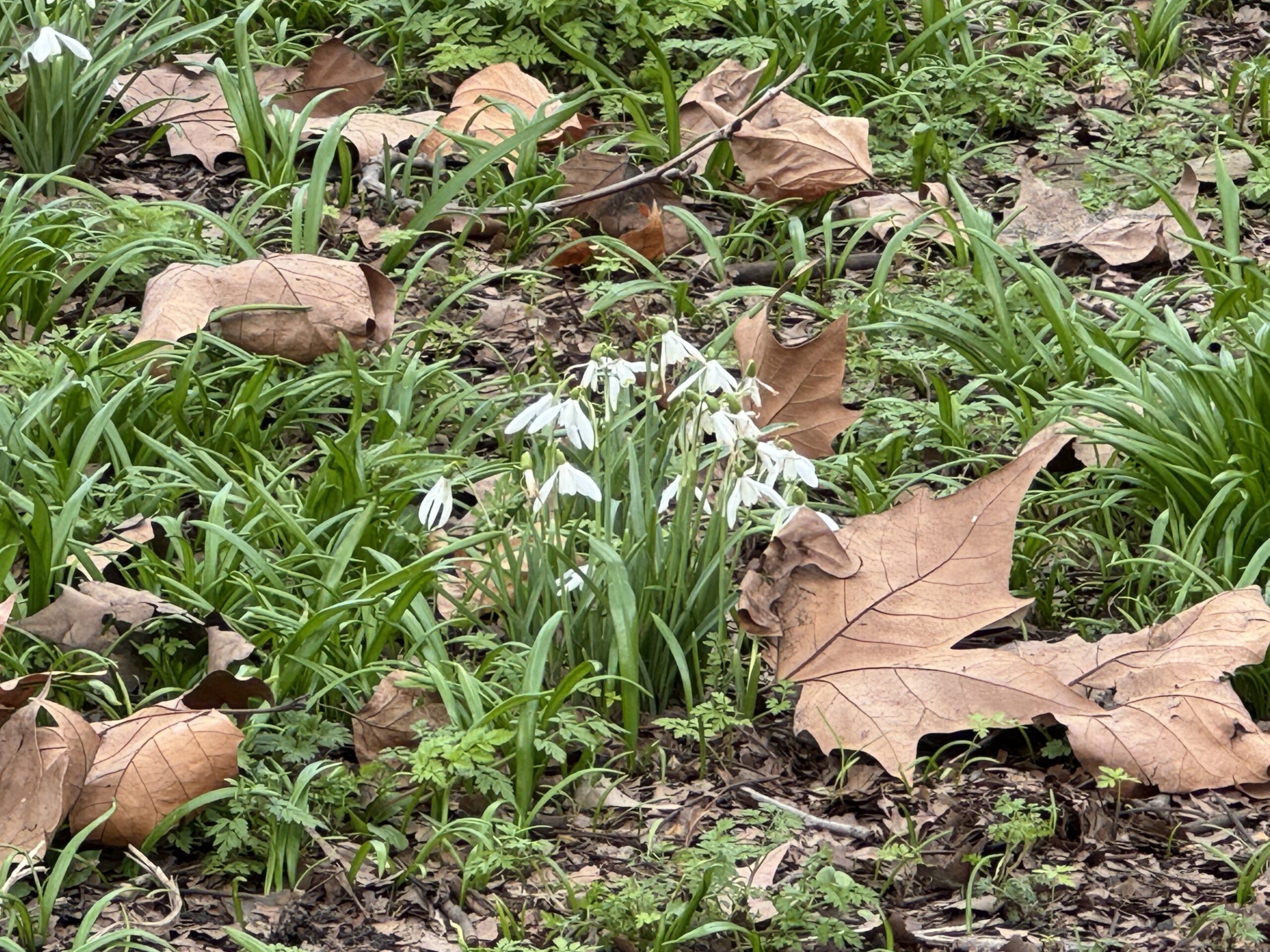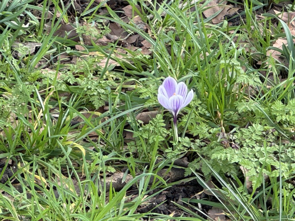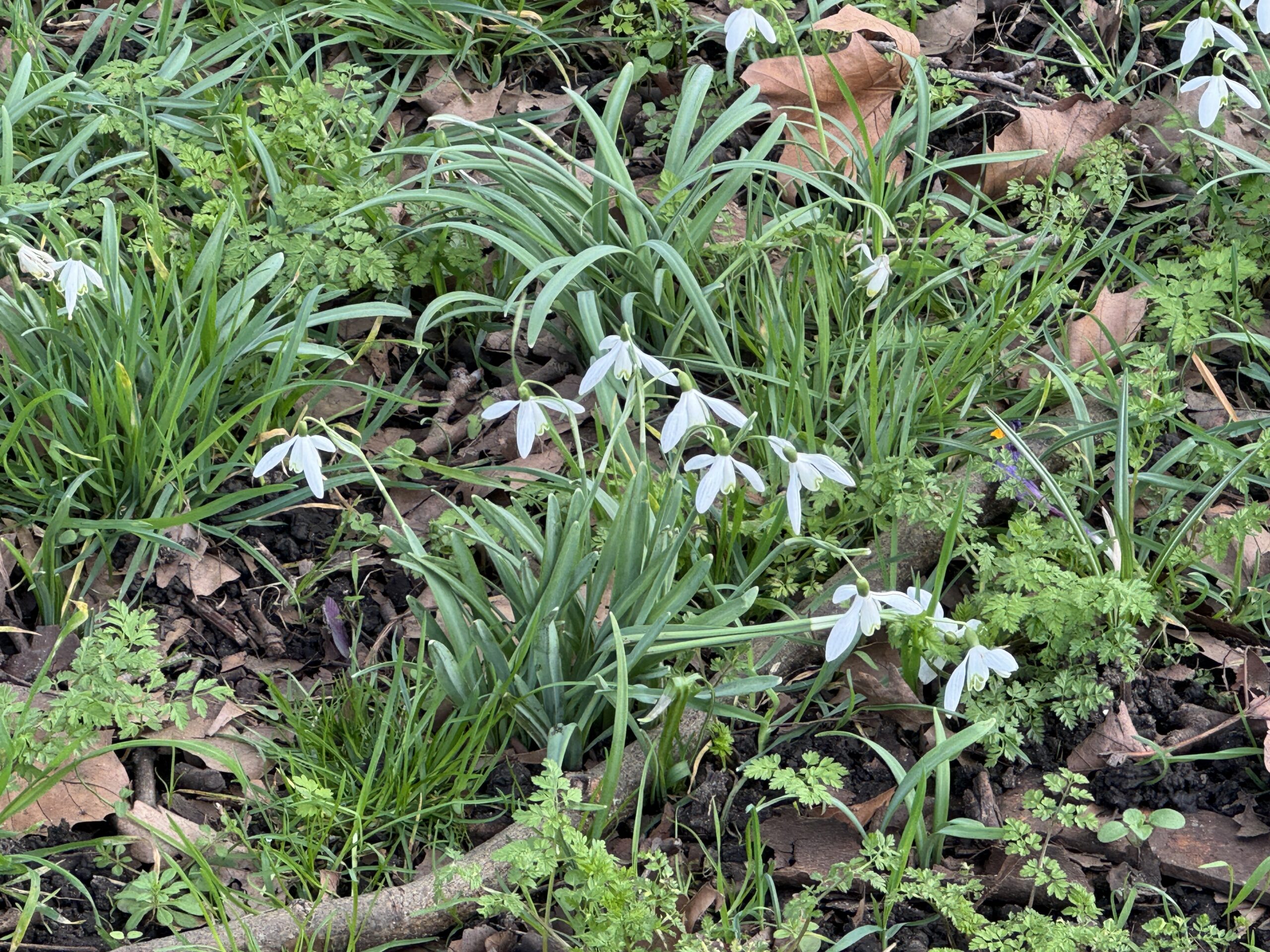 Видны крокусы и кое-где даже последние подснежники, которых особенно много зимой.