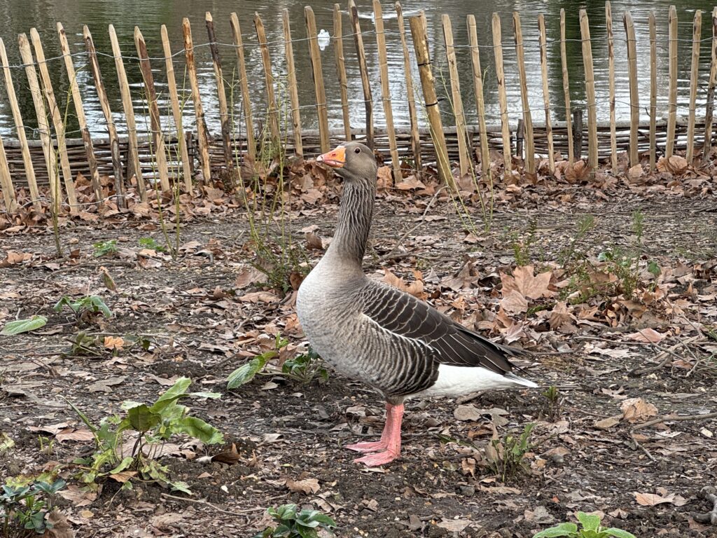 Этот серый гусь неразлучен со своим товарищем другого вида.