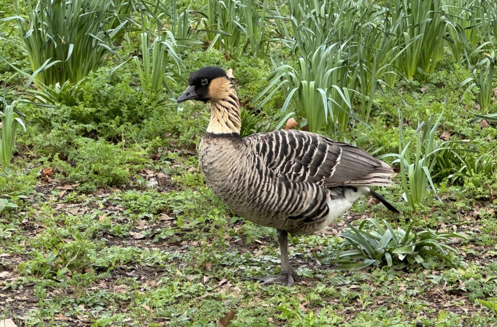 А это гавайская казарка — в дикой природе встречается лишь несколько тысяч особей. Восстановленный вид https://en.wikipedia.org/wiki/Nene_(bird)