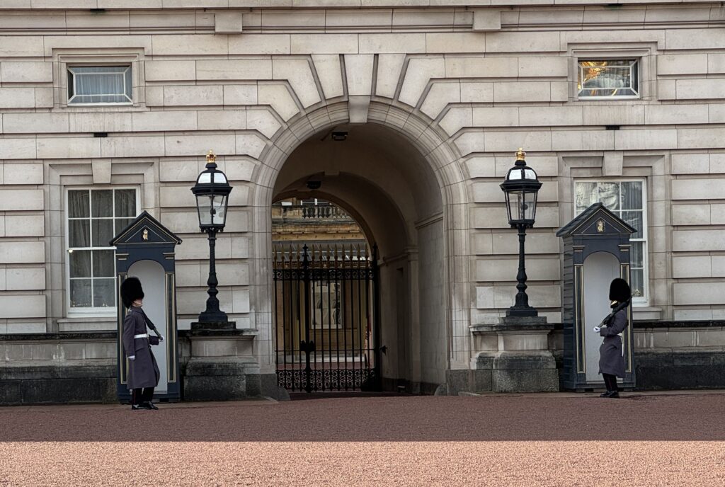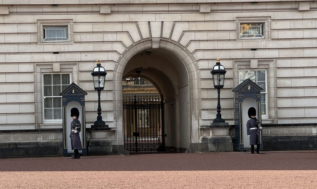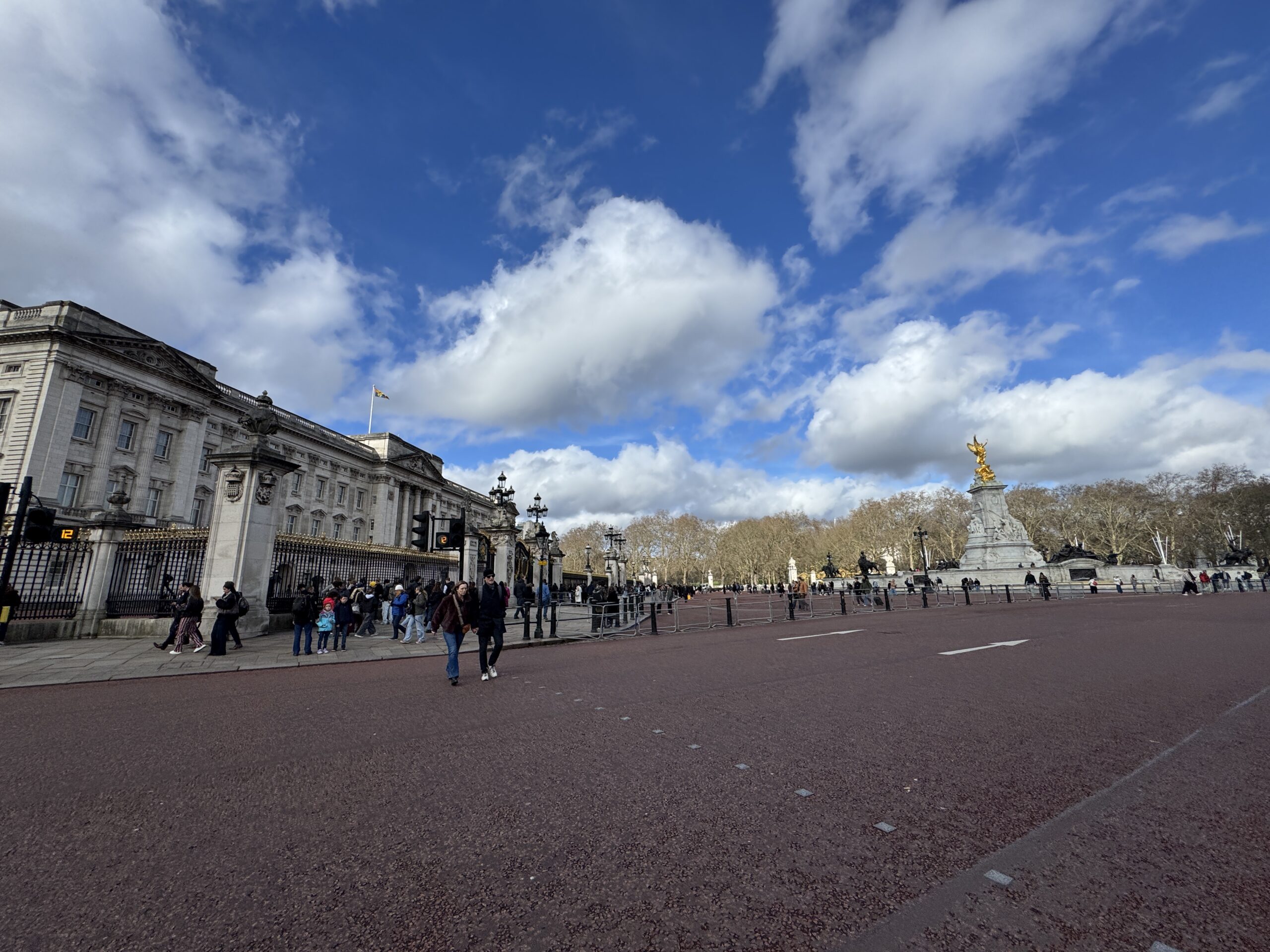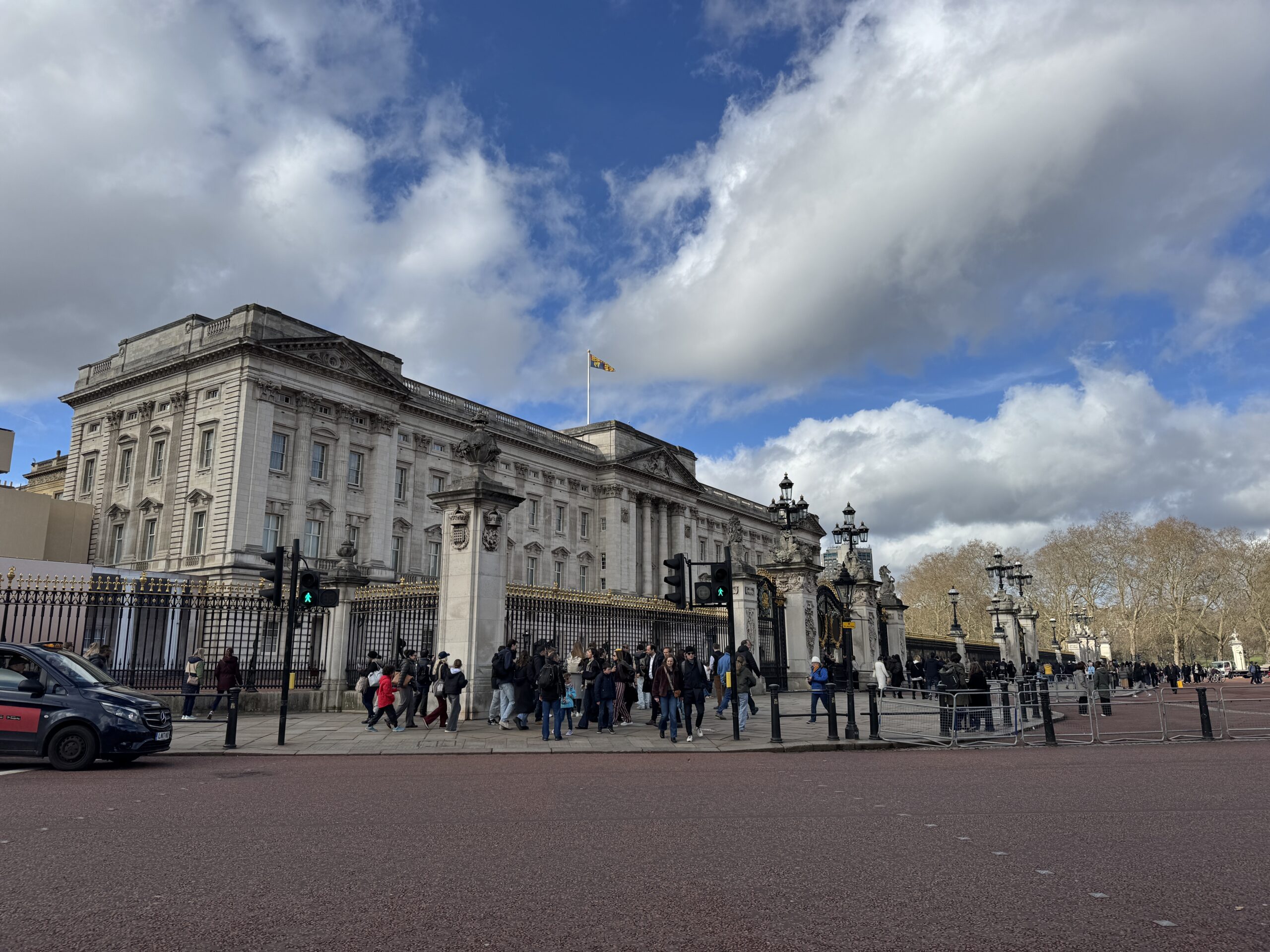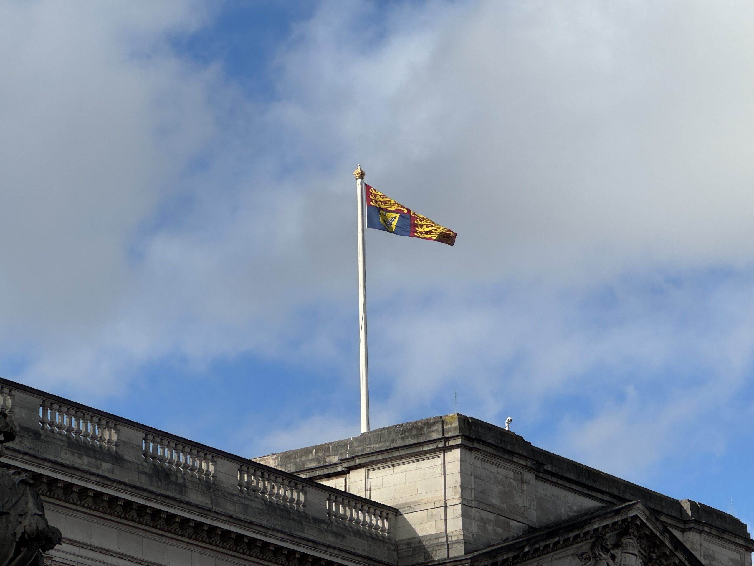Дальше идём мимо Букингемского дворца. Судя по королевскому штандарту, король внутри! Если же сверху знакомый вам флаг Великобритании, Юнион Джек, то короля нет.