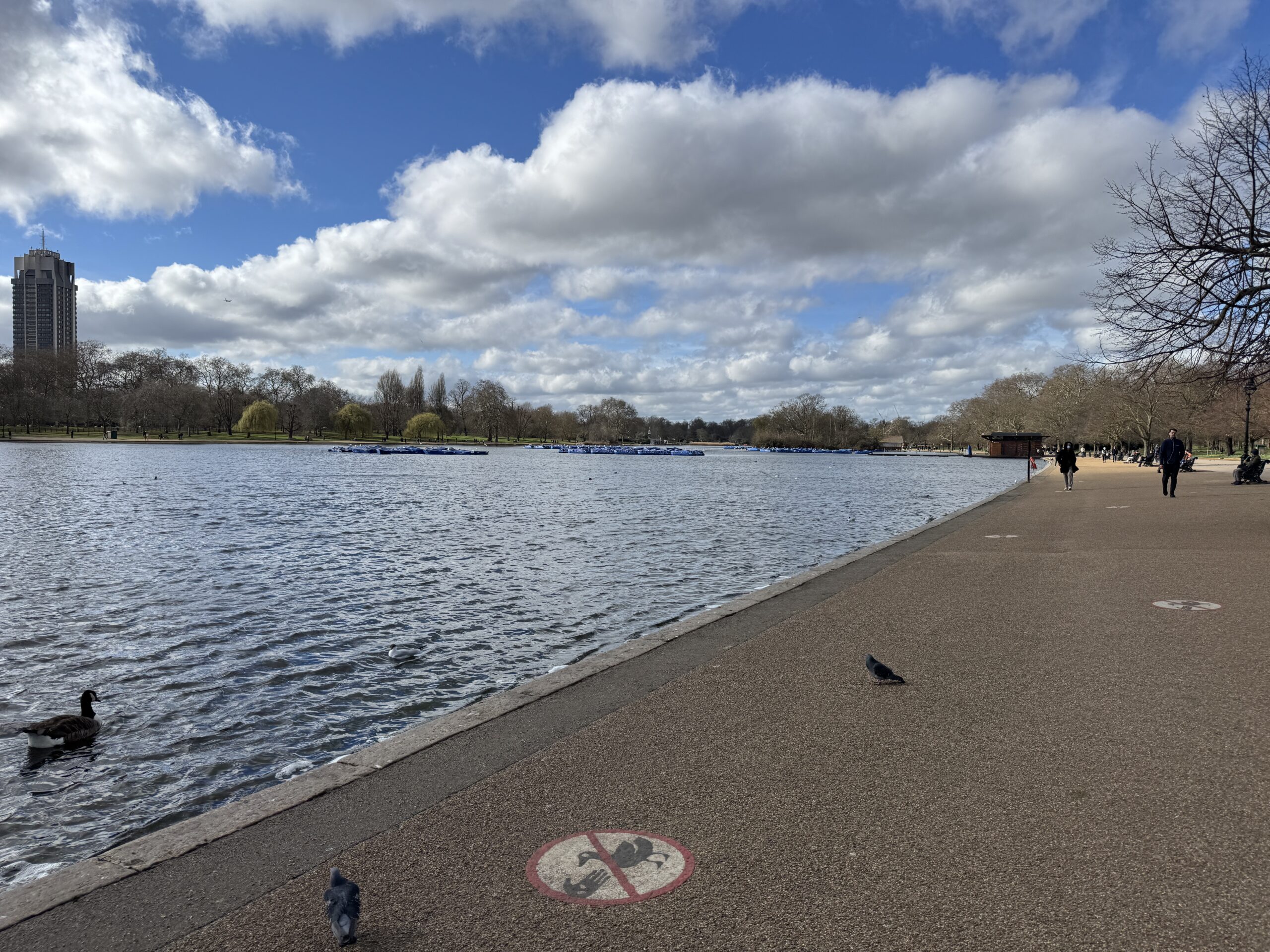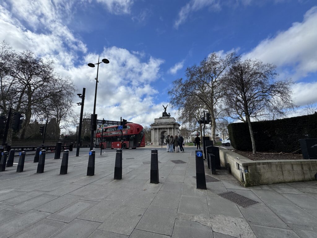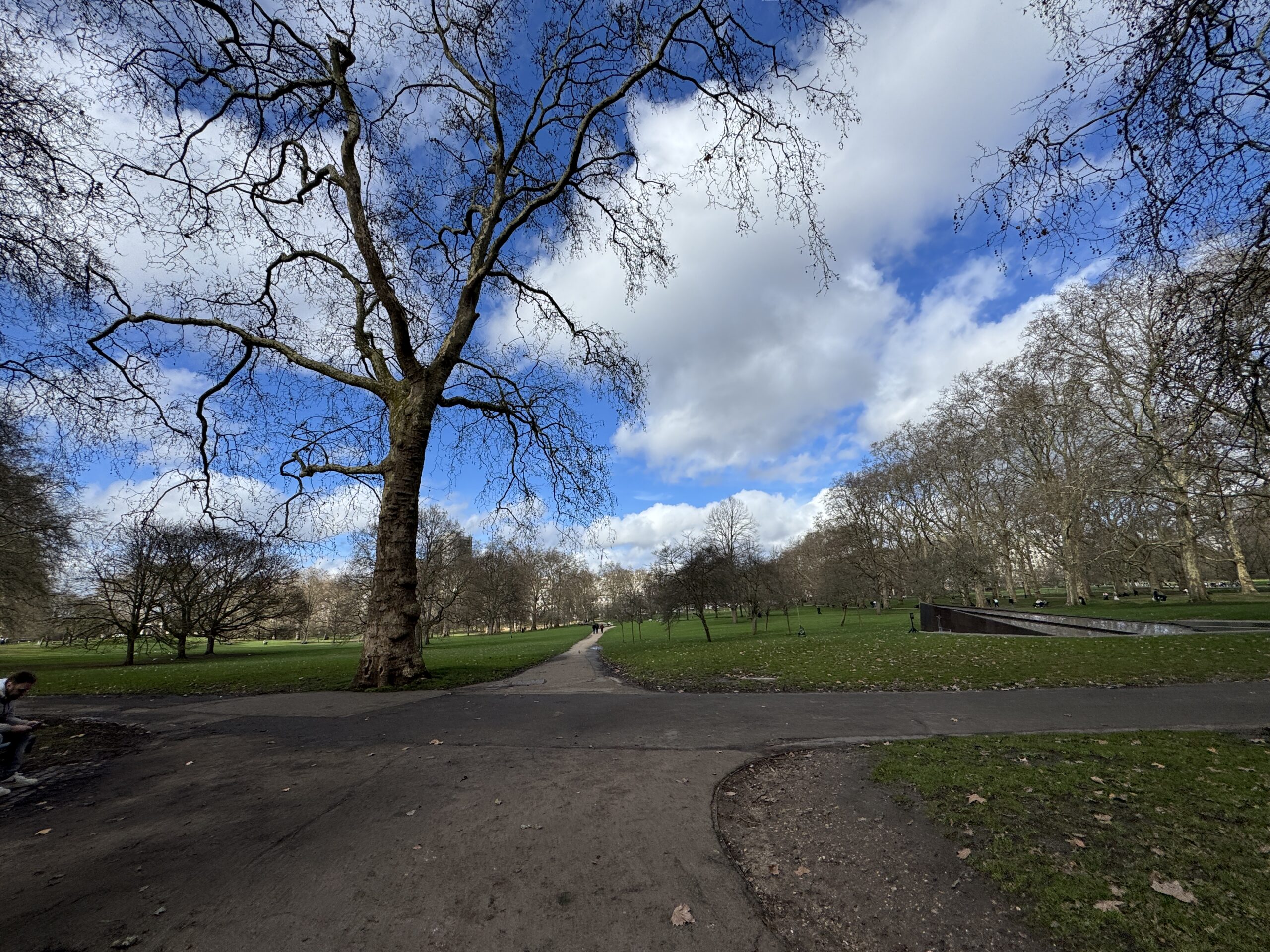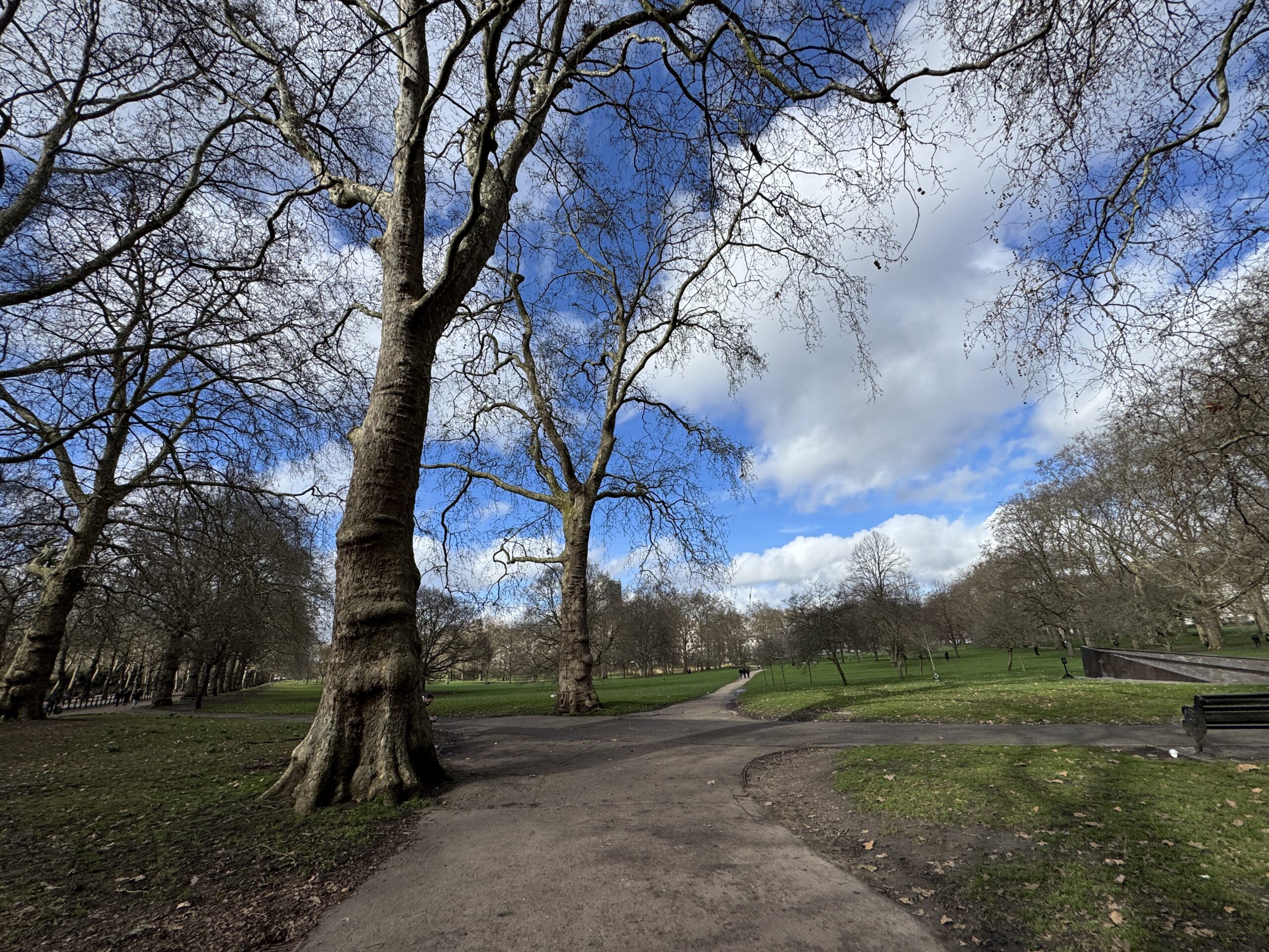 Гайд парк вдали. Здесь установлены светофоры со специальным сигналом для всадников.