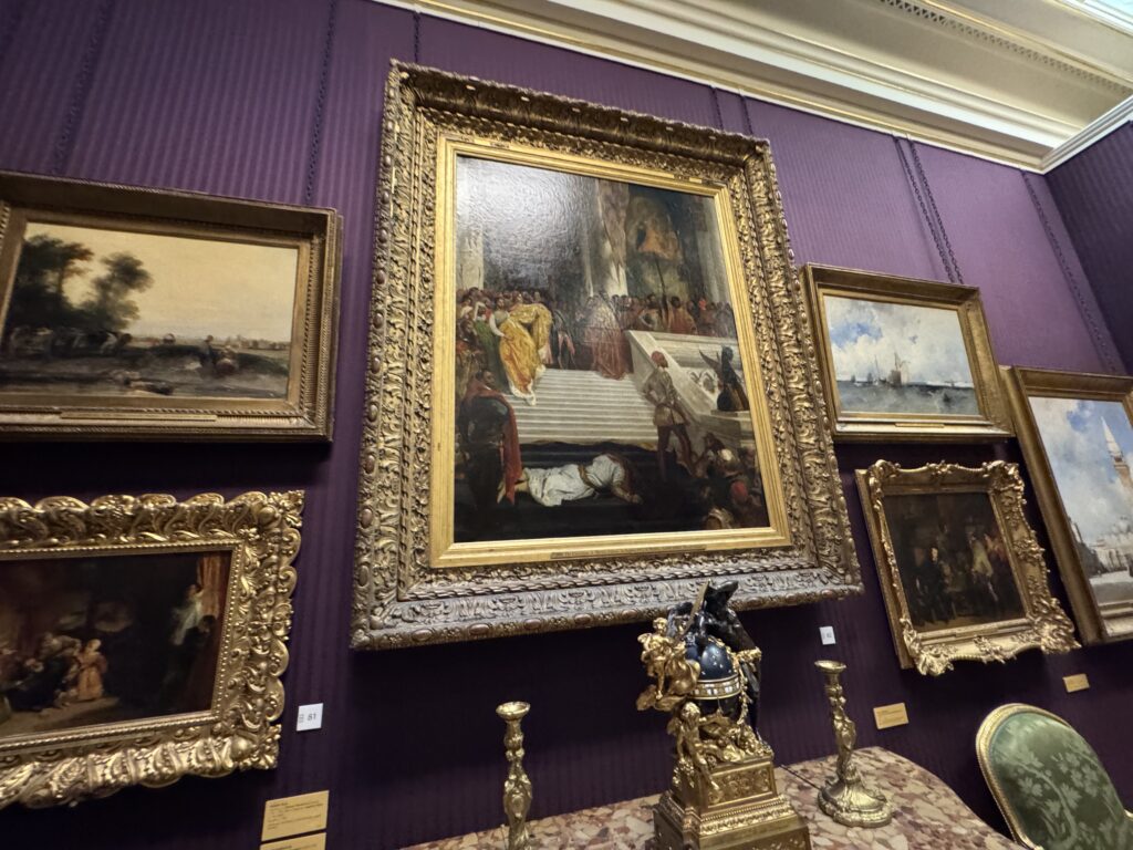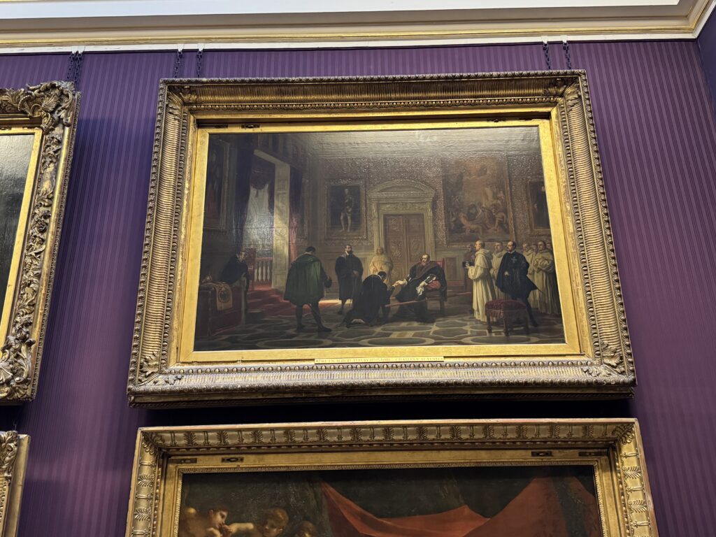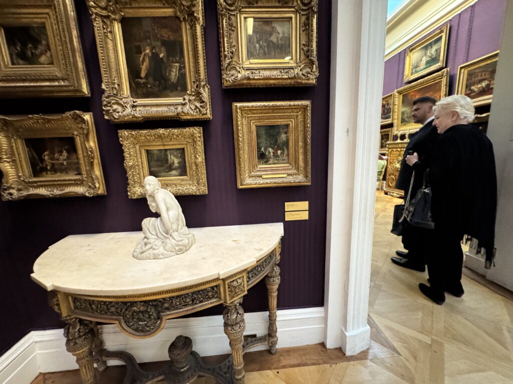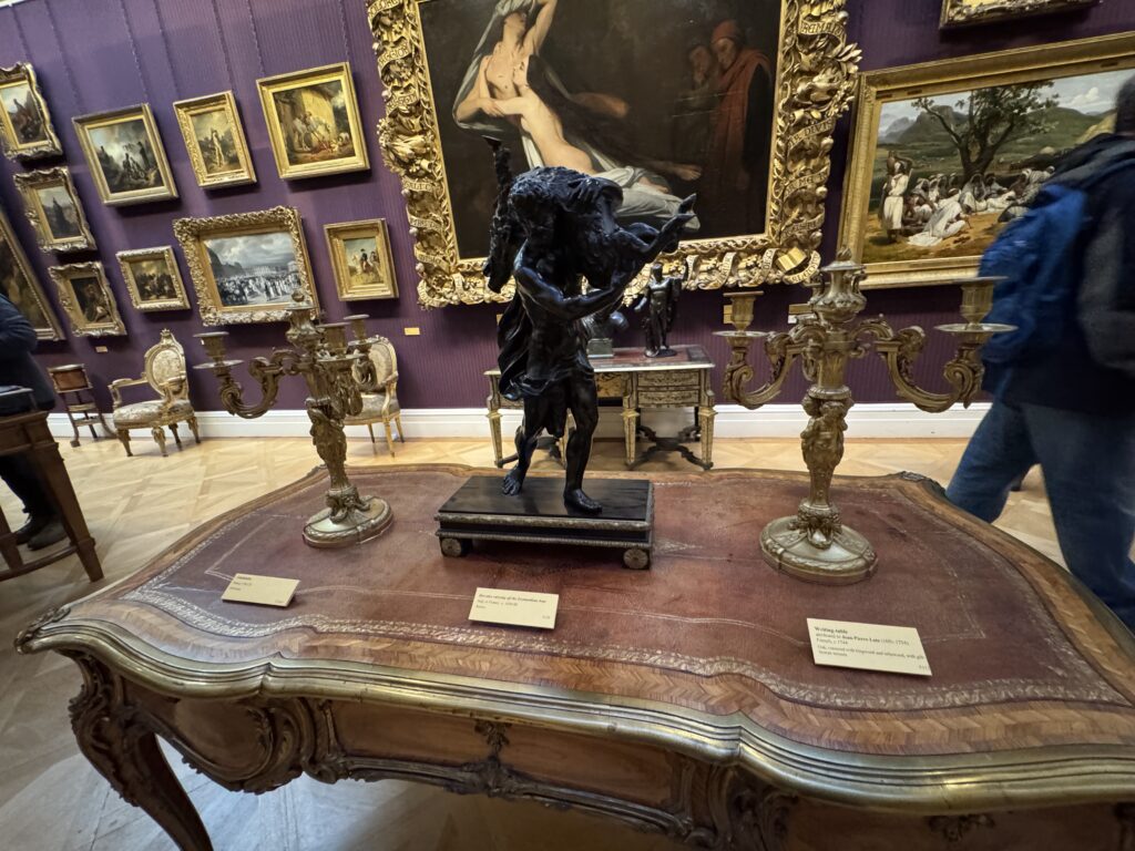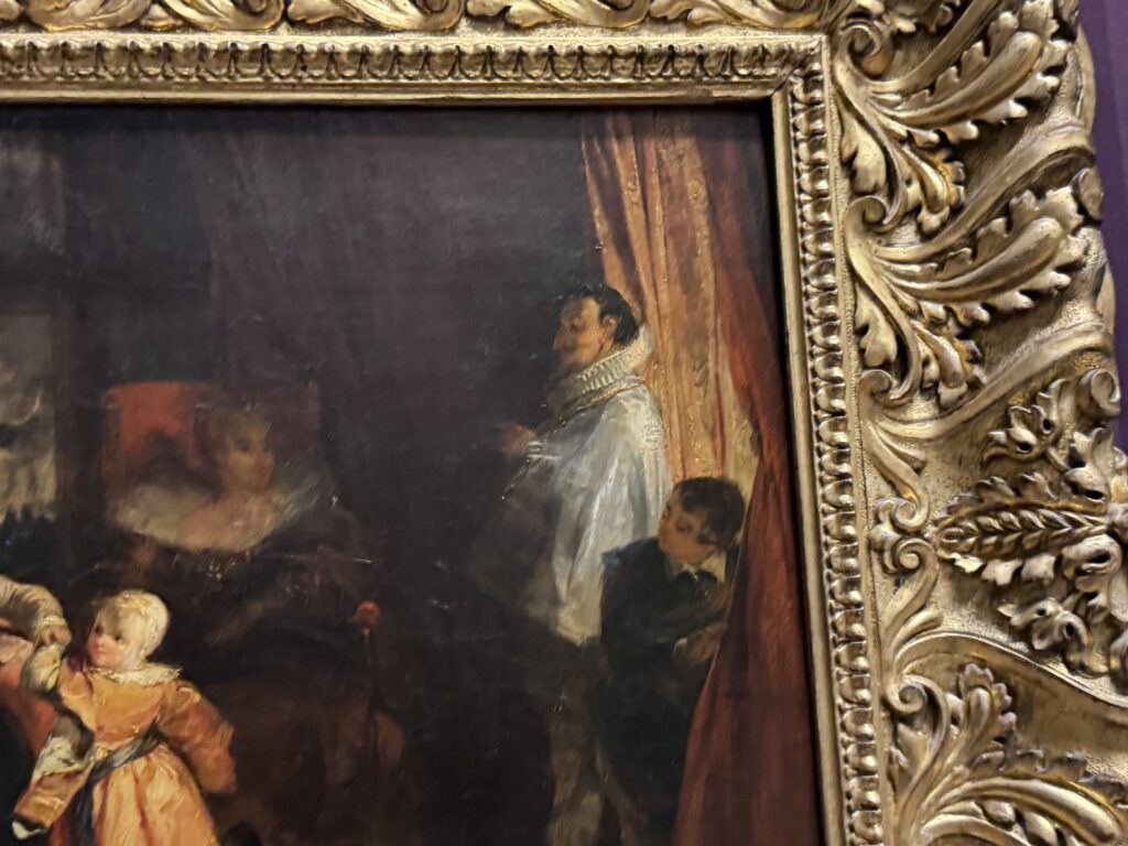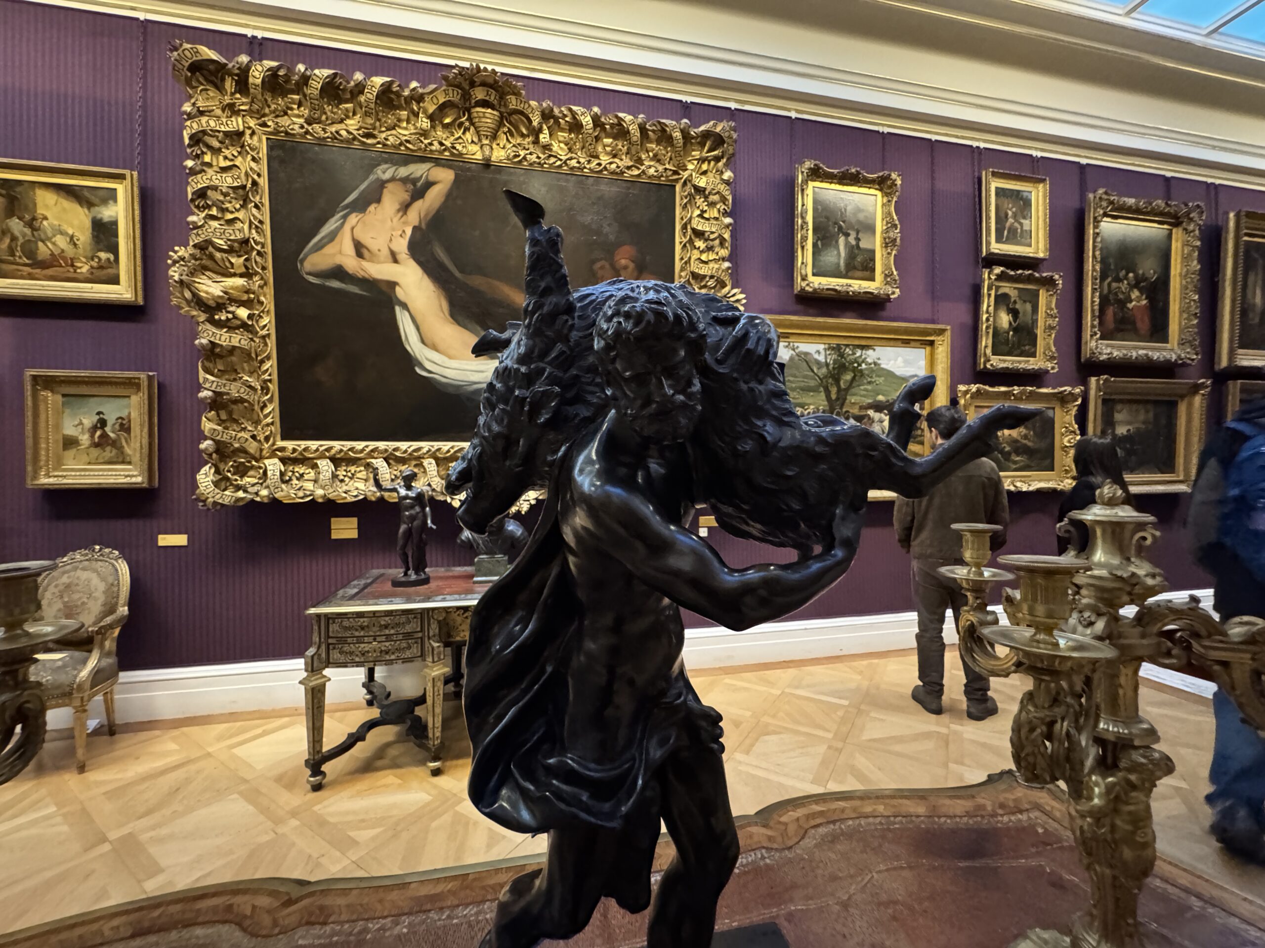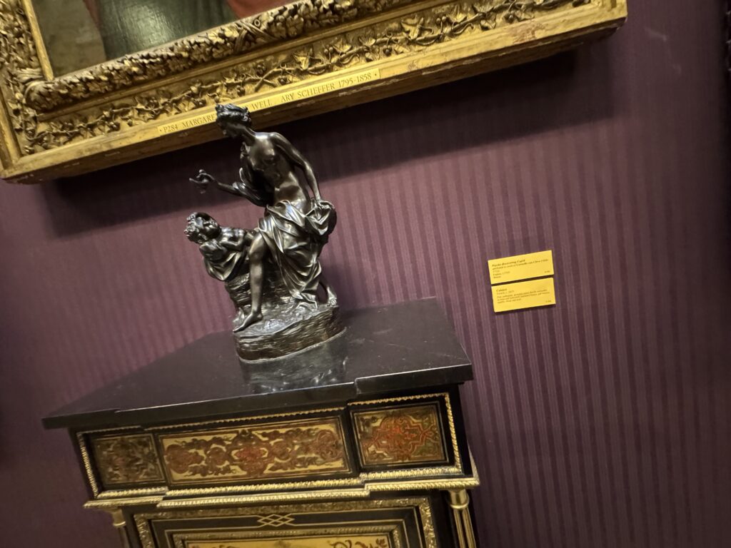 Генрих больше не обладает магнетическим действием на искушенную публику. Пока я изучала эту занимательную работу, к ней не подошел ни один человек. Два французских пожирателя культуры находились совсем рядом, и добрый король Анри интересовал их значительно меньше, чем российские императорские селфи времен Наполеона. Шумная толпа, состоящая из двух представителей чёрной итальянской аристократии — видимо, важных меценатов — и хлопочущих служителей коллекции, была занята чем угодно, но не банальным Генрихом. Так что на лошадке пропаганды мы с вами покатались в полном одиночестве.