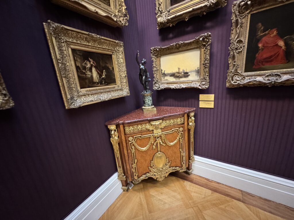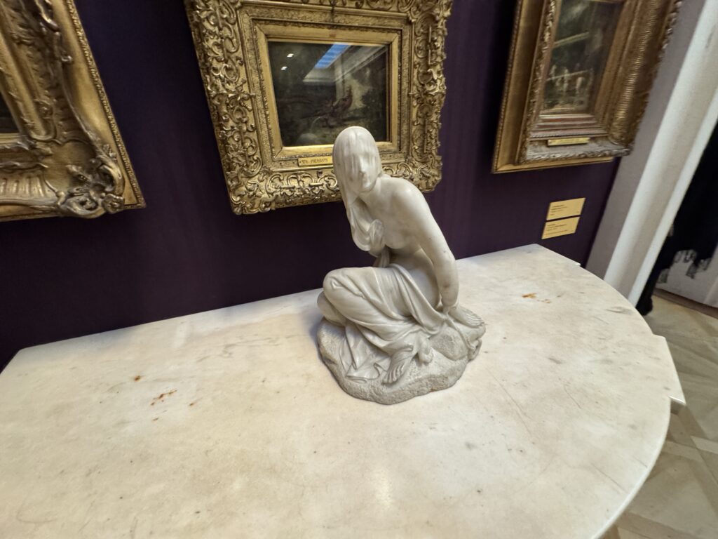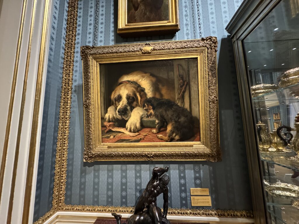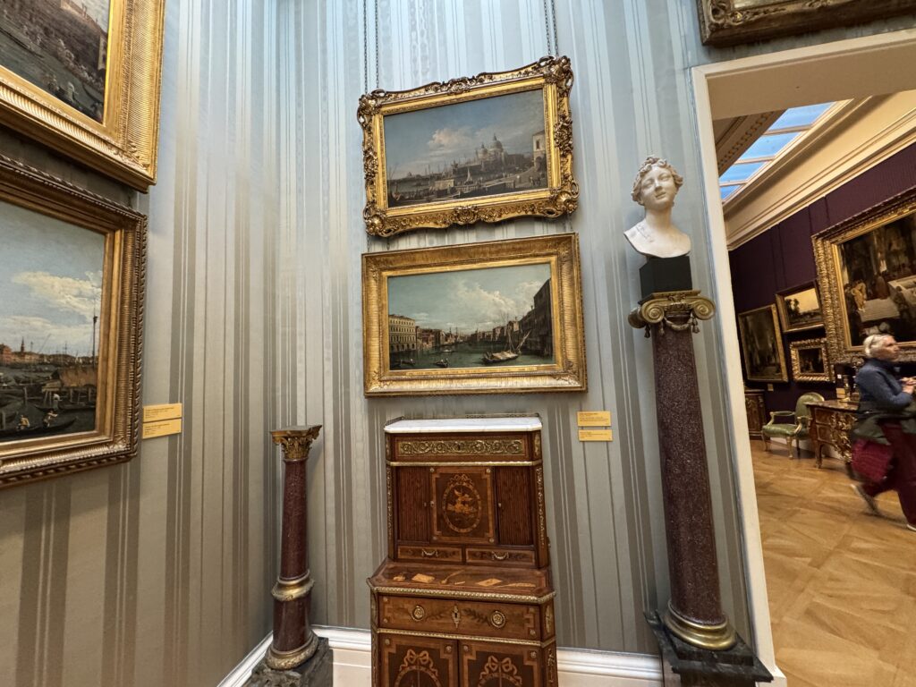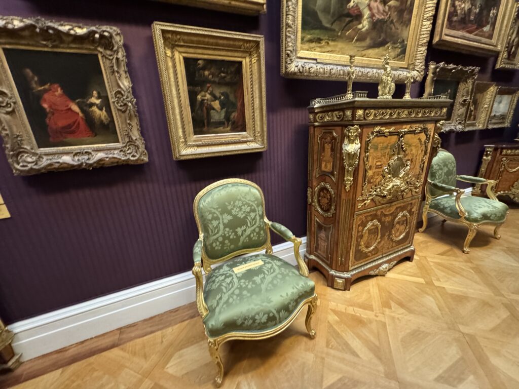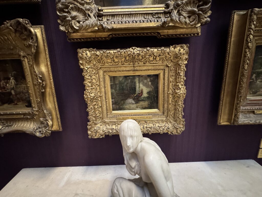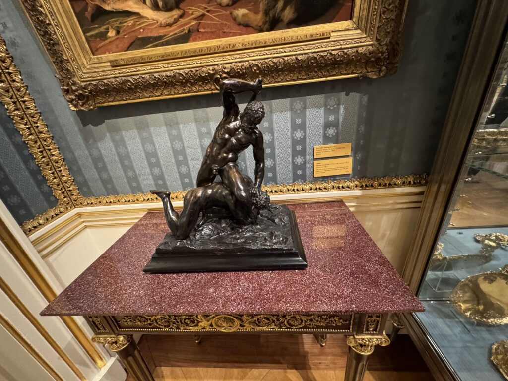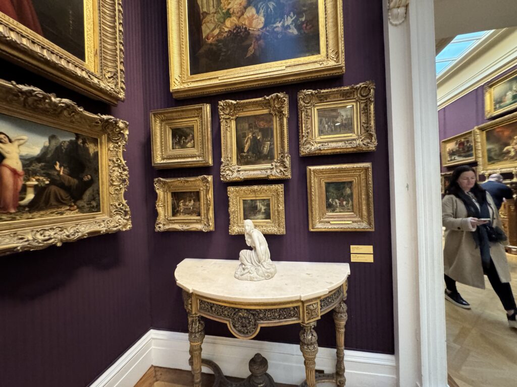 Генрих больше не обладает магнетическим действием на искушенную публику. Пока я изучала эту занимательную работу, к ней не подошел ни один человек. Два французских пожирателя культуры находились совсем рядом, и добрый король Анри интересовал их значительно меньше, чем российские императорские селфи времен Наполеона. Шумная толпа, состоящая из двух представителей чёрной итальянской аристократии — видимо, важных меценатов — и хлопочущих служителей коллекции, была занята чем угодно, но не банальным Генрихом. Так что на лошадке пропаганды мы с вами покатались в полном одиночестве.