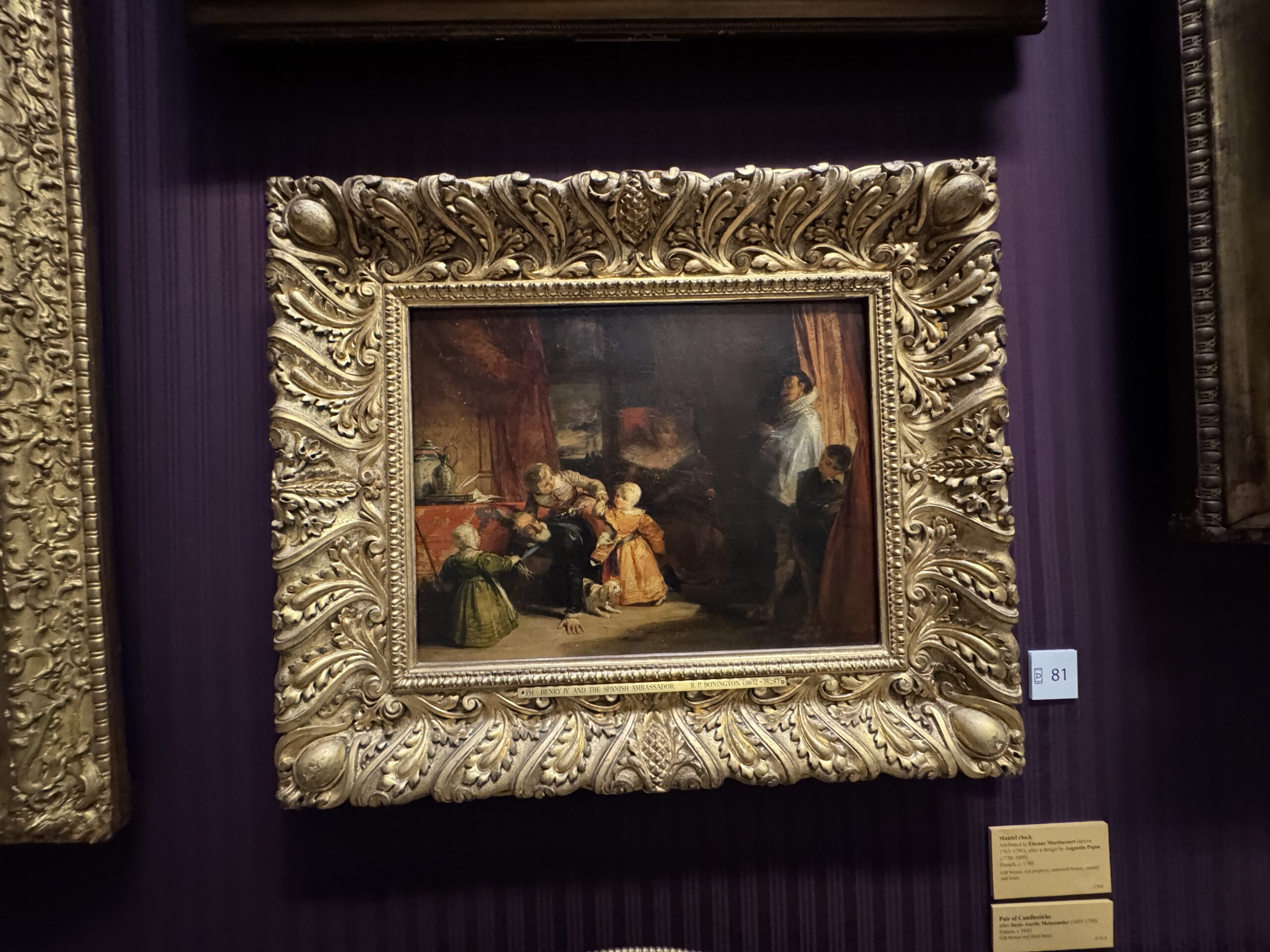 Всего коллекции есть 35 Бонингтонов, в том числе второй с той же парижской выставки, Франциск I со своей любимой сестрой Маргаритой. Согласно Гюго, король выцарапал алмазом на оконном стекле замка Шамбор знаменитую фразу о непостоянстве женщин: «Женщина часто меняется, безумен тот, кто ей верит». По Брантому фраза была короче: «Всякая женщина изменчива».