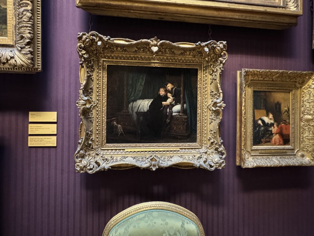 Картина французского художника Поля Делароша «Эдуард V и герцог Йоркский в Тауэре» (1831), уменьшенная авторская реплика монументального полотна, хранящегося в Лувре. Изображены двое юных сыновей короля Эдуарда IV, заточенных в Тауэре их дядей, Ричардом III и маленькая собачка. Все они в предчувствии ужасного события — в том, что именно произошло, историки расходятся. То ли Ричардом III убил своих племянников, то ли они бежали и позже выступали как претенденты на трон. Но из линии наследования они исчезли.