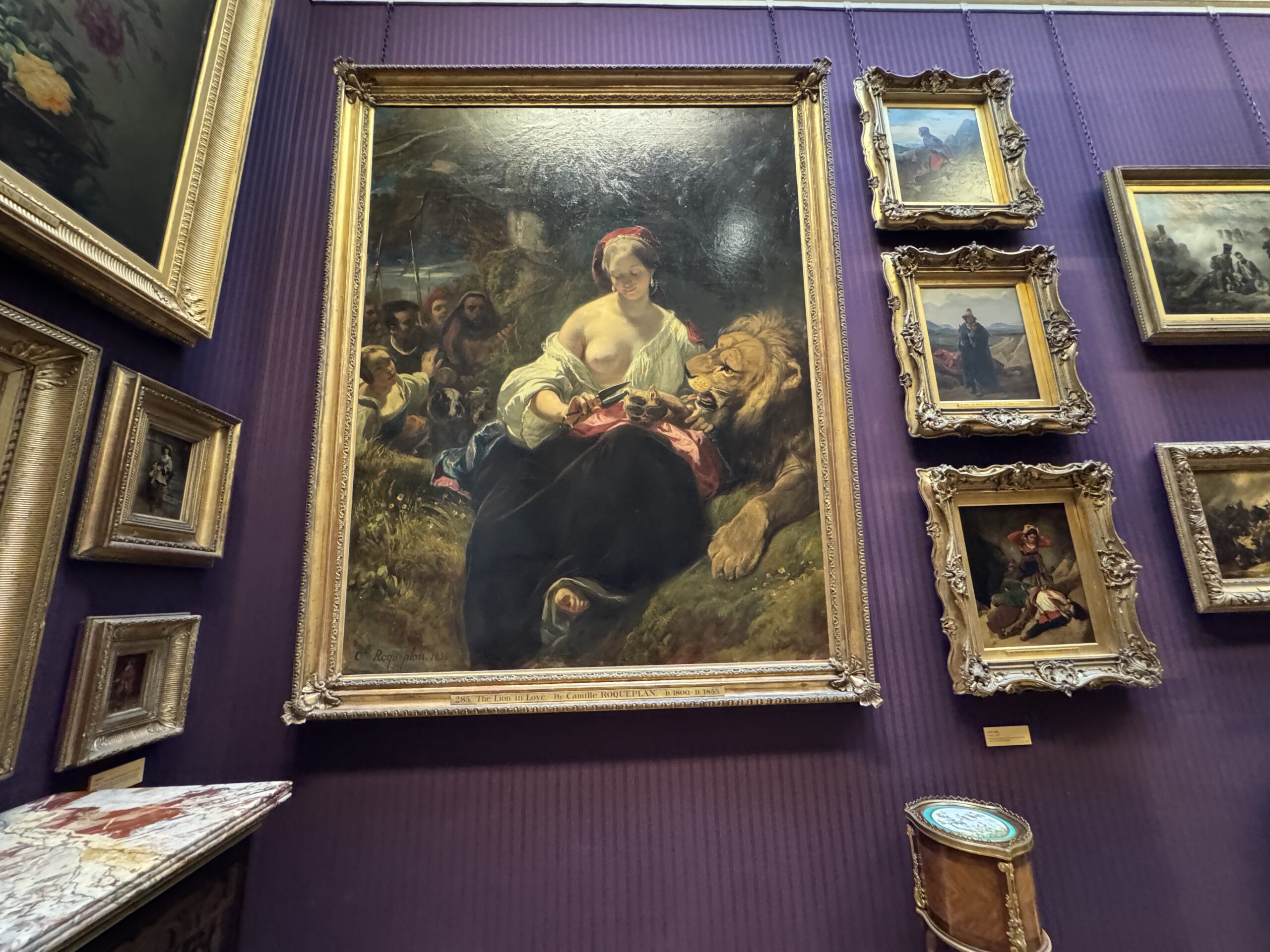Сюжет был популярен во Франции и Англии. Бонингтон, живший в то время в Париже, вдохновился работой Энгра 1817 года и создал свою версию для Парижского салона 1827 года. Позже работа была приобретена 4-м маркизом Хартфордом для его коллекции, ставшей основой Собрания Уоллеса.