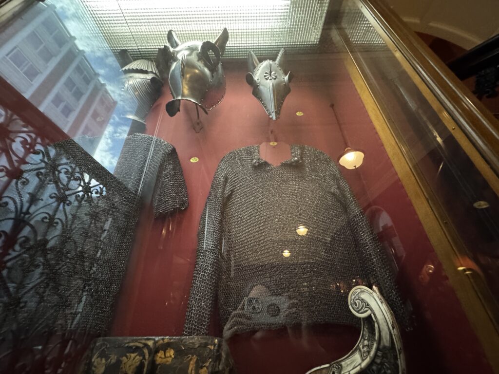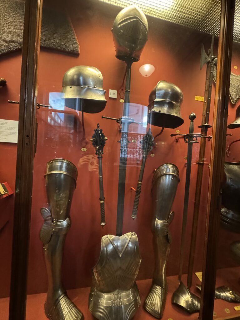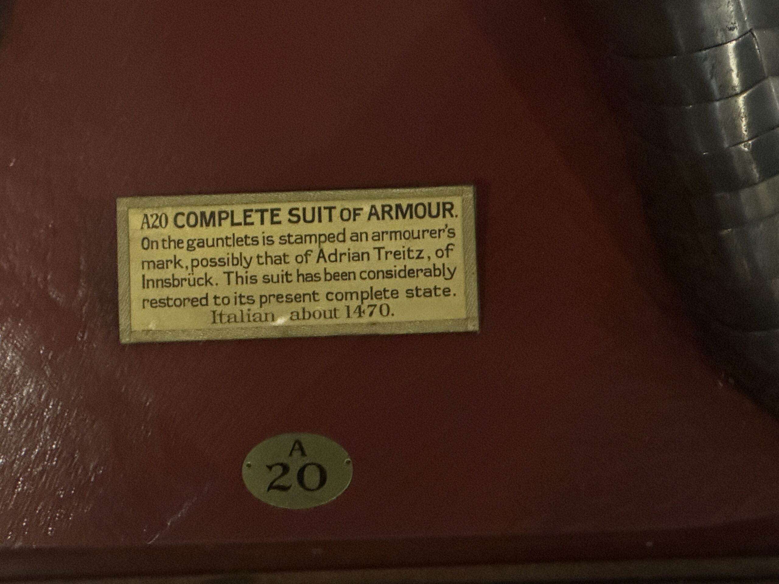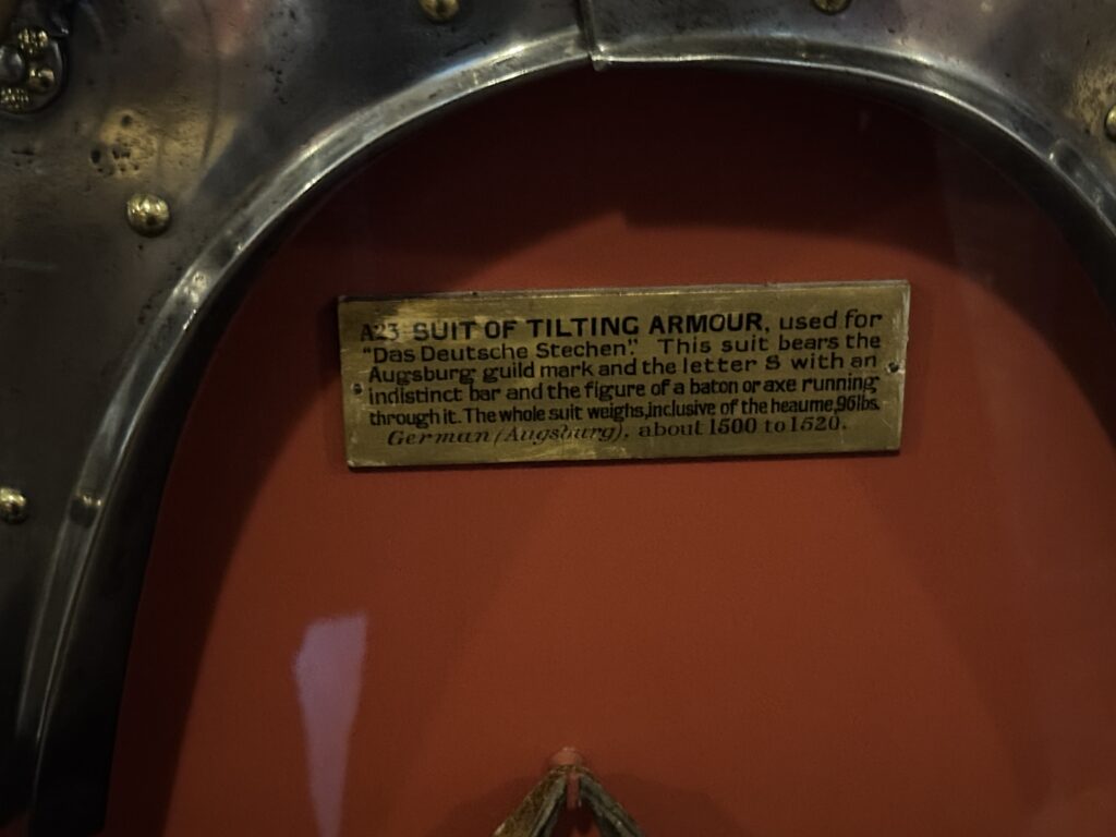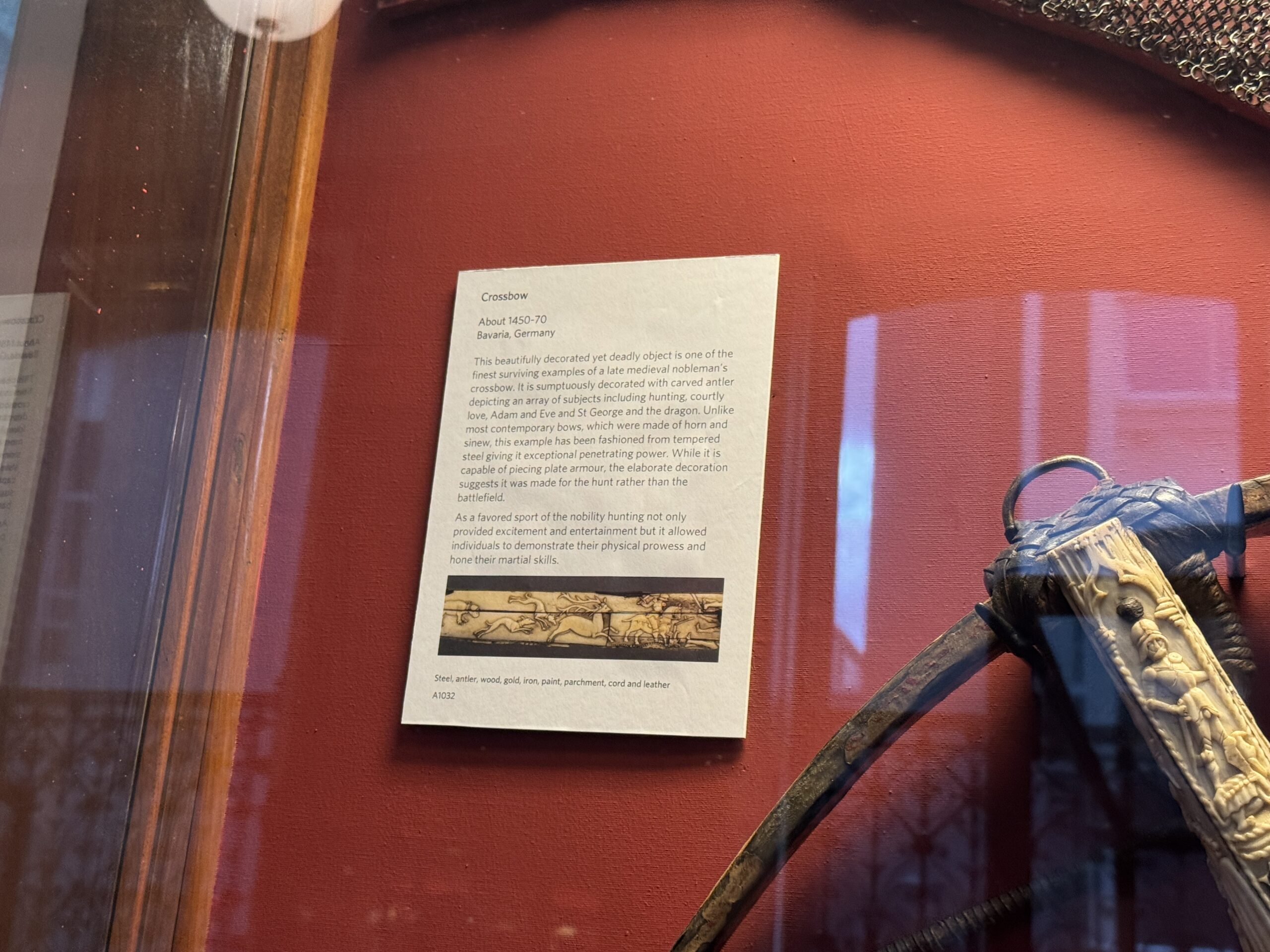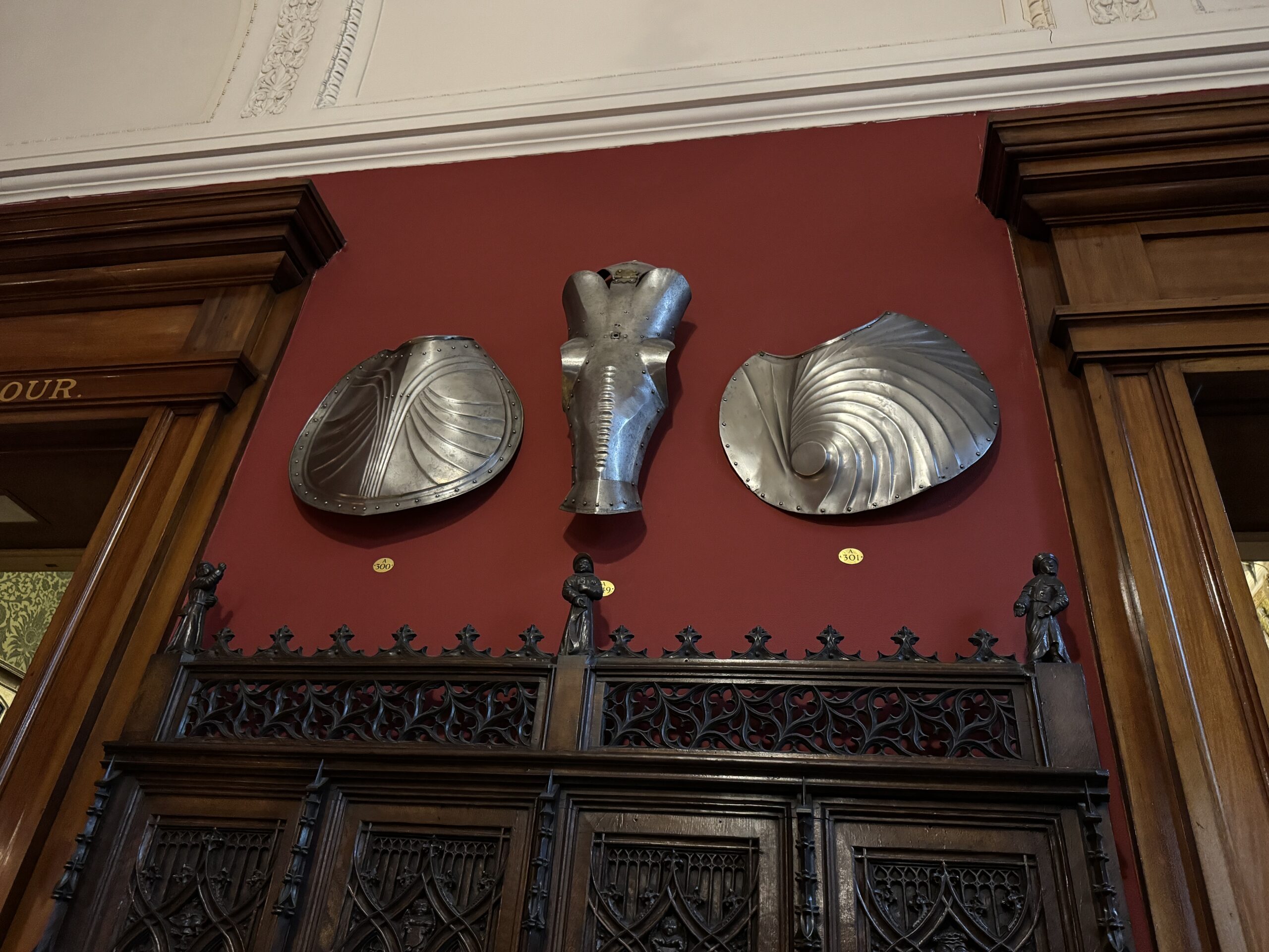 Политическое — это личное! Выставляя рыцарские доспехи, незаконнорожденный Уоллес визуально легитимизировал статус потомка «железных» людей с рыцарскими добродетелями. Тут мимо нас пробегает дух нации и патриархальные идеалы. Оружие описывалось в каталогах как «The very harness of chivalry» (Сама суть рыцарства?). Вместо грязи и смерти посетителю показывали блестящую сталь как символ моральной чистоты и сословного превосходства: «Наше право править основано на древней воинской доблести».