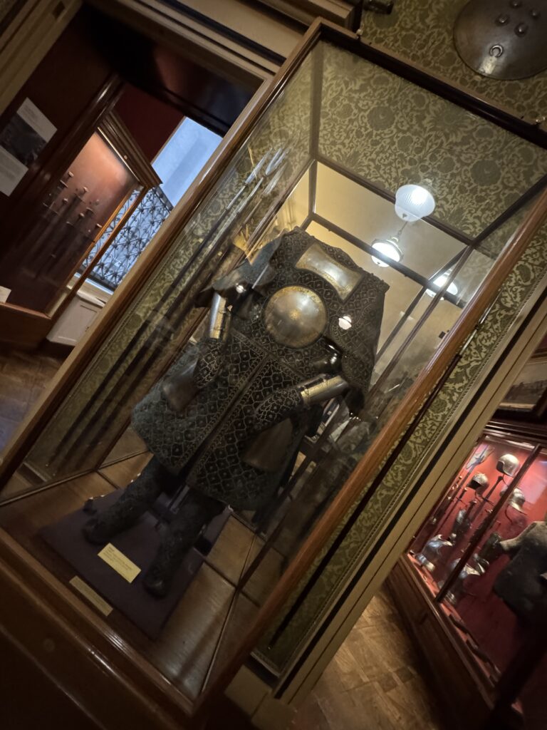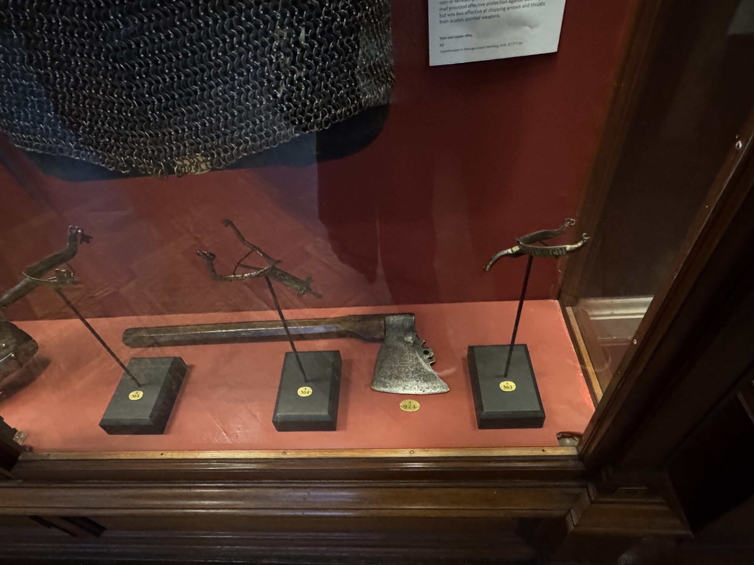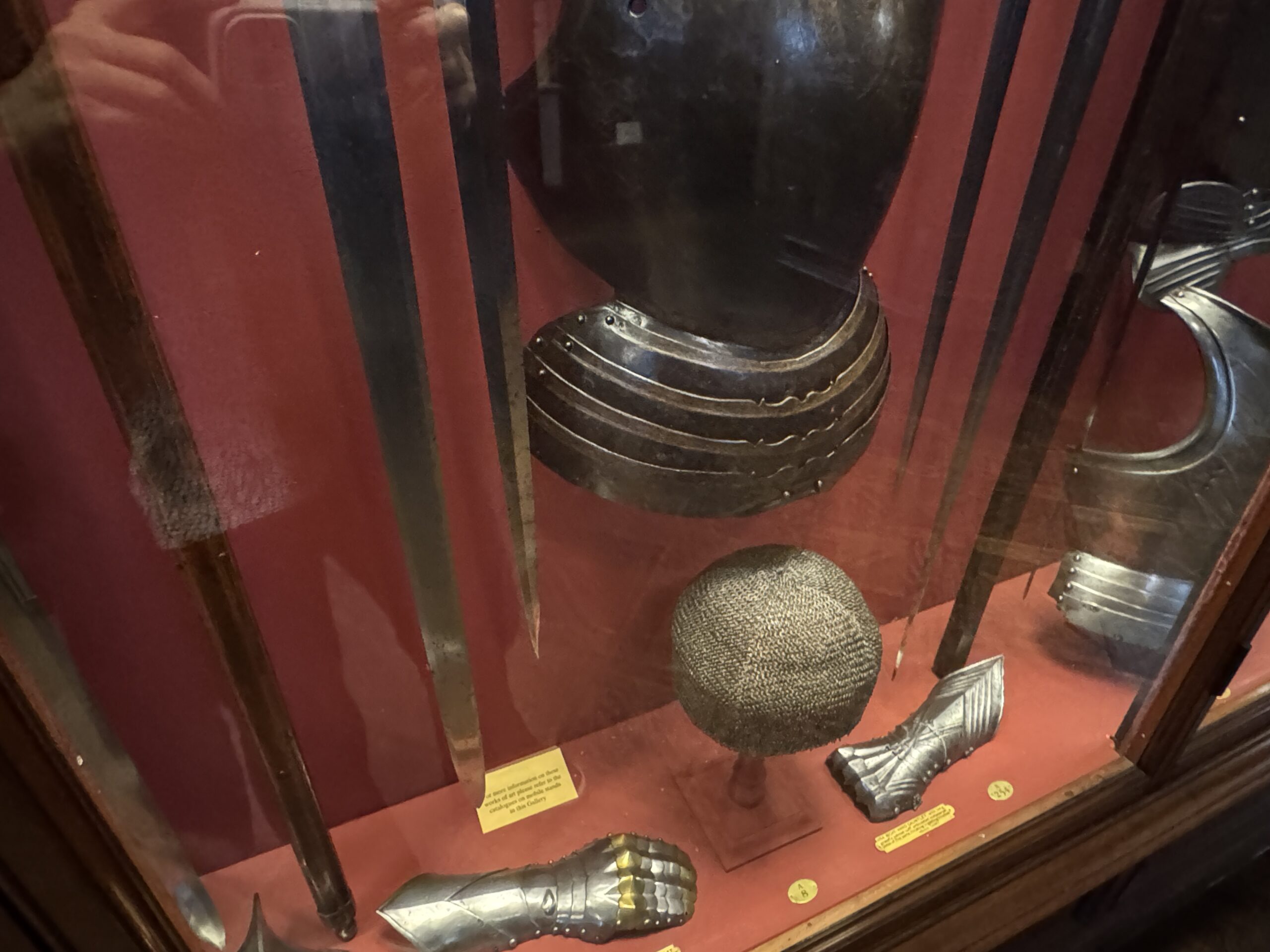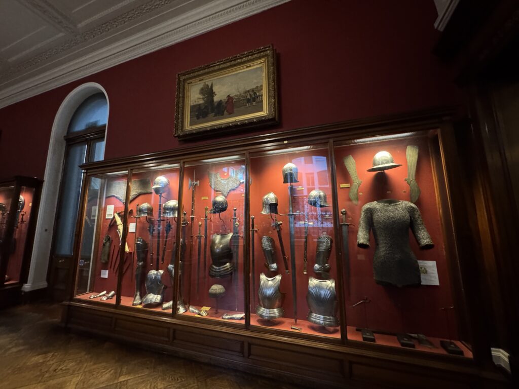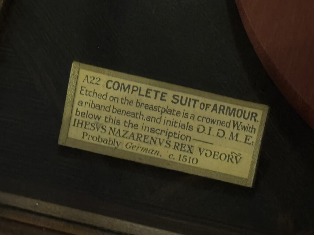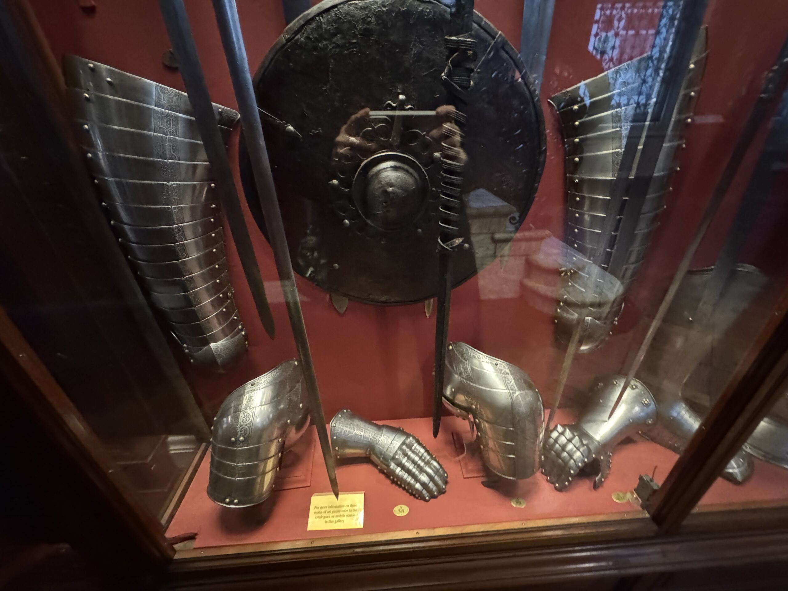 Политическое — это личное! Выставляя рыцарские доспехи, незаконнорожденный Уоллес визуально легитимизировал статус потомка «железных» людей с рыцарскими добродетелями. Тут мимо нас пробегает дух нации и патриархальные идеалы. Оружие описывалось в каталогах как «The very harness of chivalry» (Сама суть рыцарства?). Вместо грязи и смерти посетителю показывали блестящую сталь как символ моральной чистоты и сословного превосходства: «Наше право править основано на древней воинской доблести».
