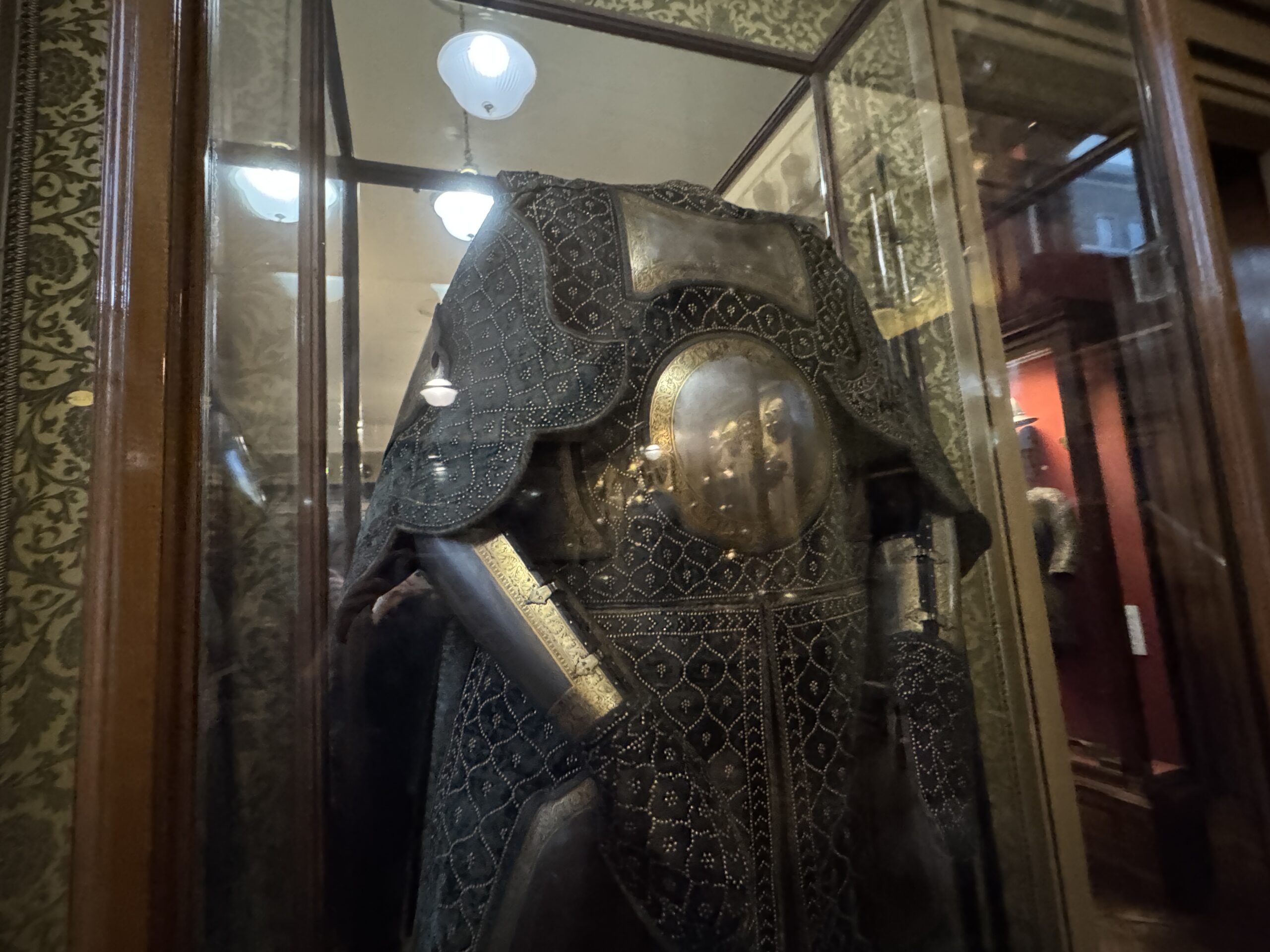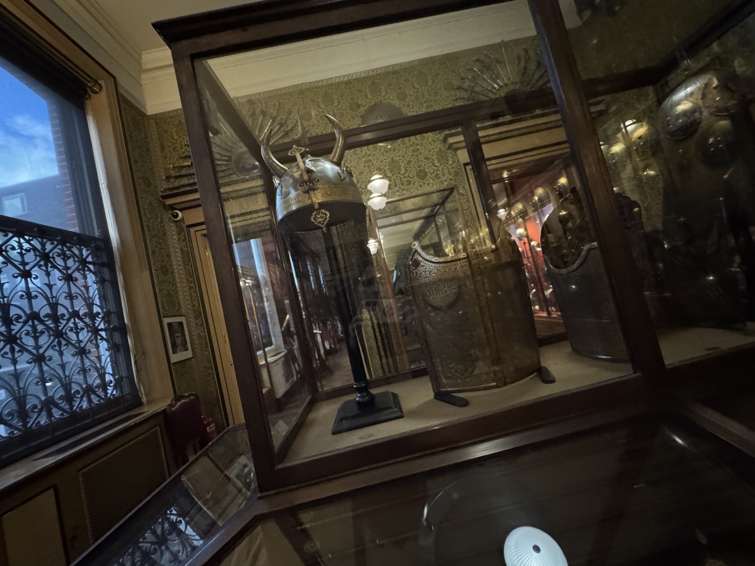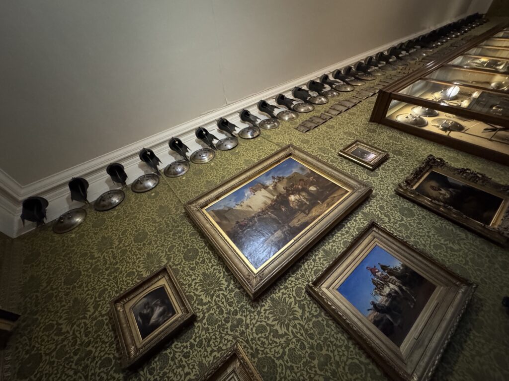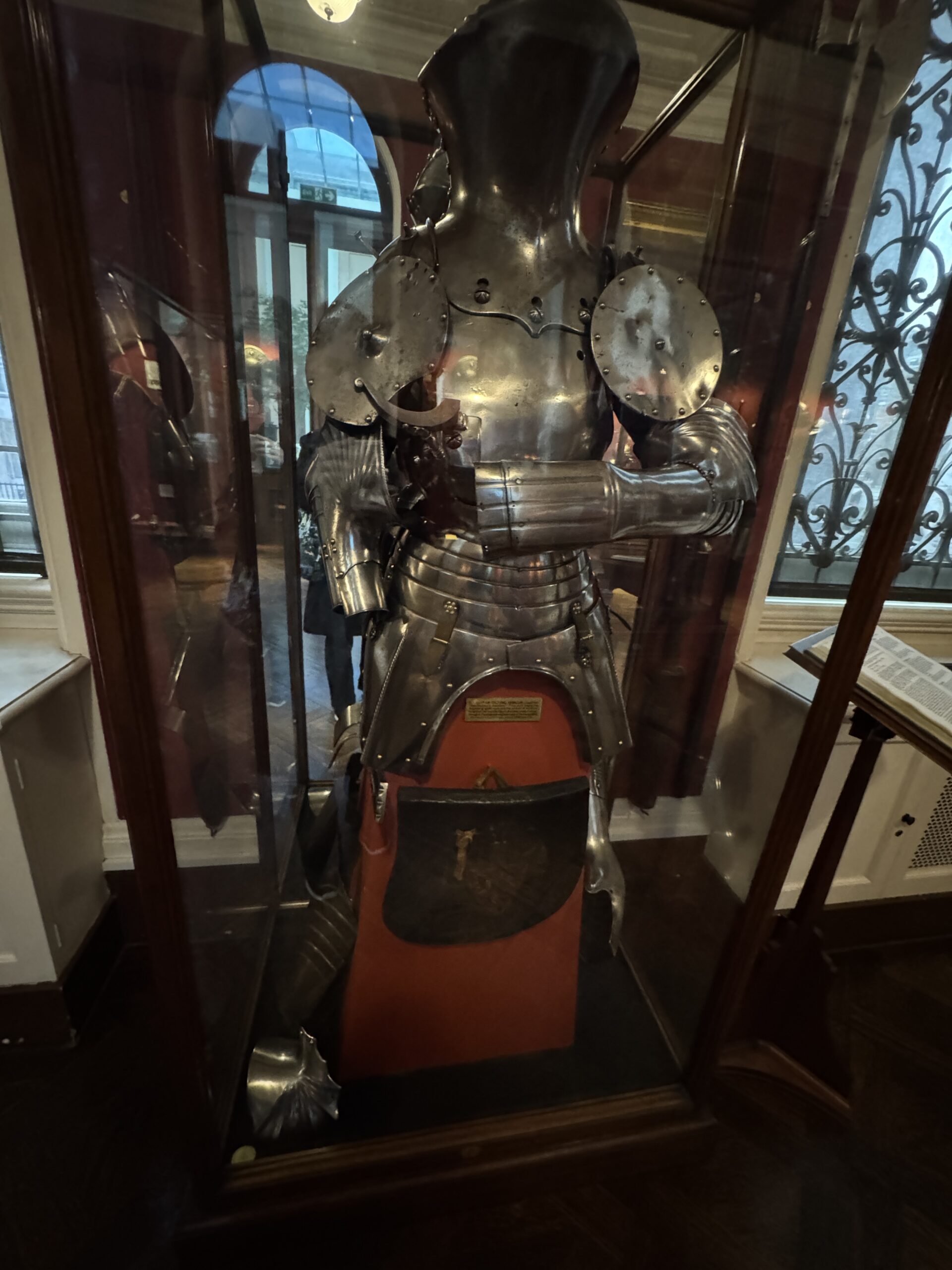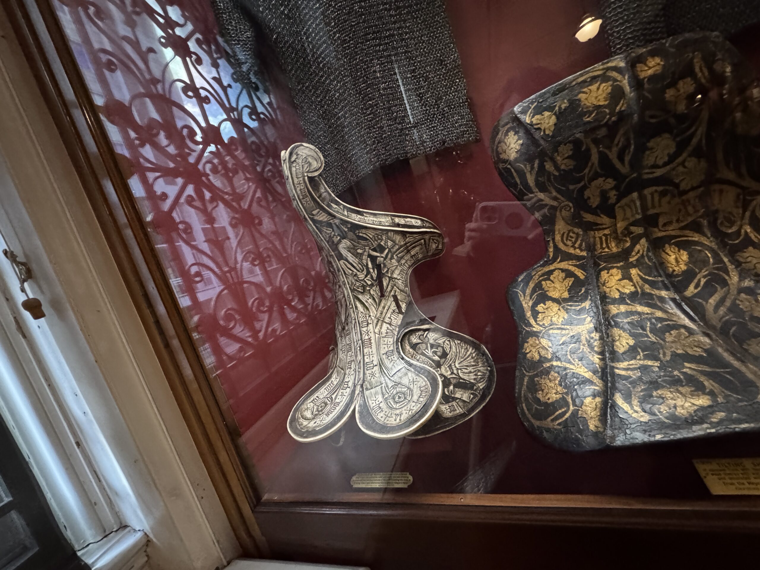 Политическое — это личное! Выставляя рыцарские доспехи, незаконнорожденный Уоллес визуально легитимизировал статус потомка «железных» людей с рыцарскими добродетелями. Тут мимо нас пробегает дух нации и патриархальные идеалы. Оружие описывалось в каталогах как «The very harness of chivalry» (Сама суть рыцарства?). Вместо грязи и смерти посетителю показывали блестящую сталь как символ моральной чистоты и сословного превосходства: «Наше право править основано на древней воинской доблести».