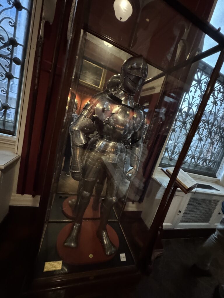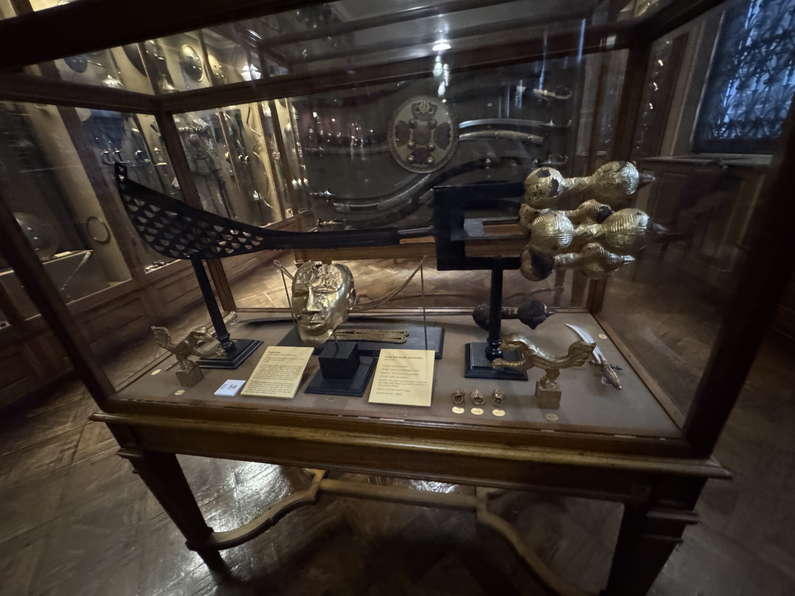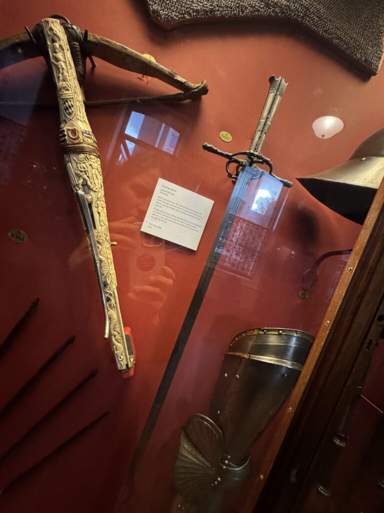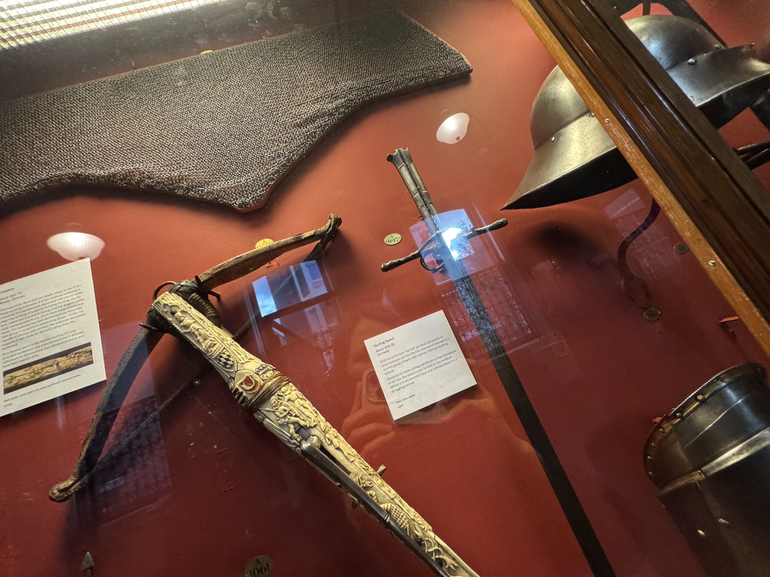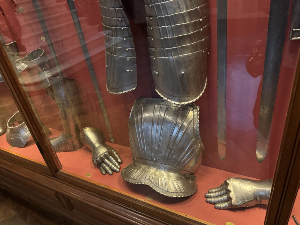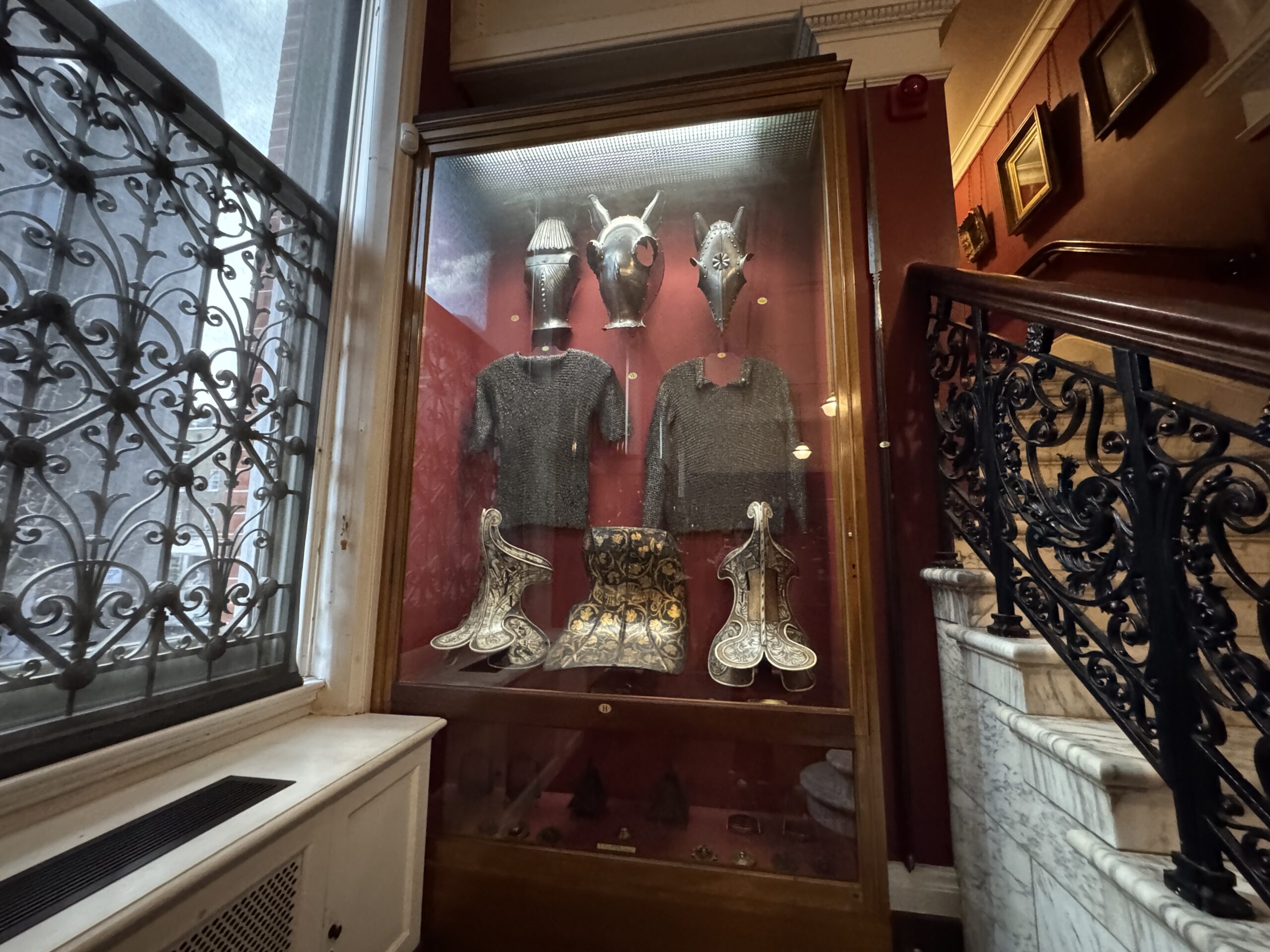 Политическое — это личное! Выставляя рыцарские доспехи, незаконнорожденный Уоллес визуально легитимизировал статус потомка «железных» людей с рыцарскими добродетелями. Тут мимо нас пробегает дух нации и патриархальные идеалы. Оружие описывалось в каталогах как «The very harness of chivalry» (Сама суть рыцарства?). Вместо грязи и смерти посетителю показывали блестящую сталь как символ моральной чистоты и сословного превосходства: «Наше право править основано на древней воинской доблести».