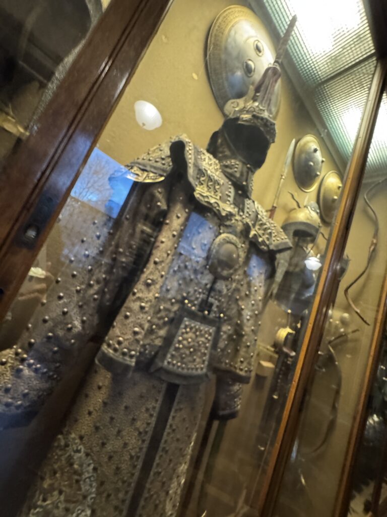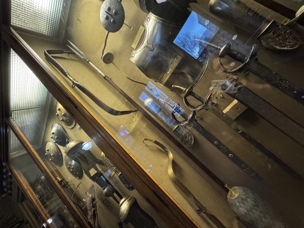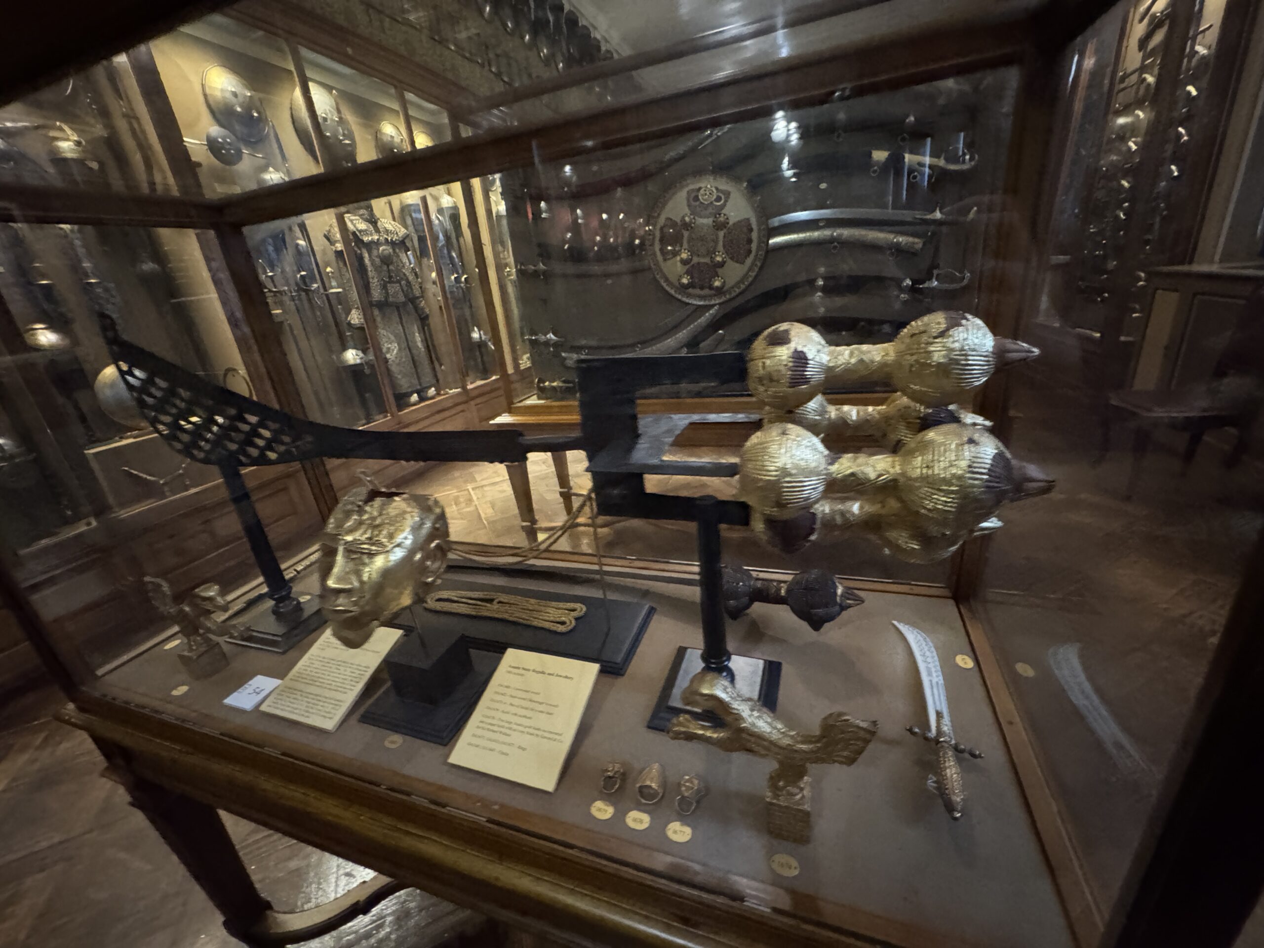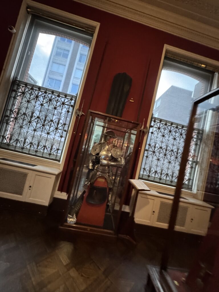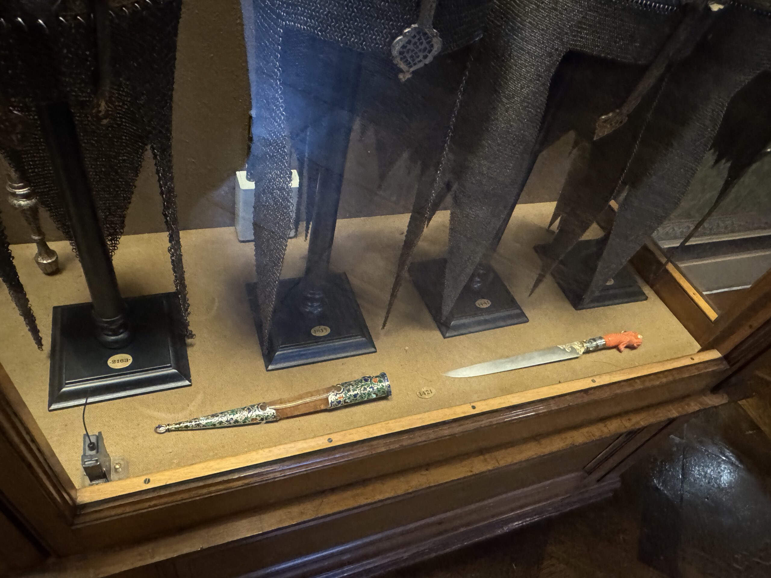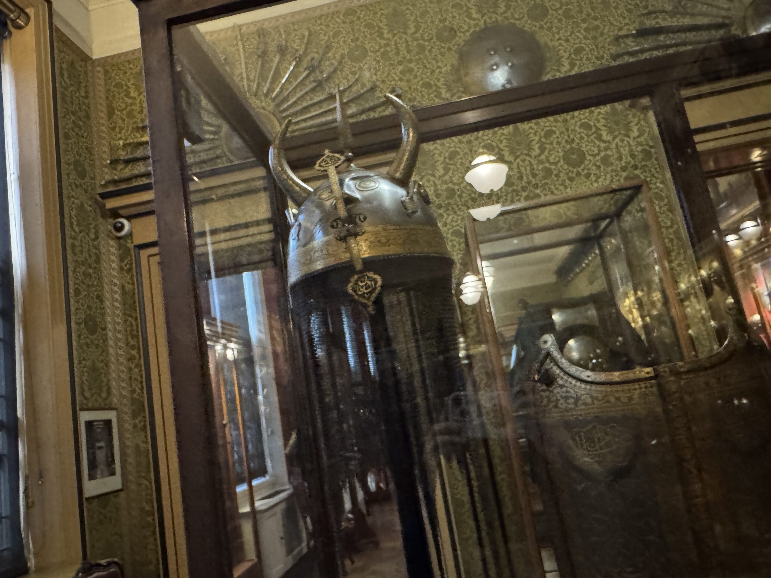 Политическое — это личное! Выставляя рыцарские доспехи, незаконнорожденный Уоллес визуально легитимизировал статус потомка «железных» людей с рыцарскими добродетелями. Тут мимо нас пробегает дух нации и патриархальные идеалы. Оружие описывалось в каталогах как «The very harness of chivalry» (Сама суть рыцарства?). Вместо грязи и смерти посетителю показывали блестящую сталь как символ моральной чистоты и сословного превосходства: «Наше право править основано на древней воинской доблести».
