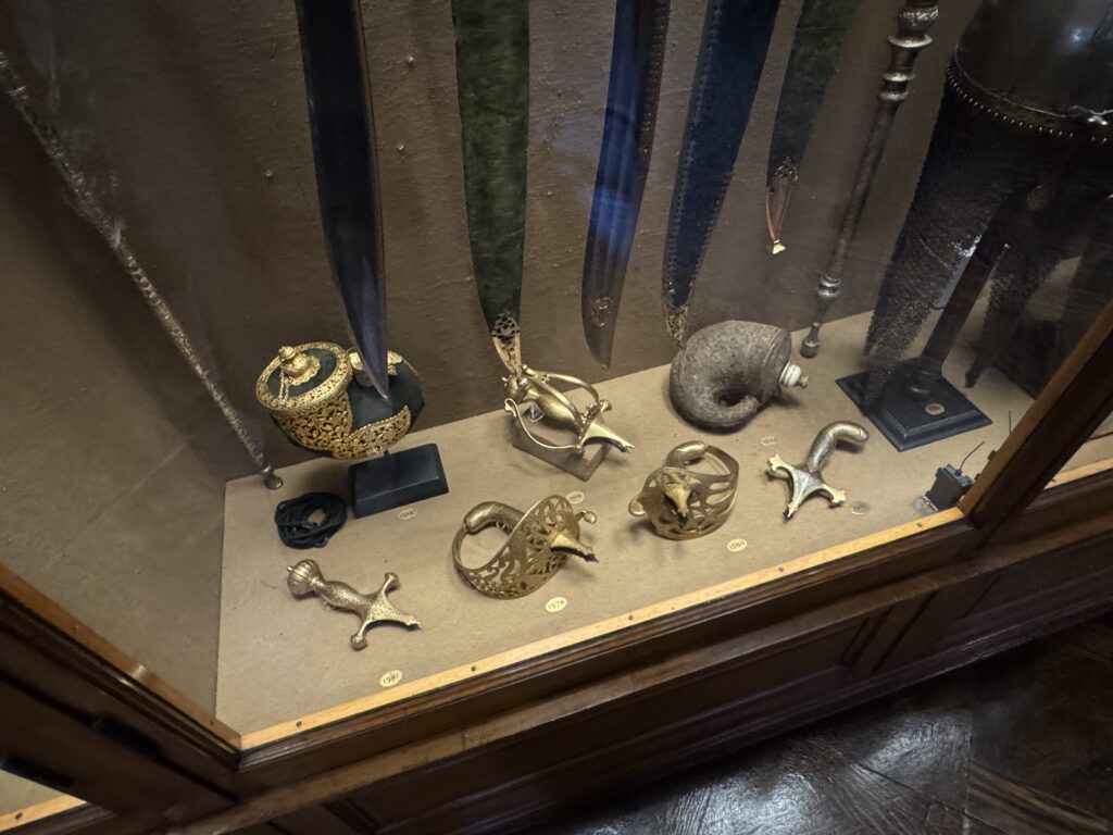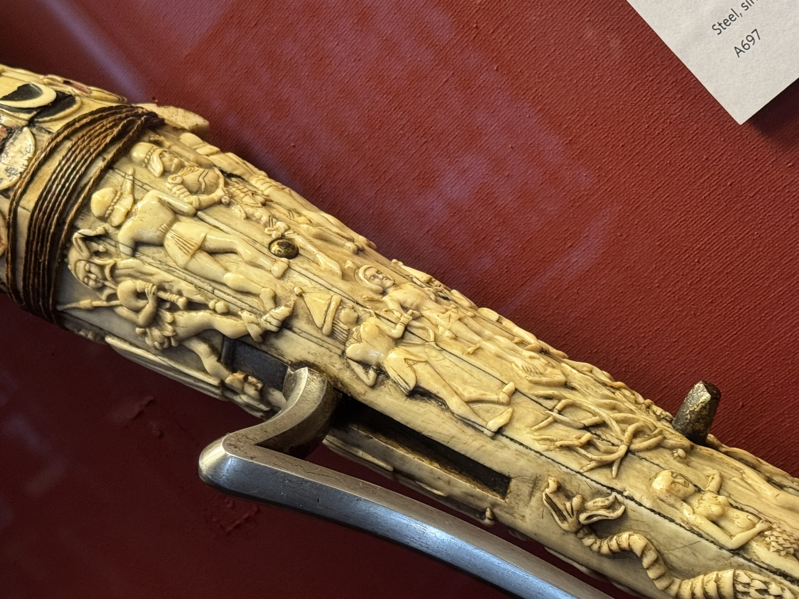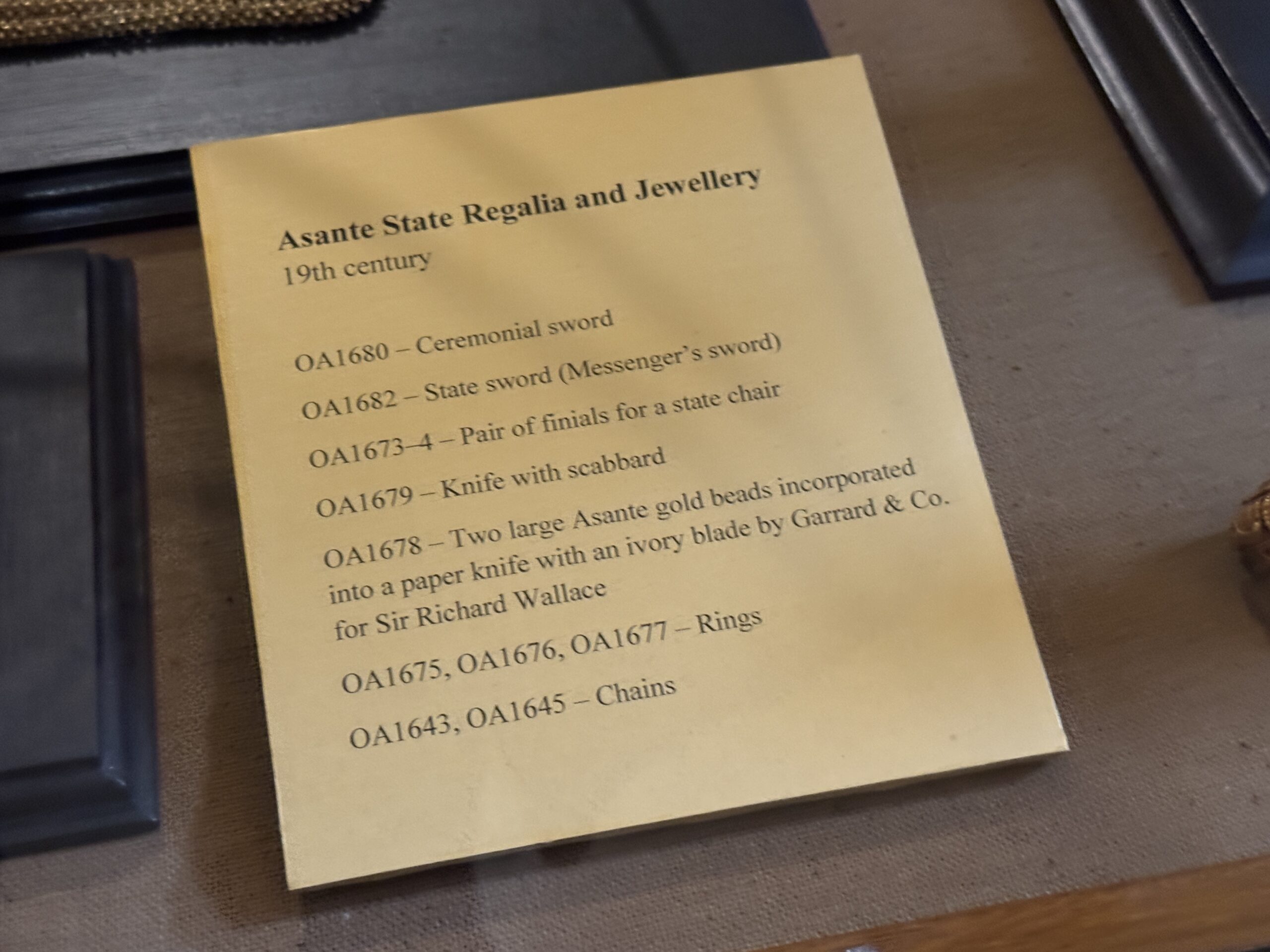 Султан Типу, «Тигр Майсура», был самым яростным противником британцев в Индии. Почитайте, как самоотверженно и изобретательно сражался за свободу своей земли тот человек. Расположение меча султана в зале — это визуальный рассказ о победе Британии над сильным врагом. Для посетителя XIX века это был не просто «красивый нож», а символ того, что Индия теперь принадлежит короне. Равно как выставляя золото побежденного африканского короля Ашанти в Лондоне, Уоллес транслировал мощь империи, способной забрать самое ценное у другого монарха в качестве наказания или трофея.
