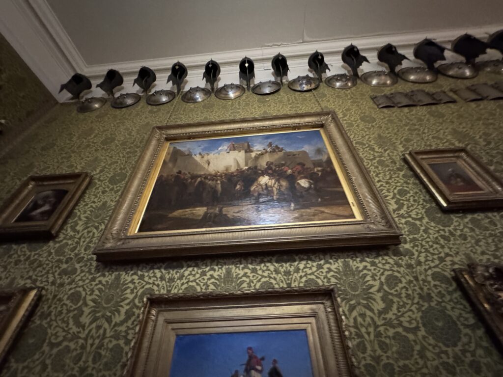 Ричард Уоллес, человек эксцентричный, собирал оружие как предметы чистого искусства. Изучал смертоносные объекты не как эволюционист — как поэт. В доспехах подчёркивалась не эффективность в защите жизни владельца, а скульптурность. То же самое касалось оружия нападения. Коллекционер намеренно отказался от строгой хронологии. И располагал военные экспонаты как ювелирные изделия, ориентируясь лишь на своё художественное чутьё. Делал паноплии, декоративные композиции из мечей, кинжалов, щитов, пистолетов. И в результате добился ошеломляющего эффекта. Паноплии не были чем-то новым или оригинальным — трофейные горы триумфа известны во многих культурах с древности.