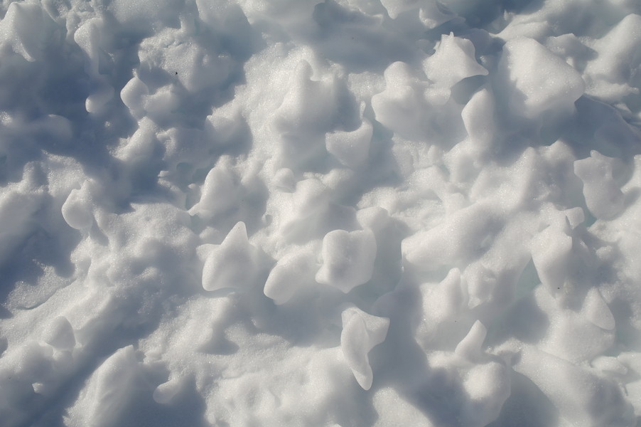 Снег под солнцем тает. Хоть его и рыхлят особые машины, все равно он превращается в куски льда.