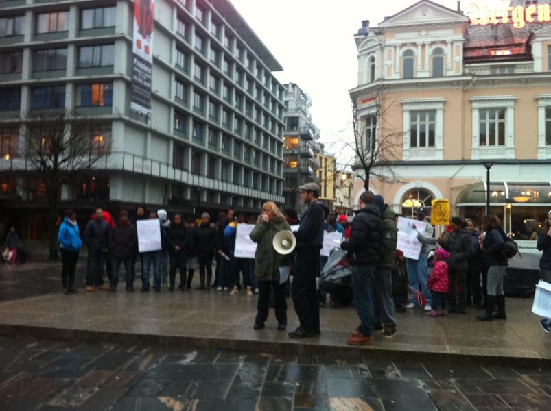 10 марта 2012 года в центре Бергена около Голубого камня по инициативе сообщества Papirløses Rettigheter проходила акция в защиту прав беженцев. По подсчетам организаторов собралось 60 человек. Пришли дети, рожденные в Норвегии, но — по решению властей — подлежащие высылке на родину родителей. Люди требовали соблюдения прав человека в отношении ищущих убежища: