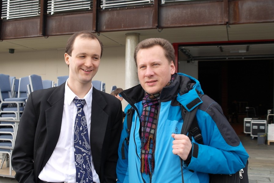 На фото ниже — слева направо — Егор и Михаил, Игорь и музыканты оркестра Александр (валторна), Дмитрий (труба). Дмитрий — приглашенный музыкант, постоянное его место работы — оркестр Оперного театра в Хельсинки.