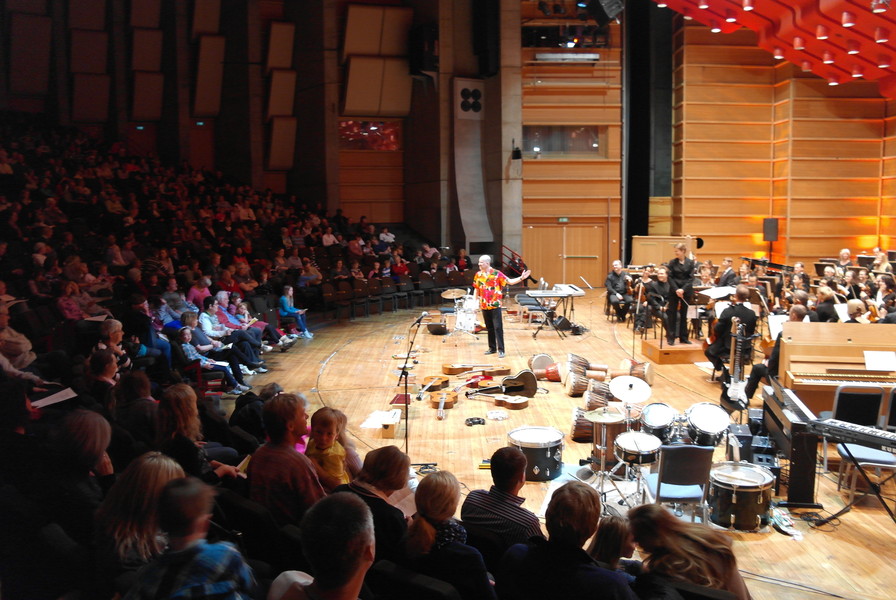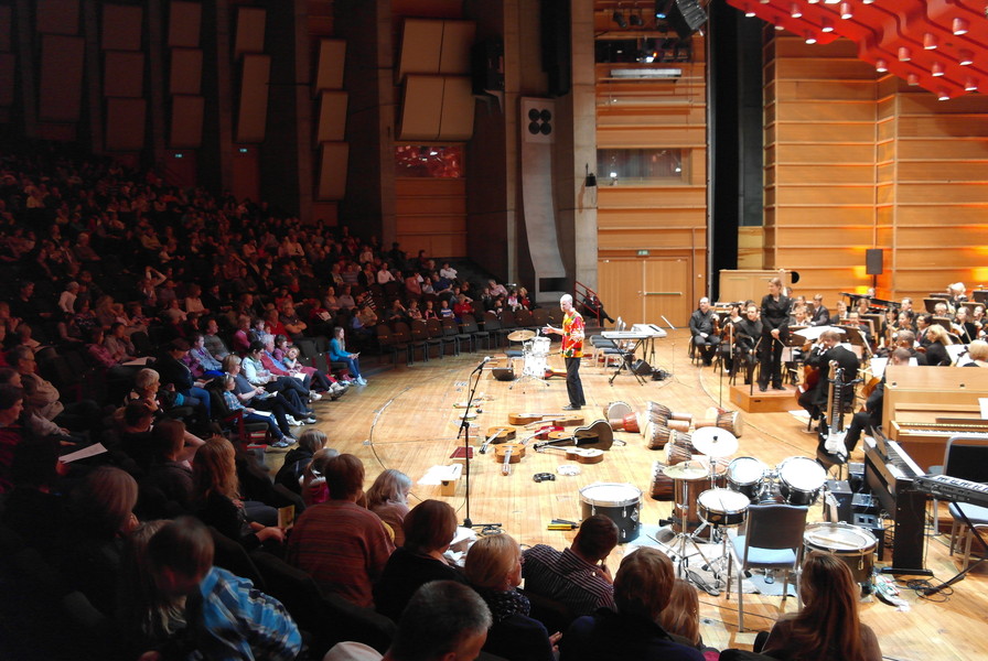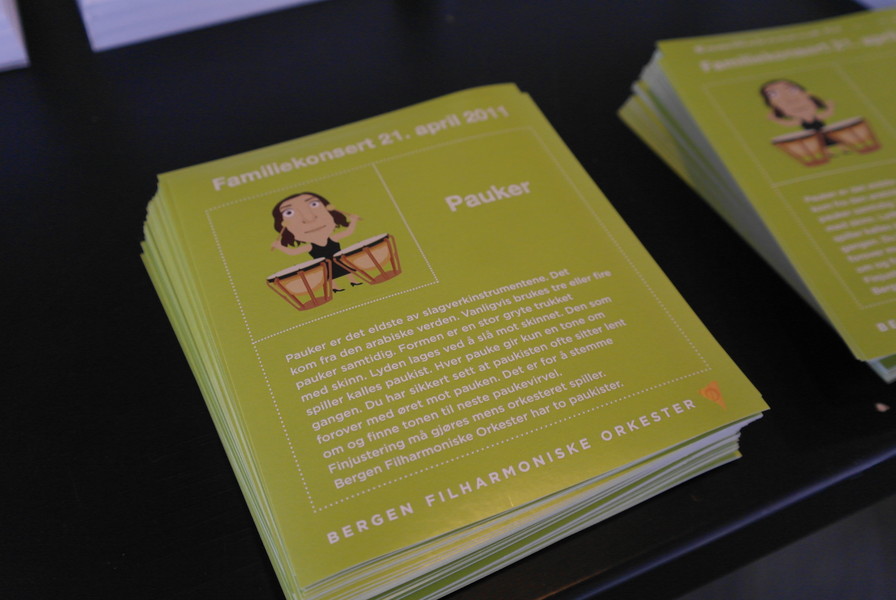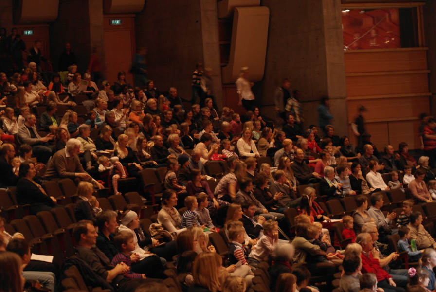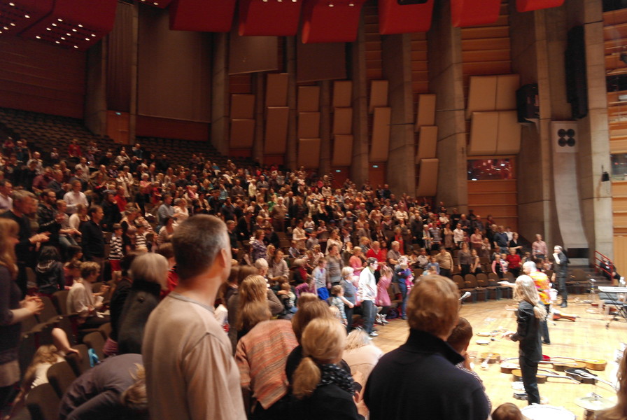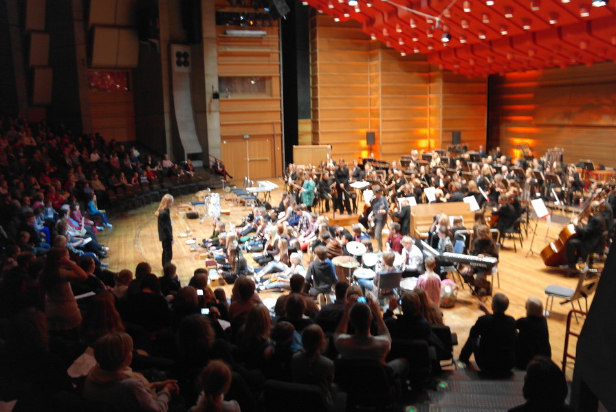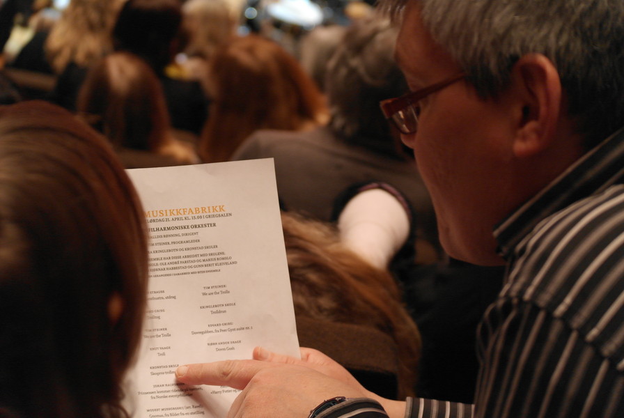 Выступавшие на сцене школьники были в повседневной одежде. От этого они меньше волновались и меньше волновали детишек в зале. Что тоже — вместе с яркой рубашкой  и шутками ведущего — создавало буфер, повышало уровень доверия к музыке, уравновешивало «взрослый» филармонический оркестр со сверкающими трубами, агрессивными скрипками, литаврами, экспрессивным дирижером. Некоторые прозвучавшие темы были просто жуткими. Единственное объяснение тому, что так мало детей заплакало и было унесено, я вижу в том, что норвежские дети с самого детства слышат эти мелодии.