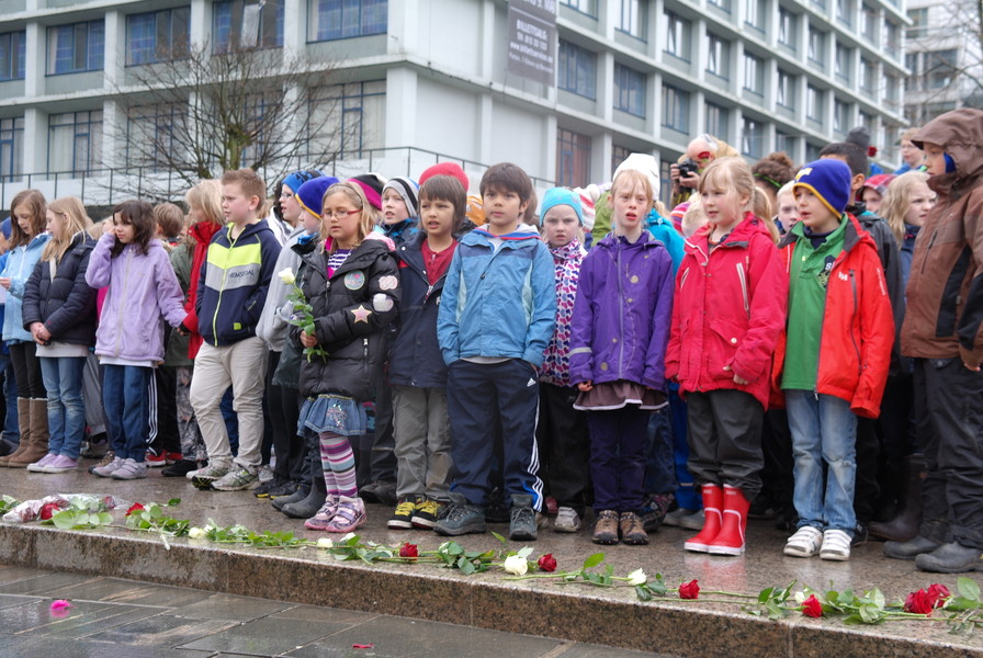Общенорвежская антифашистская акция состоялась 26 апреля во многих городах Норвегии после того, как Брейвик сказал, что ненавидит песню «Дети радуги». В Осло пело 40 000 человек. В Бергене собралось больше тысячи человек — статистика vg.